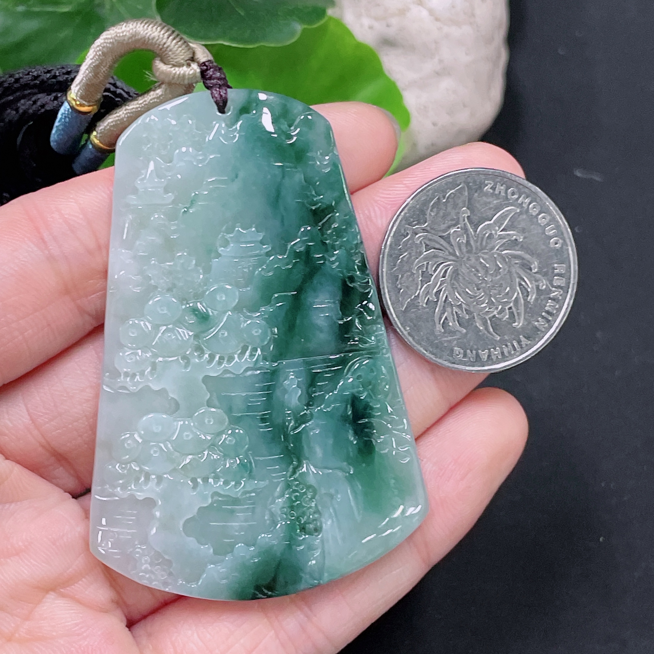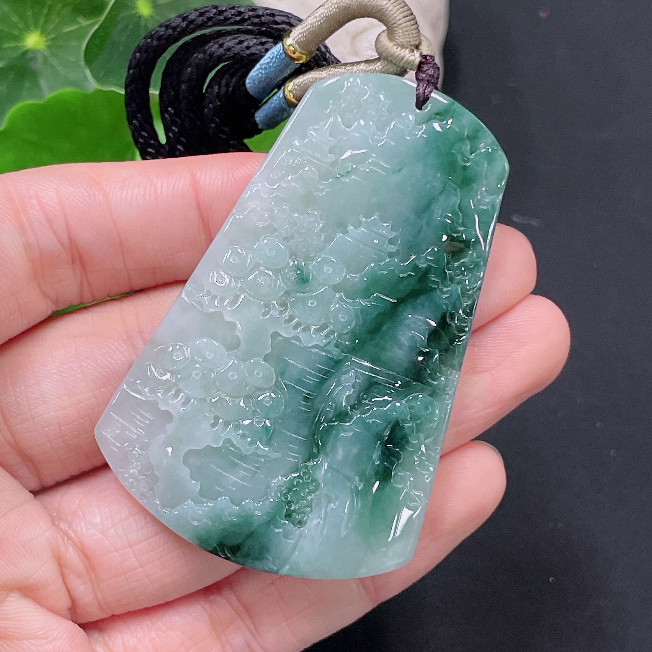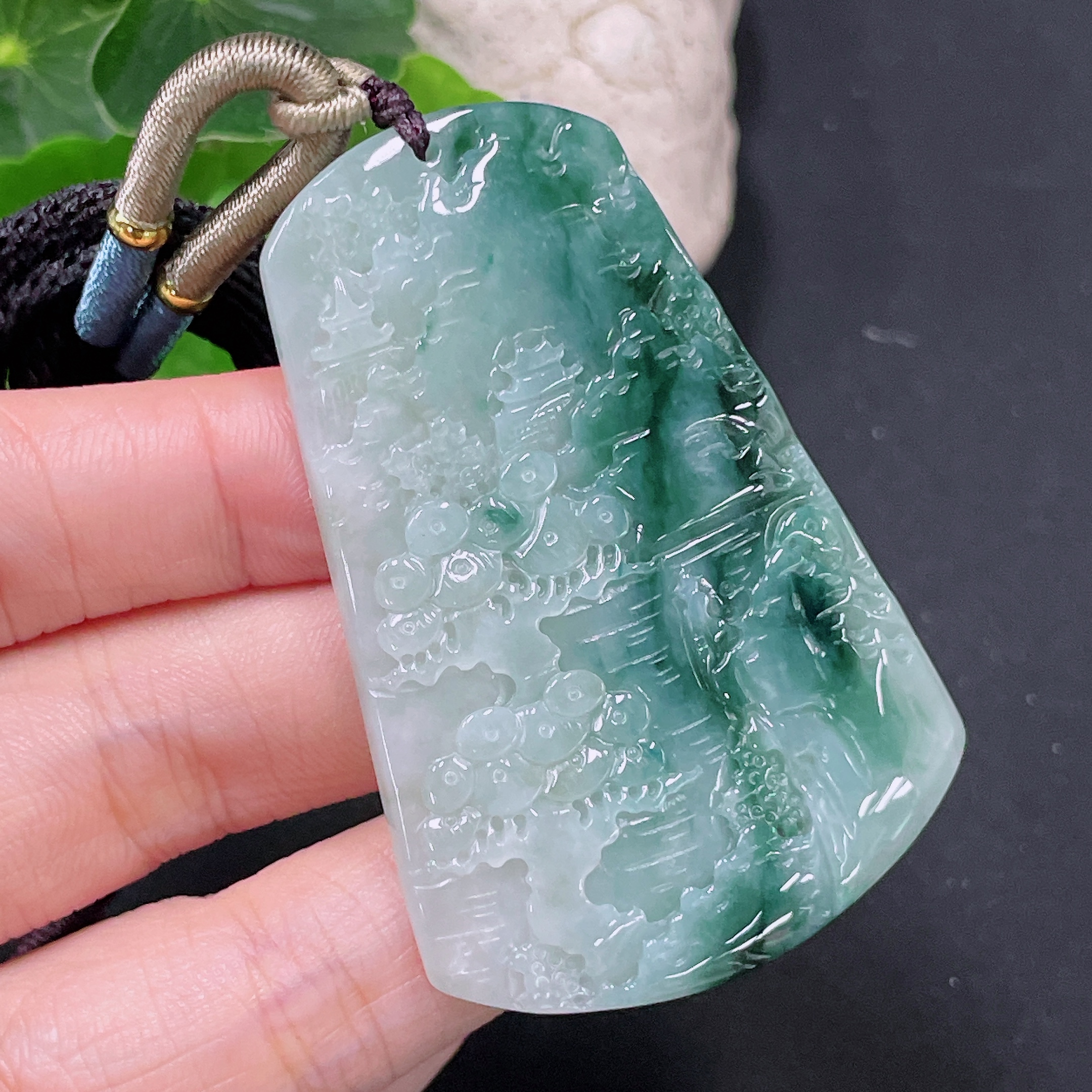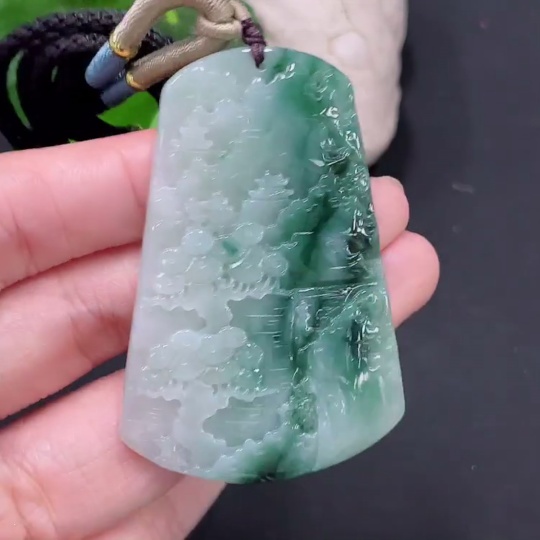 Jadeite Pendant Landscape Plaque Total Weight Including Rope 33.65g