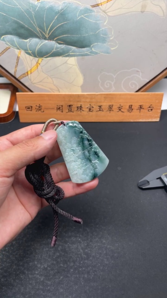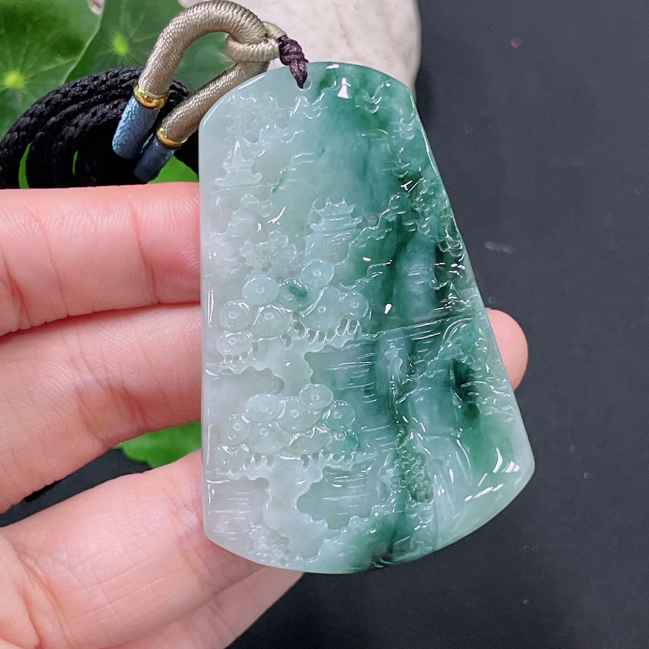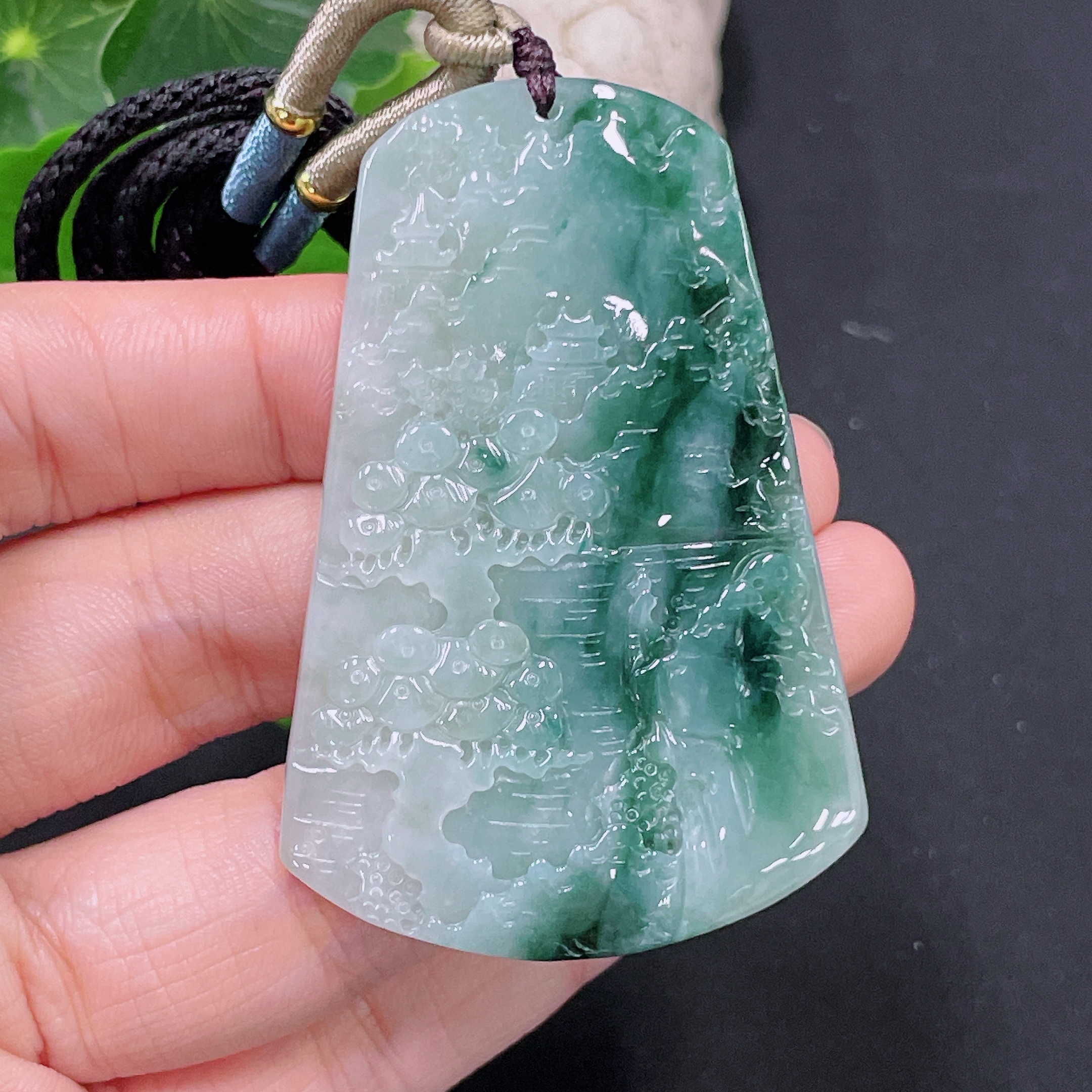 Jadeite Pendant Landscape Plaque Total Weight Including Rope 33.65g