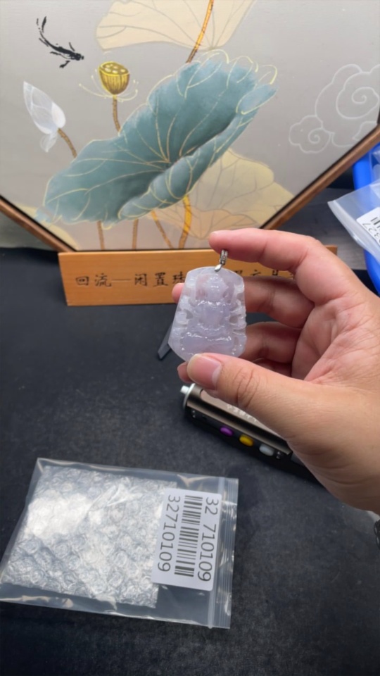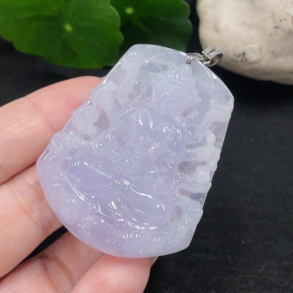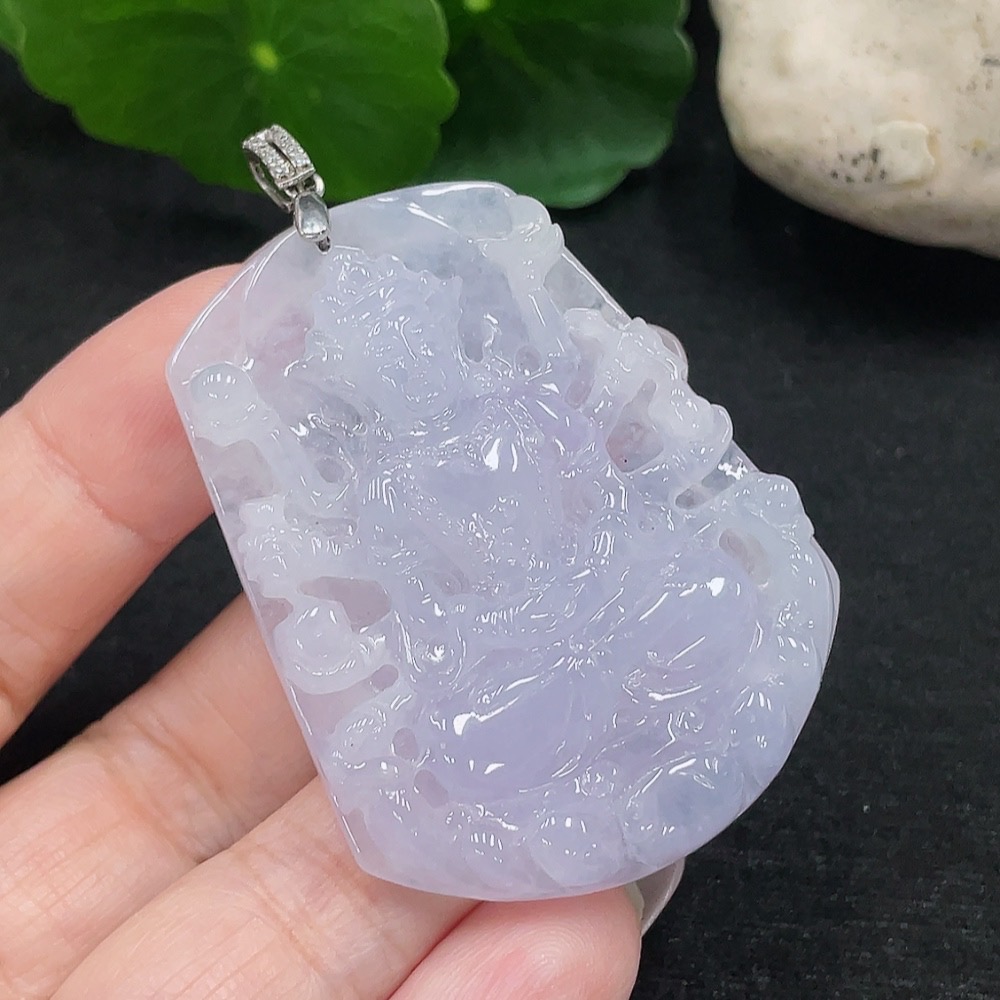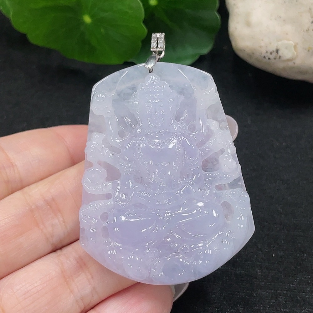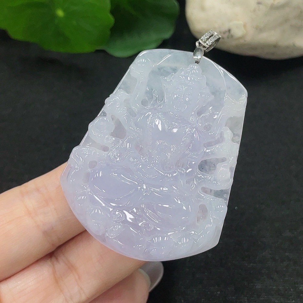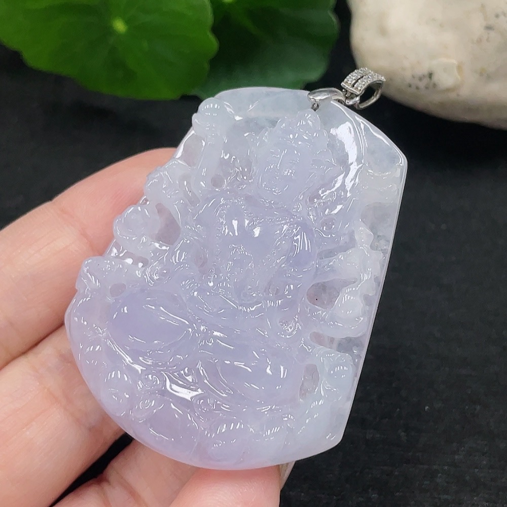 Jadeite Guanyin Pendant Total Weight Approx. 28g (Non-Gold Inlaid)