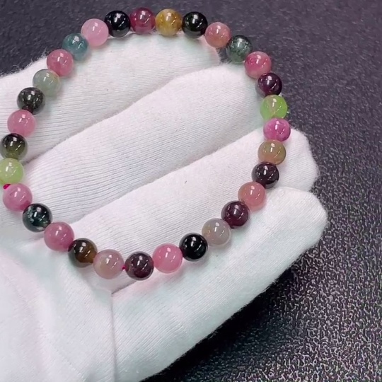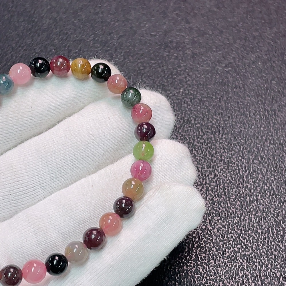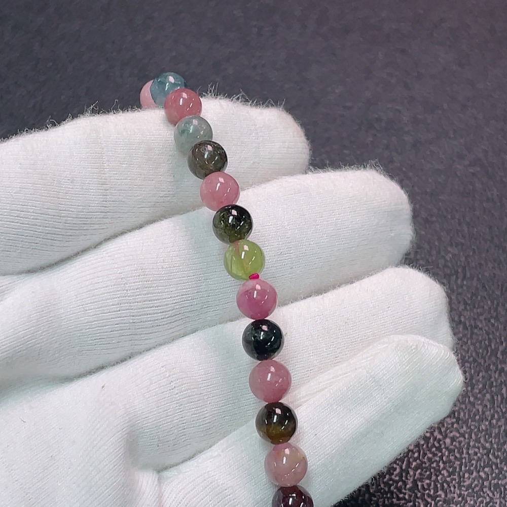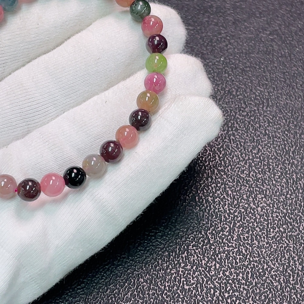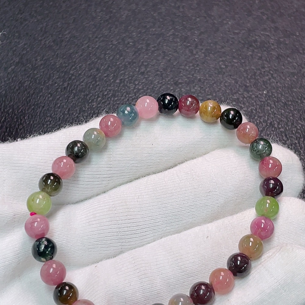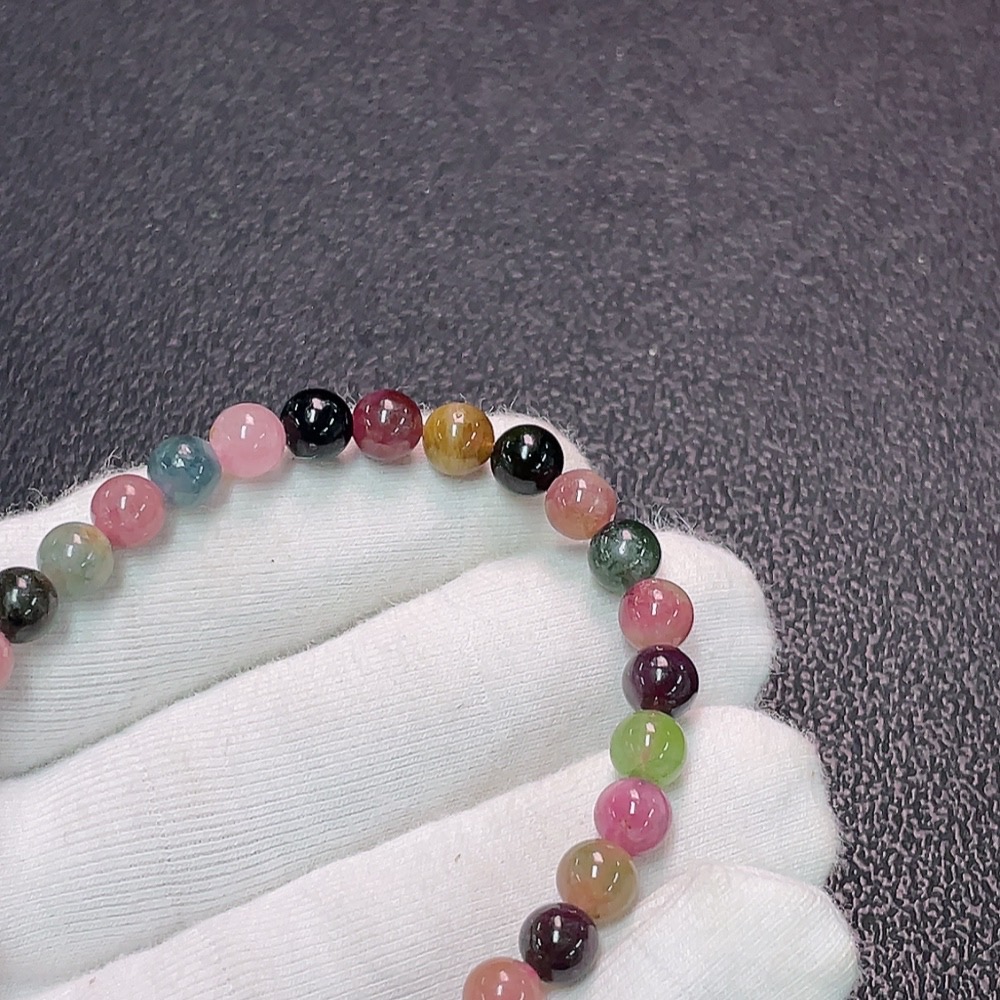 Tourmaline Bracelet with Visible Organic Matter and Other Mineral Components, Total Weight Approx. 10.71g, Bead Size ~5.9mm