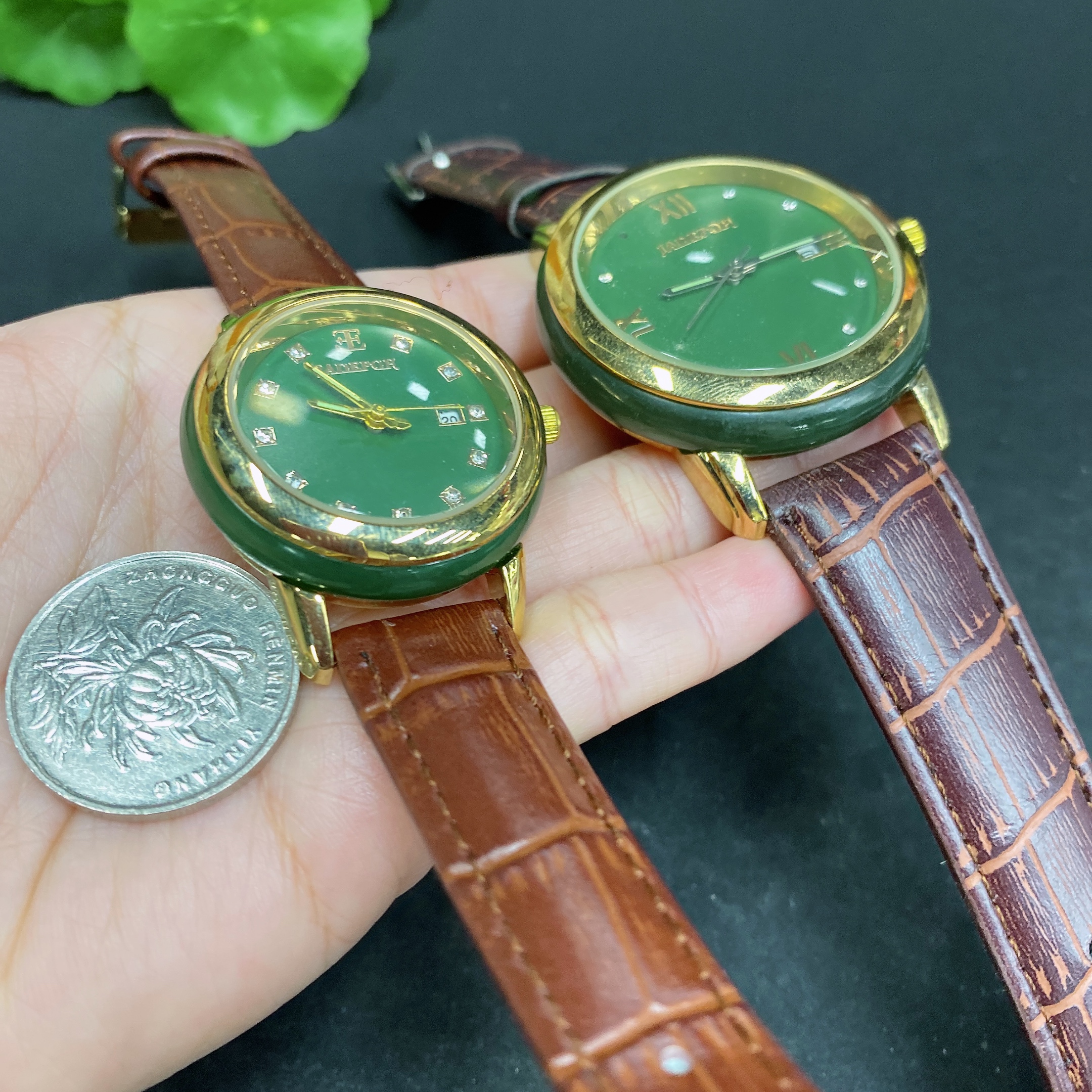 Hetian Jade Inlaid Watch Non-Gold Total Weight Approx. (Including Strap) 98.8g Dial
