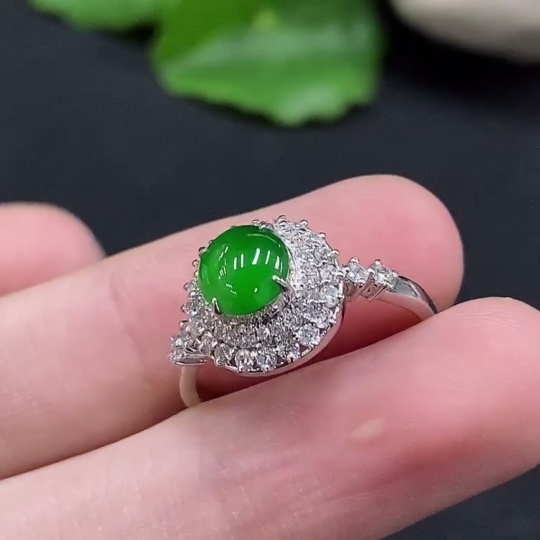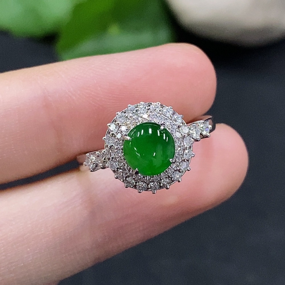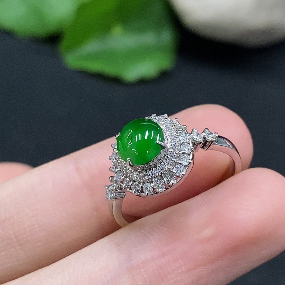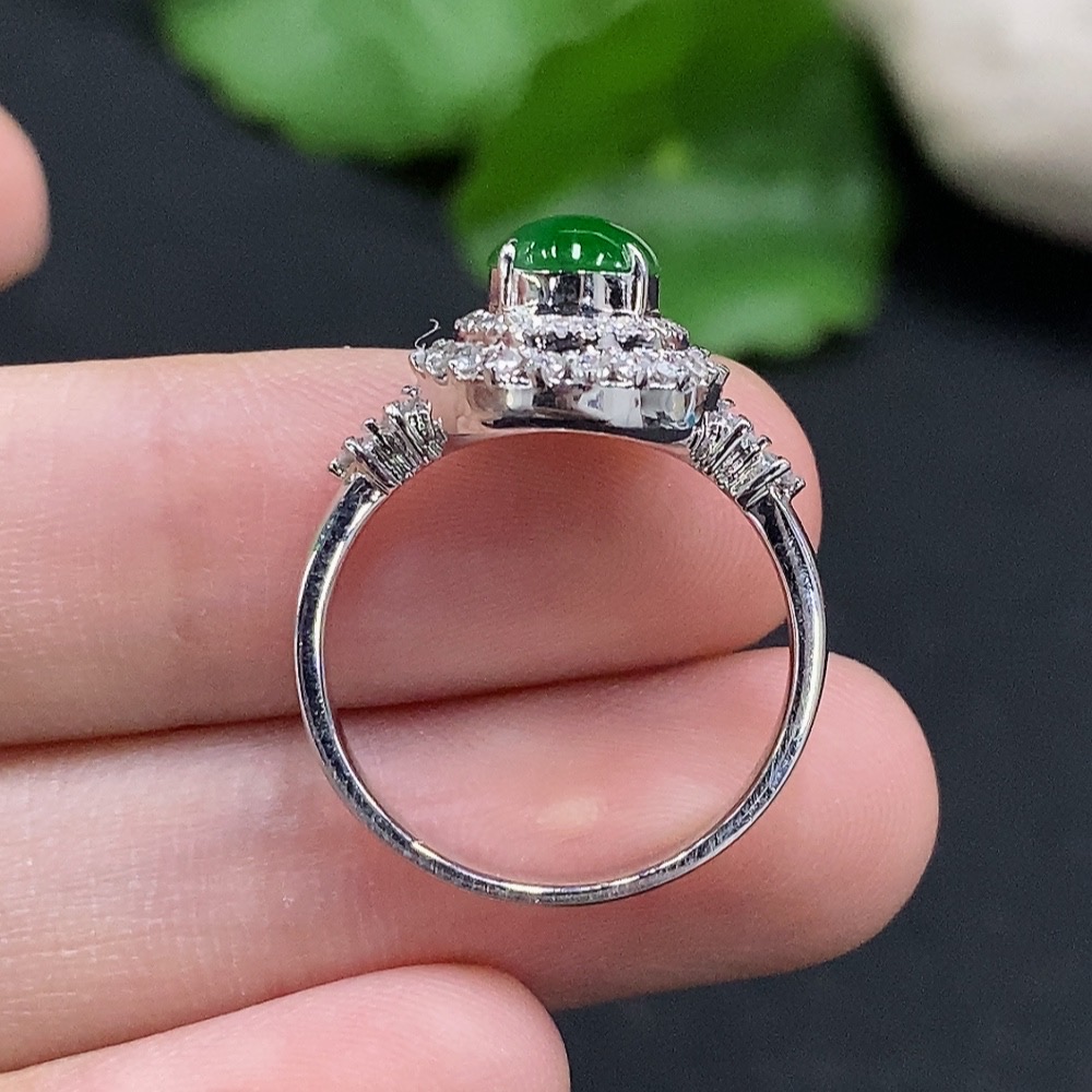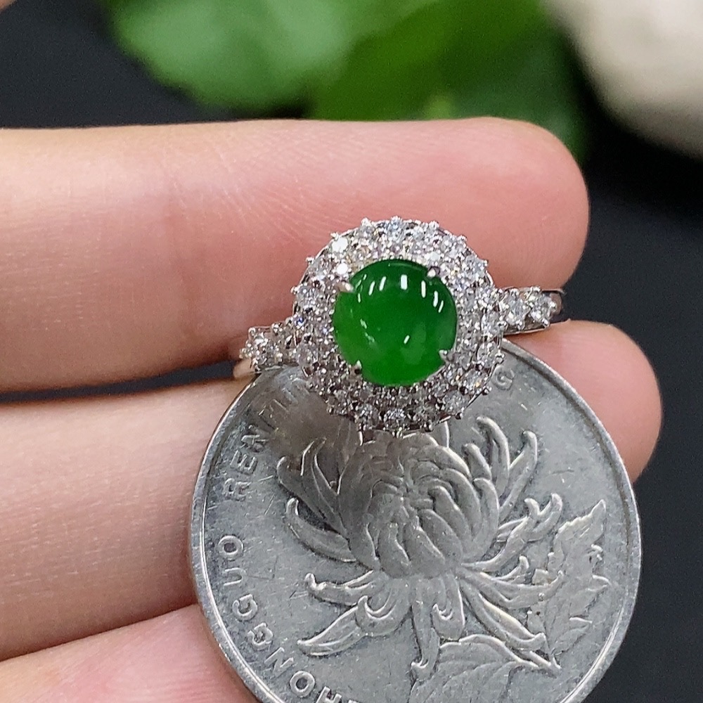 Jadeite Cabochon Ring with 18K Gold and Diamond Accents, Size 13, Total Weight Approx. 3.2g