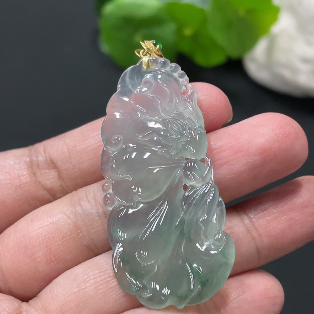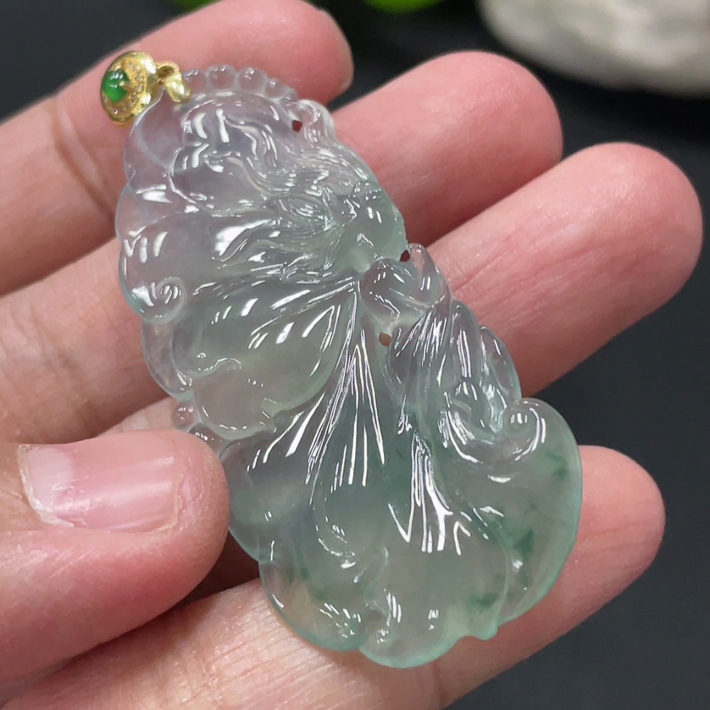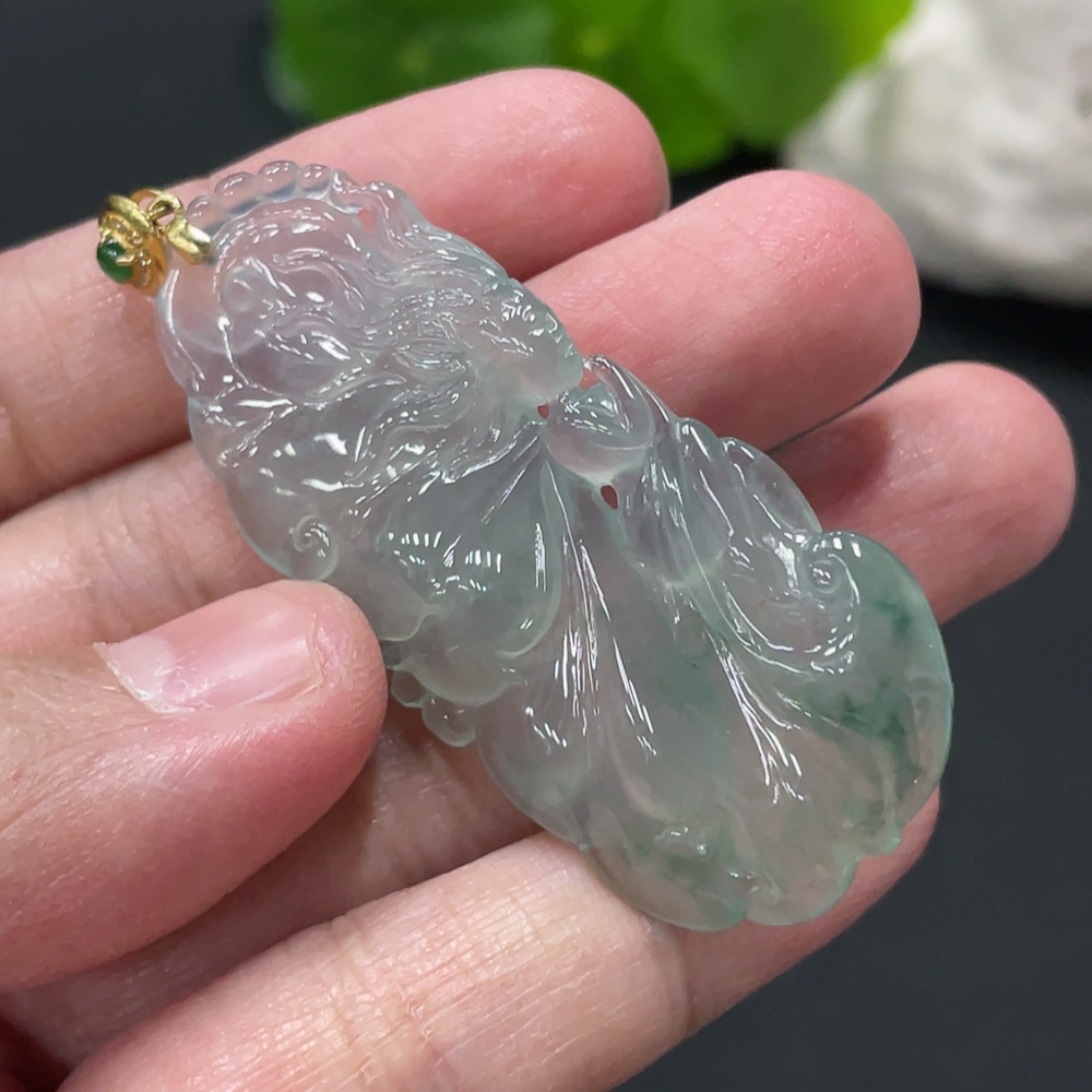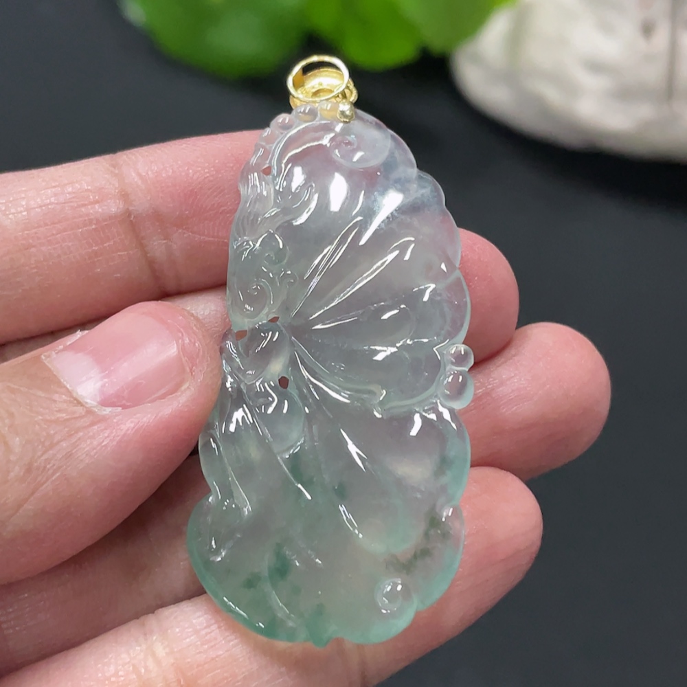 Jadeite Butterfly Fairy Pendant with 18K Gold Clasp, Total Weight Approx. 10.1g