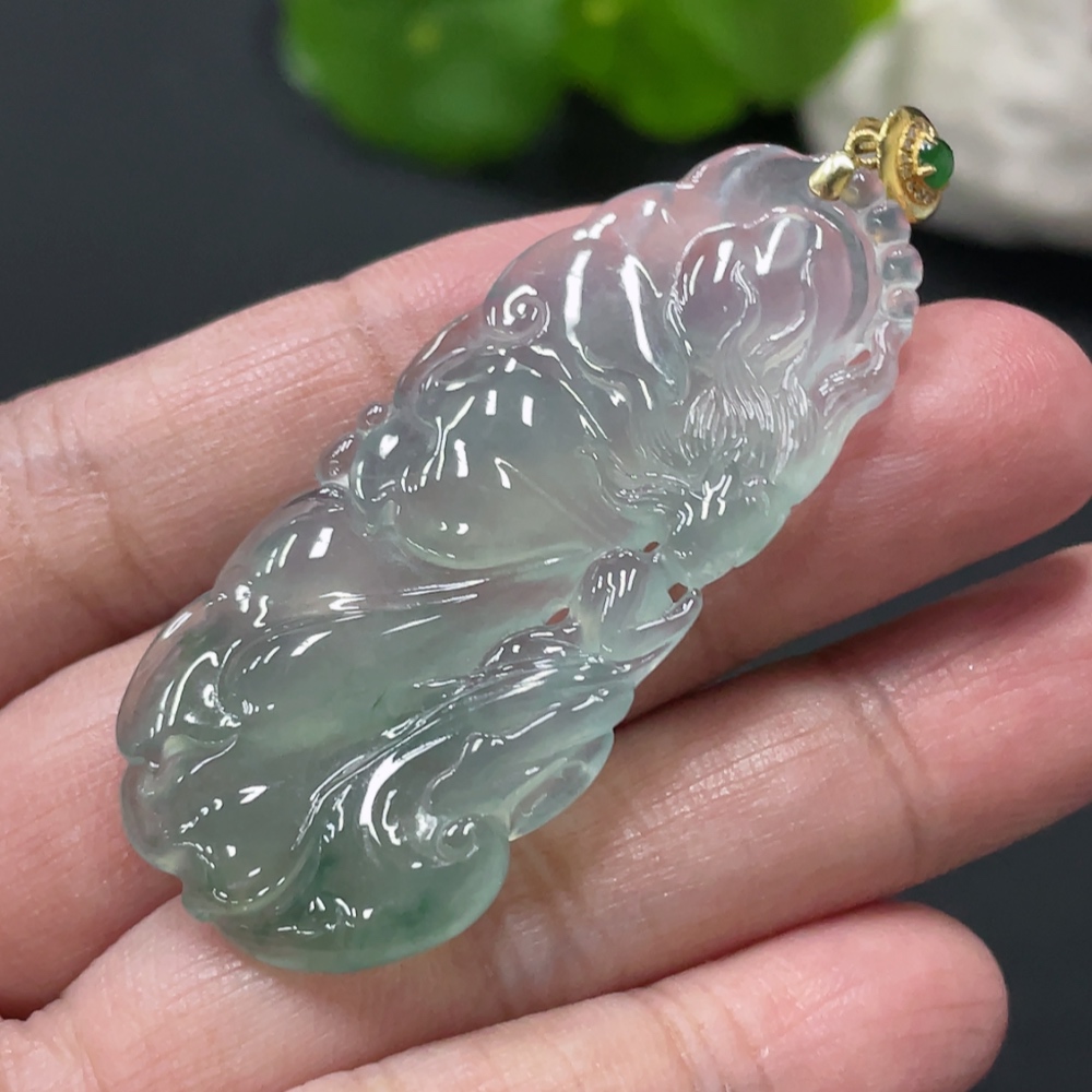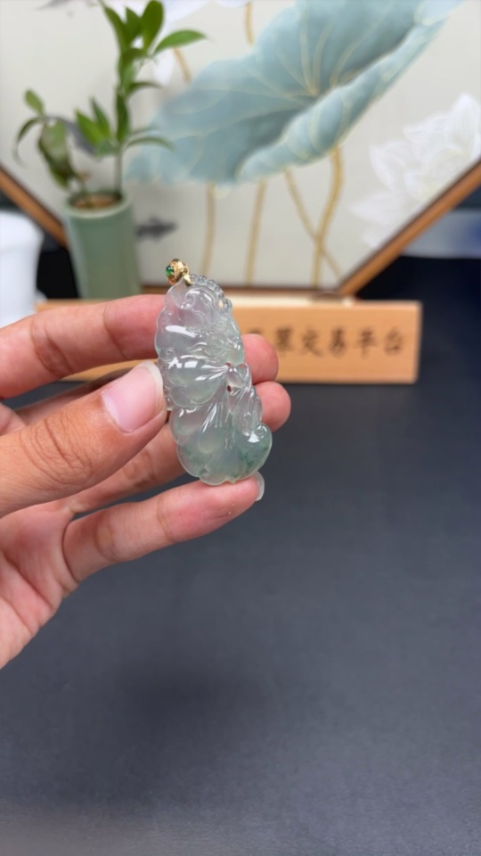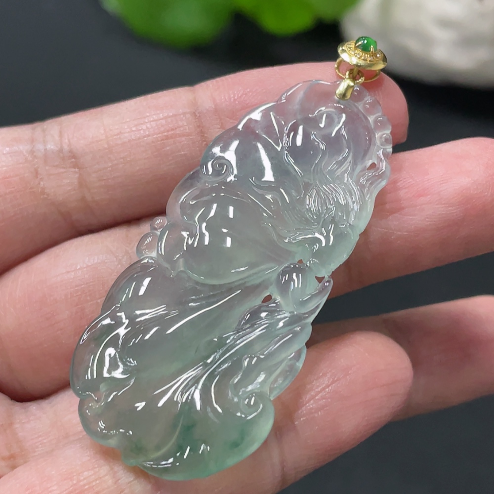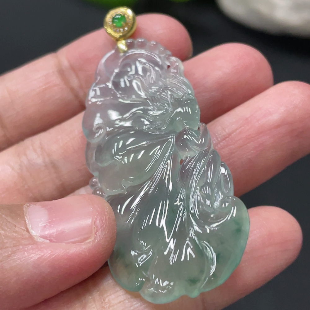 Jadeite Butterfly Fairy Pendant with 18K Gold Clasp, Total Weight Approx. 10.1g