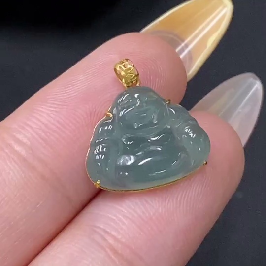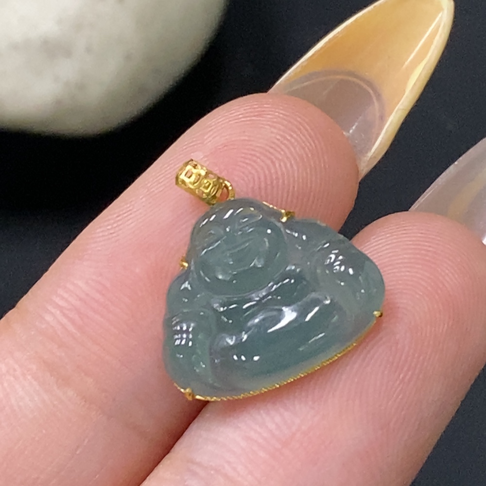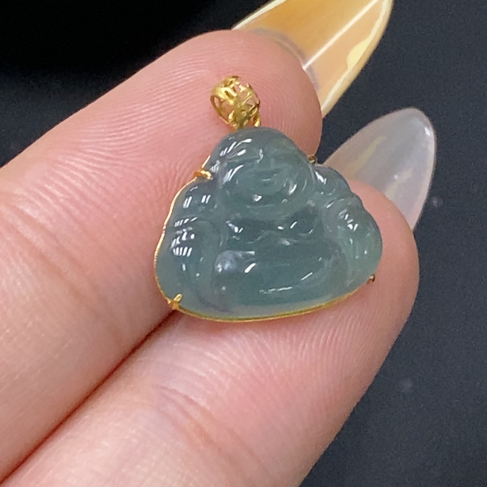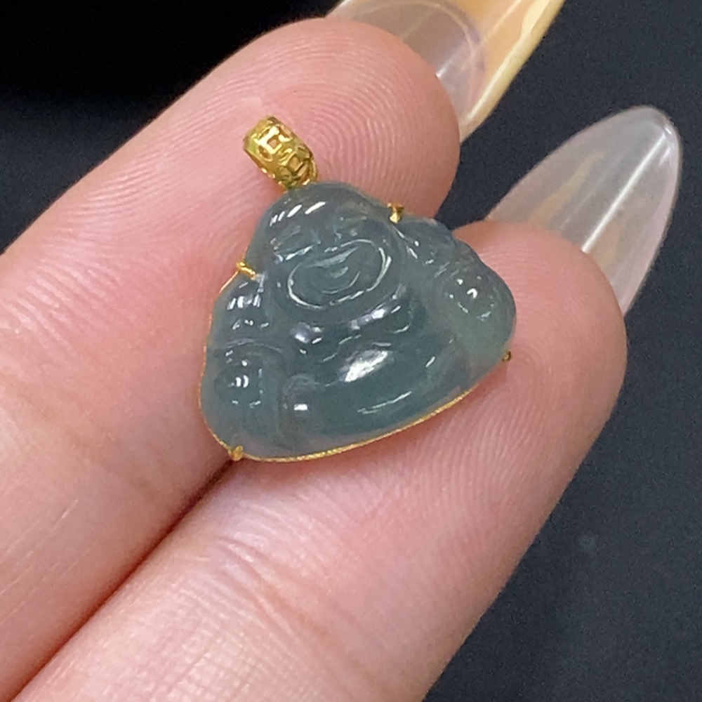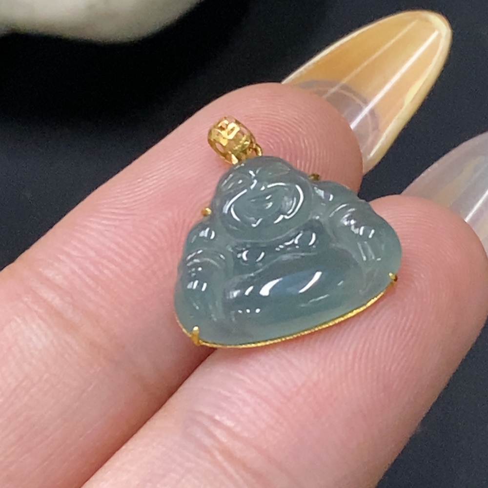 Jadeite Buddha Pendant with 18k Gold Setting, Total Weight Approx. 1g