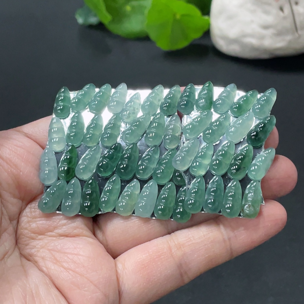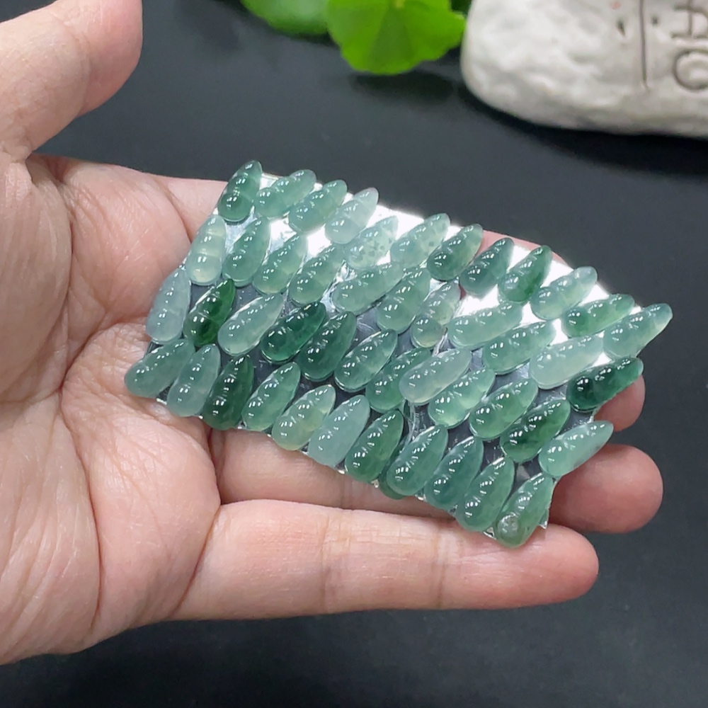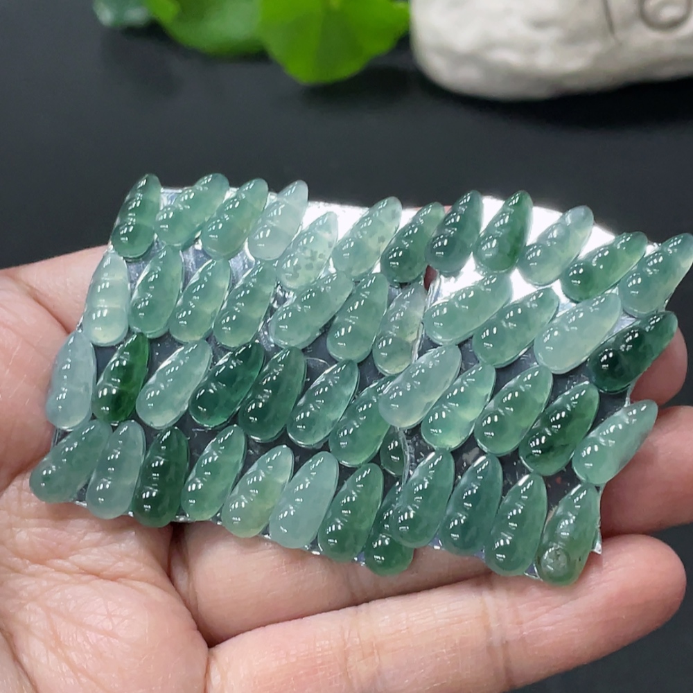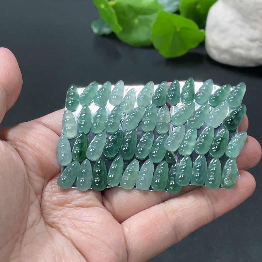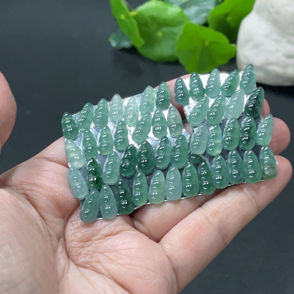 Jadeite Auspicious Bean Inlaid Pieces Sell as a Lot Total Weight Approx.10g