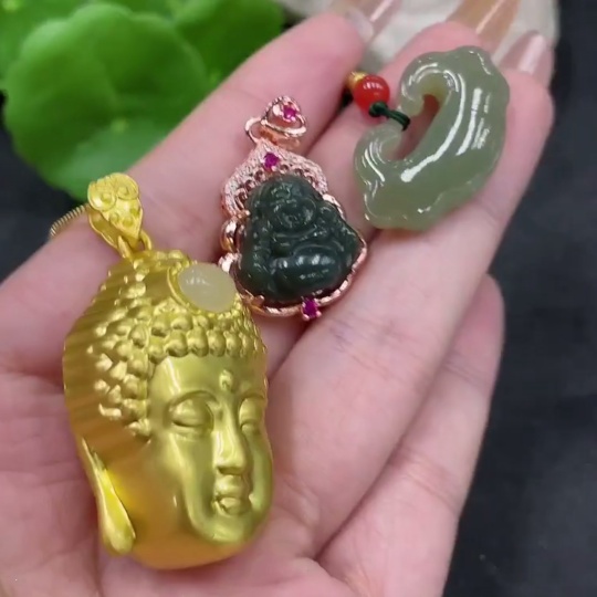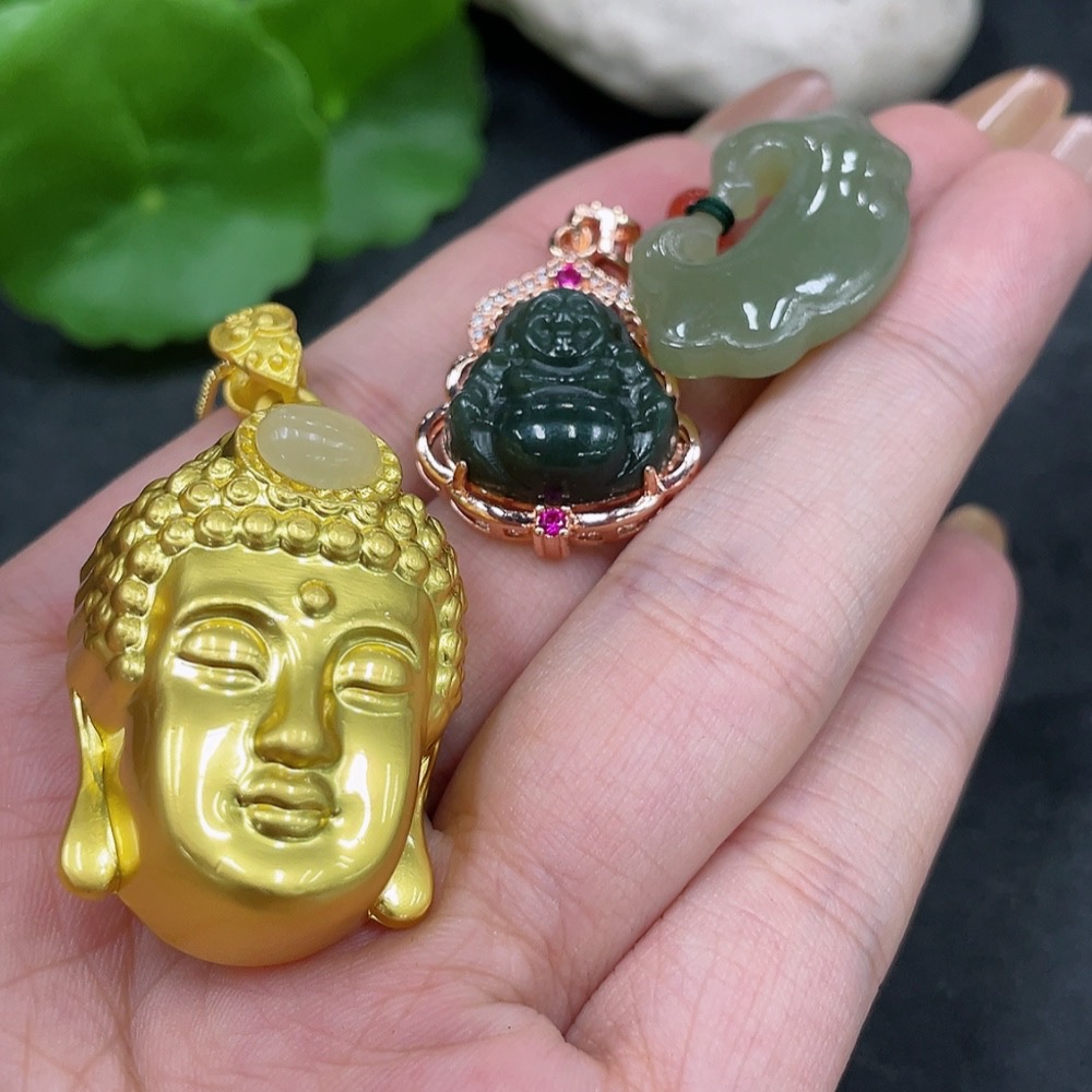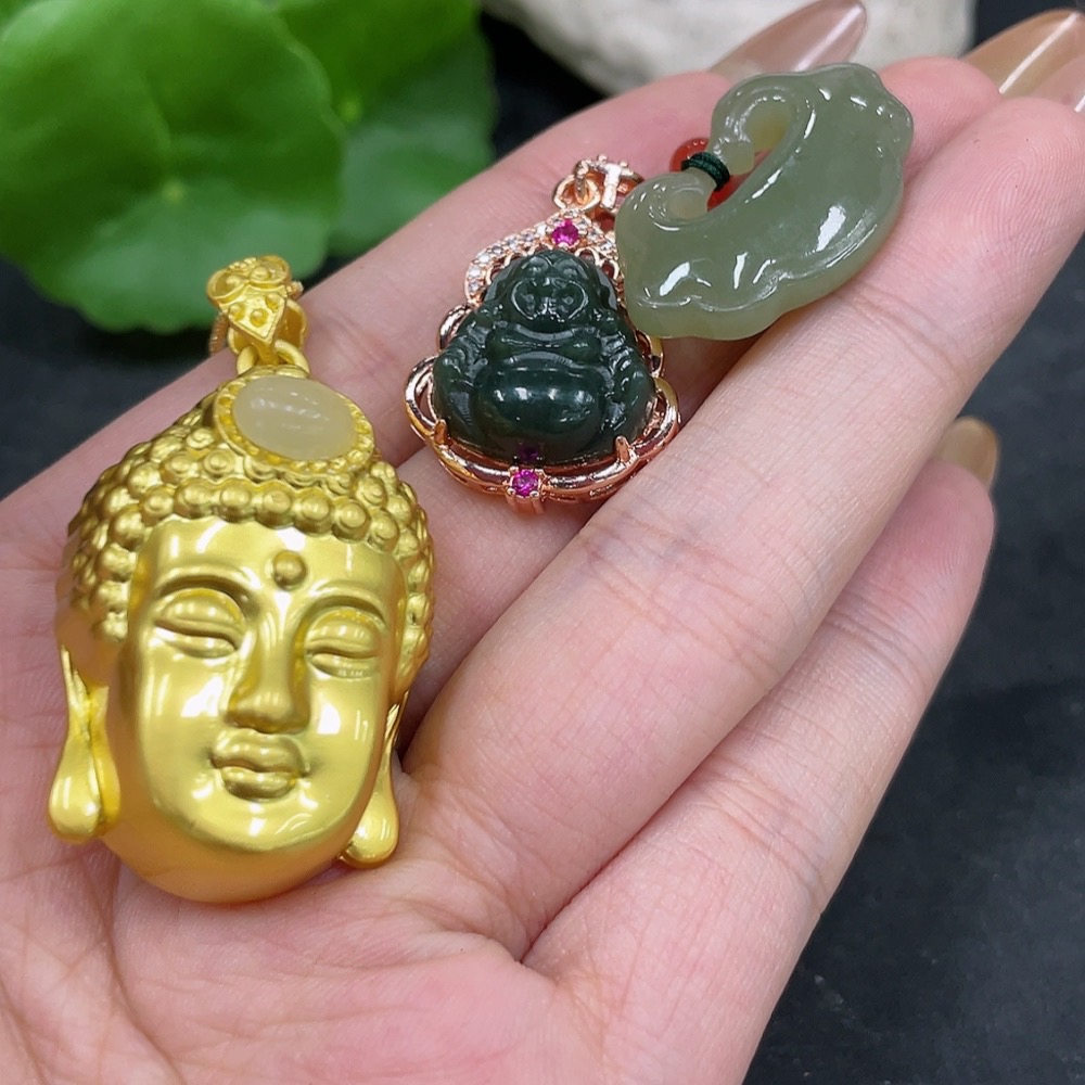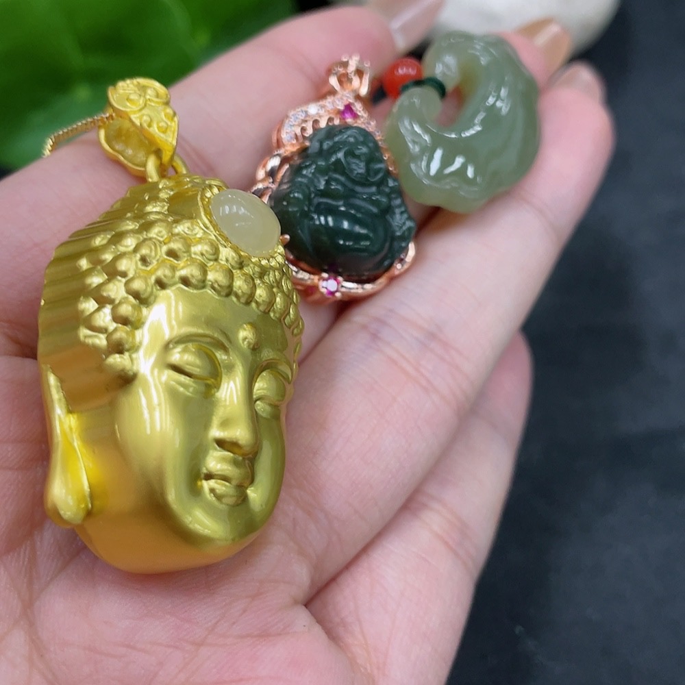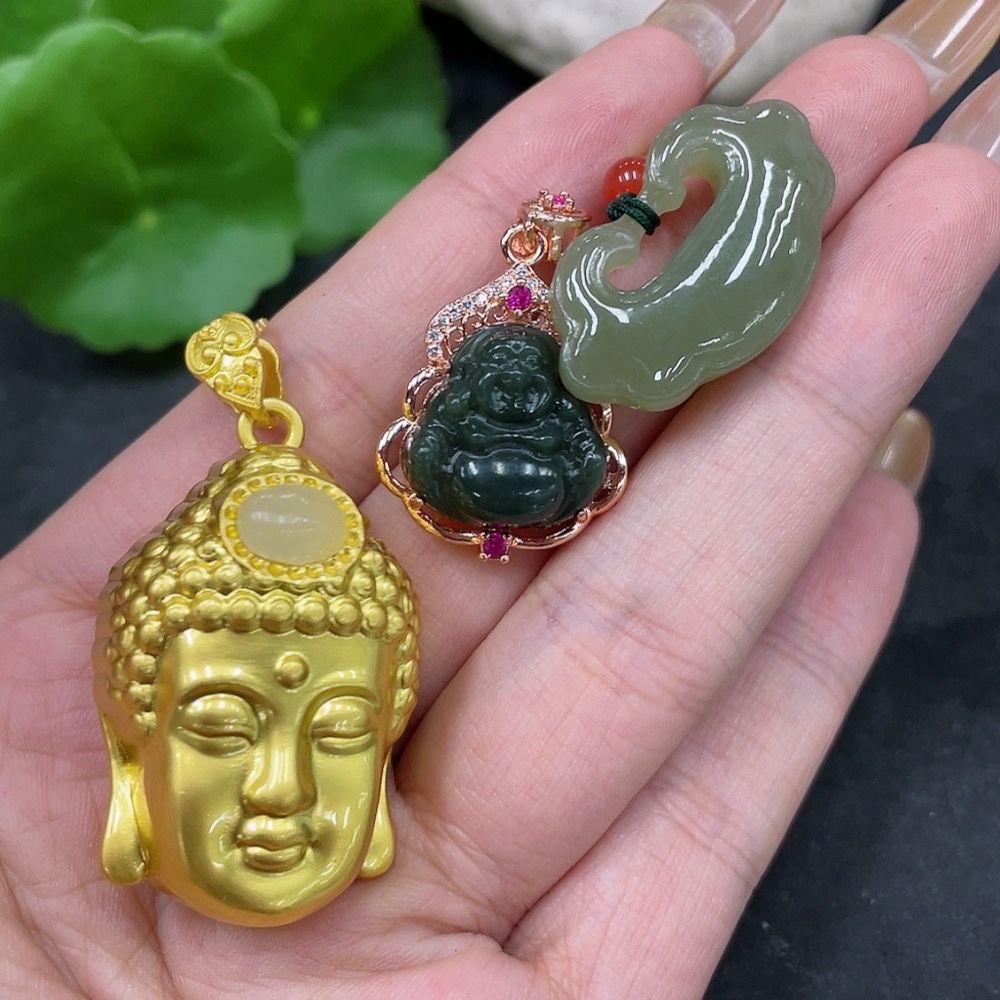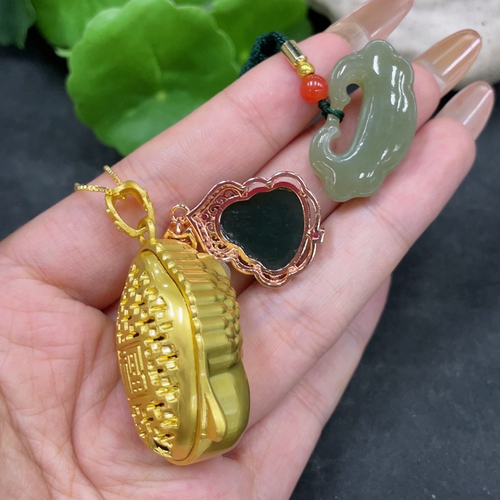 Hetian Jade Inlaid Pendant All Non-Gold Total Weight Approx. (Including Chain) 29.7g