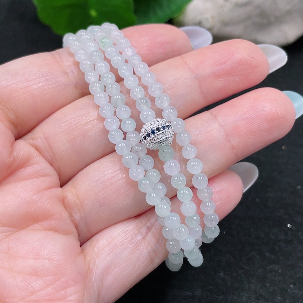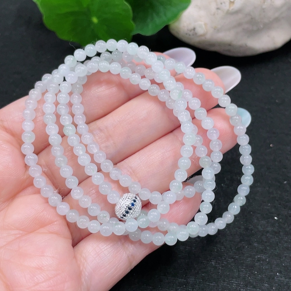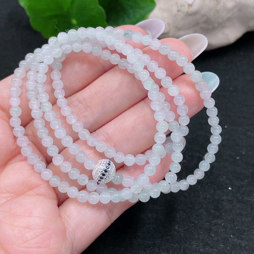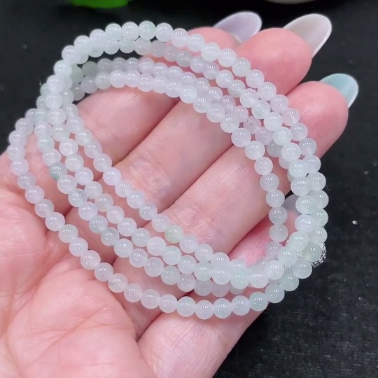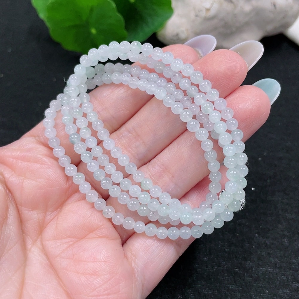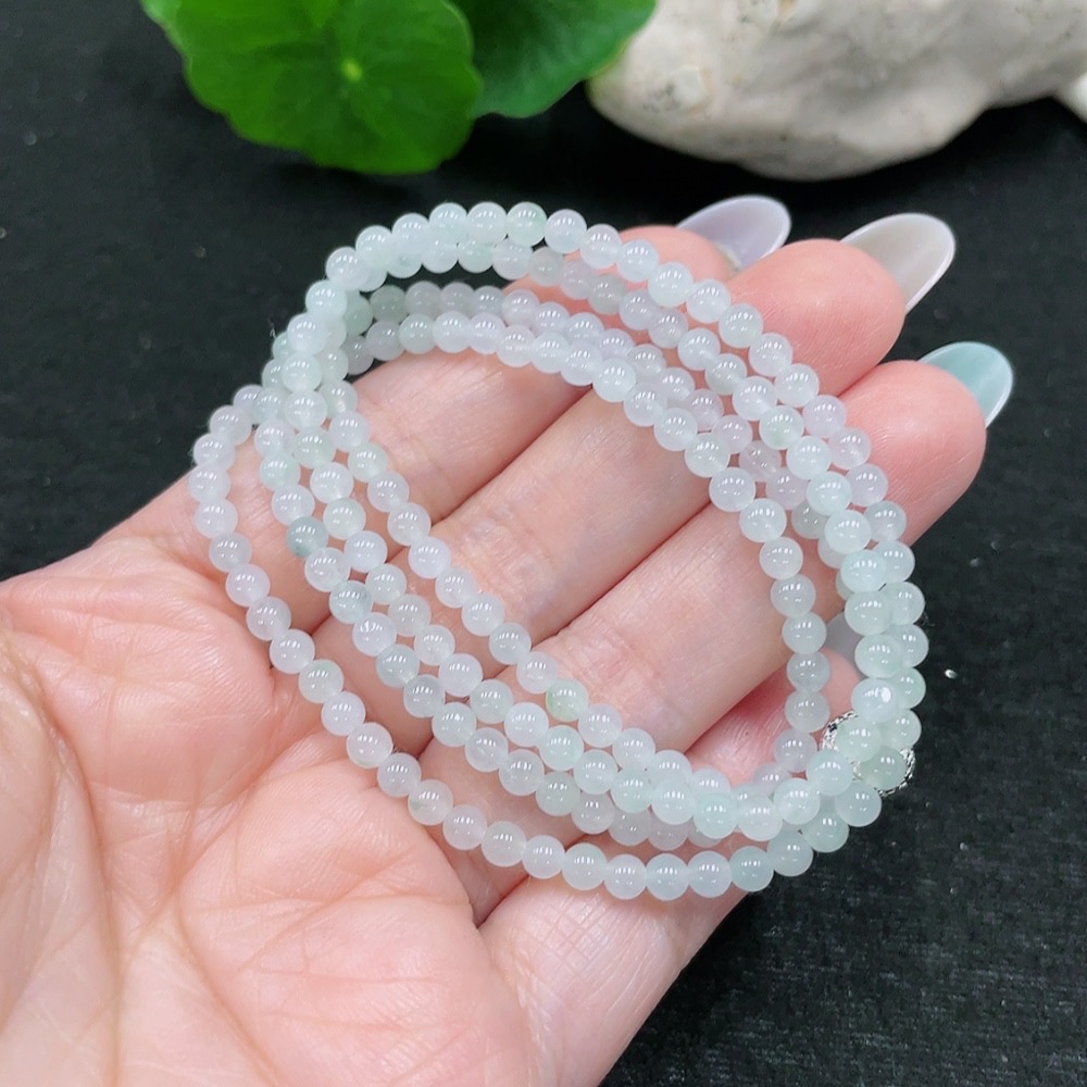Jadeite Bead Necklace Approx. 3.7mm Total Weight Approx. 15.6g Non-gold Setting