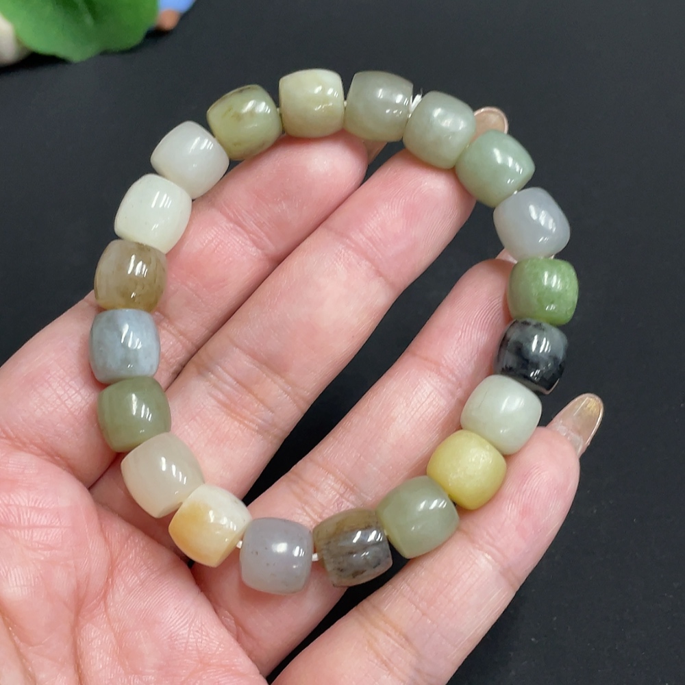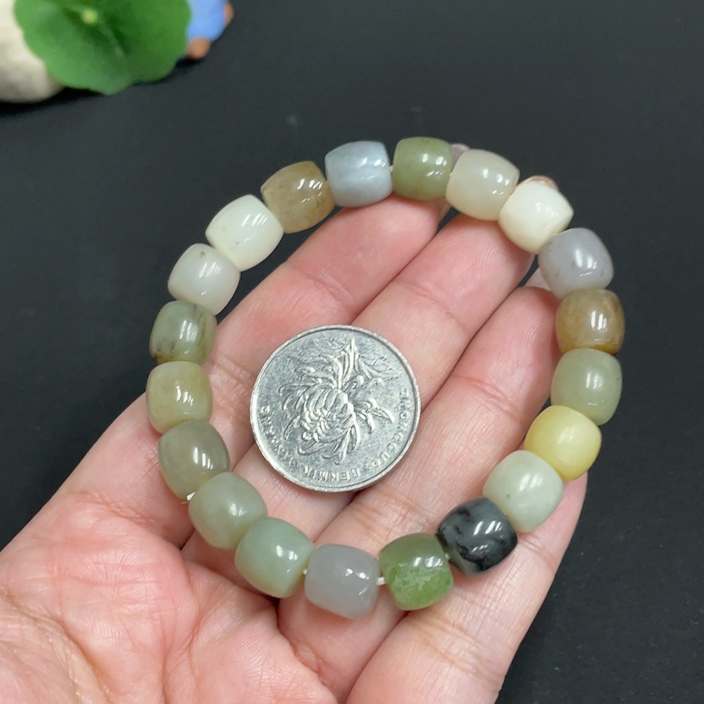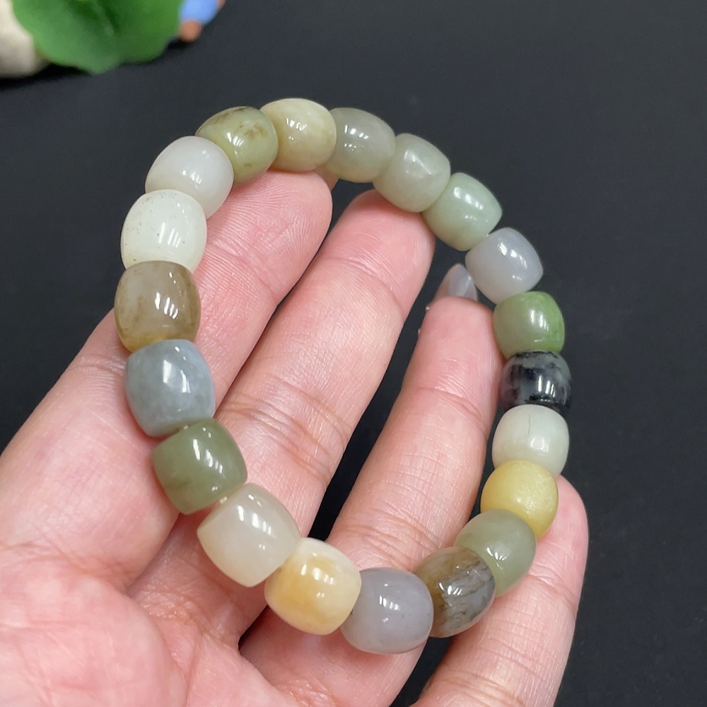 Hetian Jade Bracelet Approx. 9.6mm Beads Total Weight Approx. 34.2g