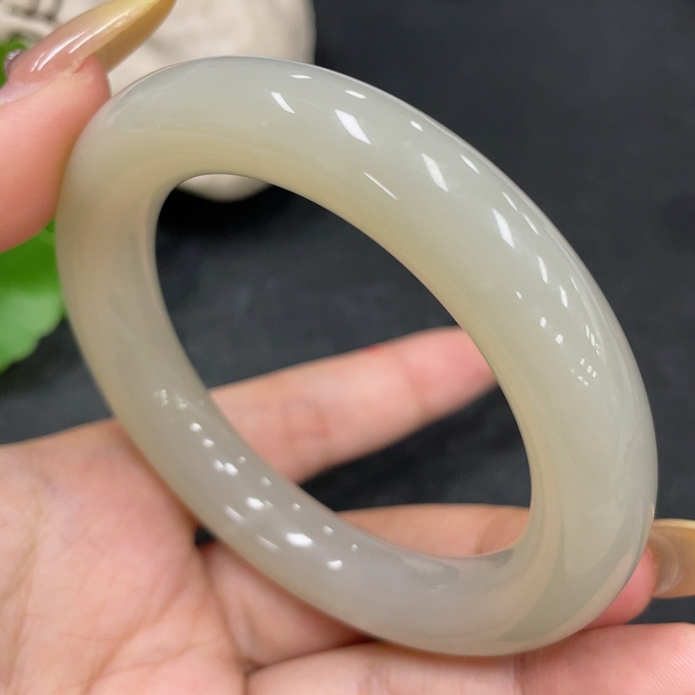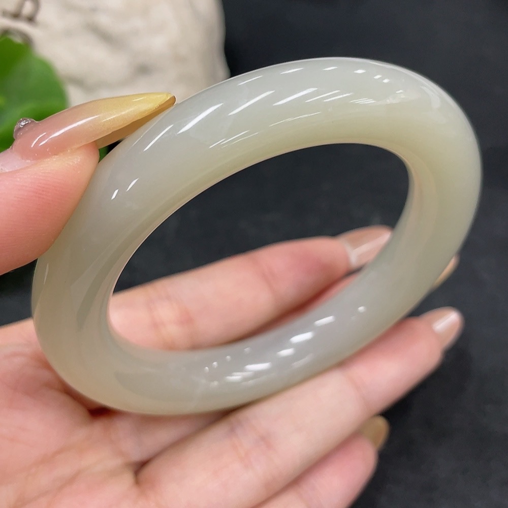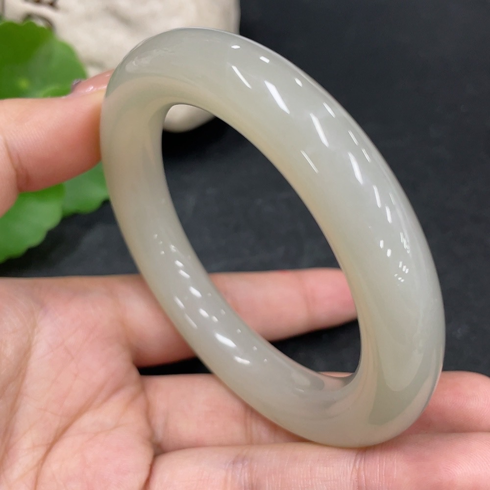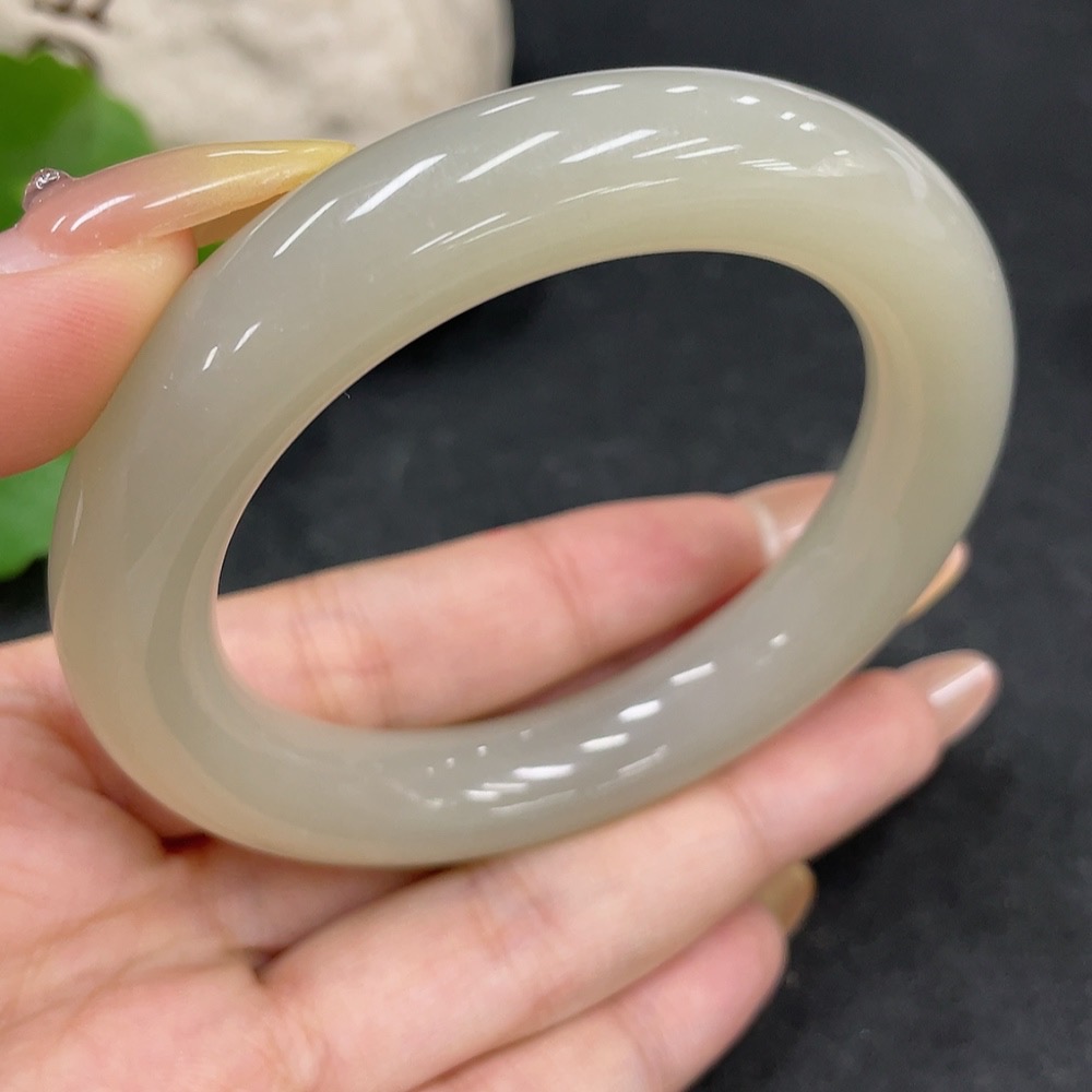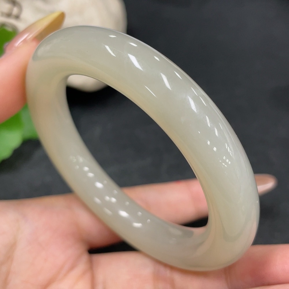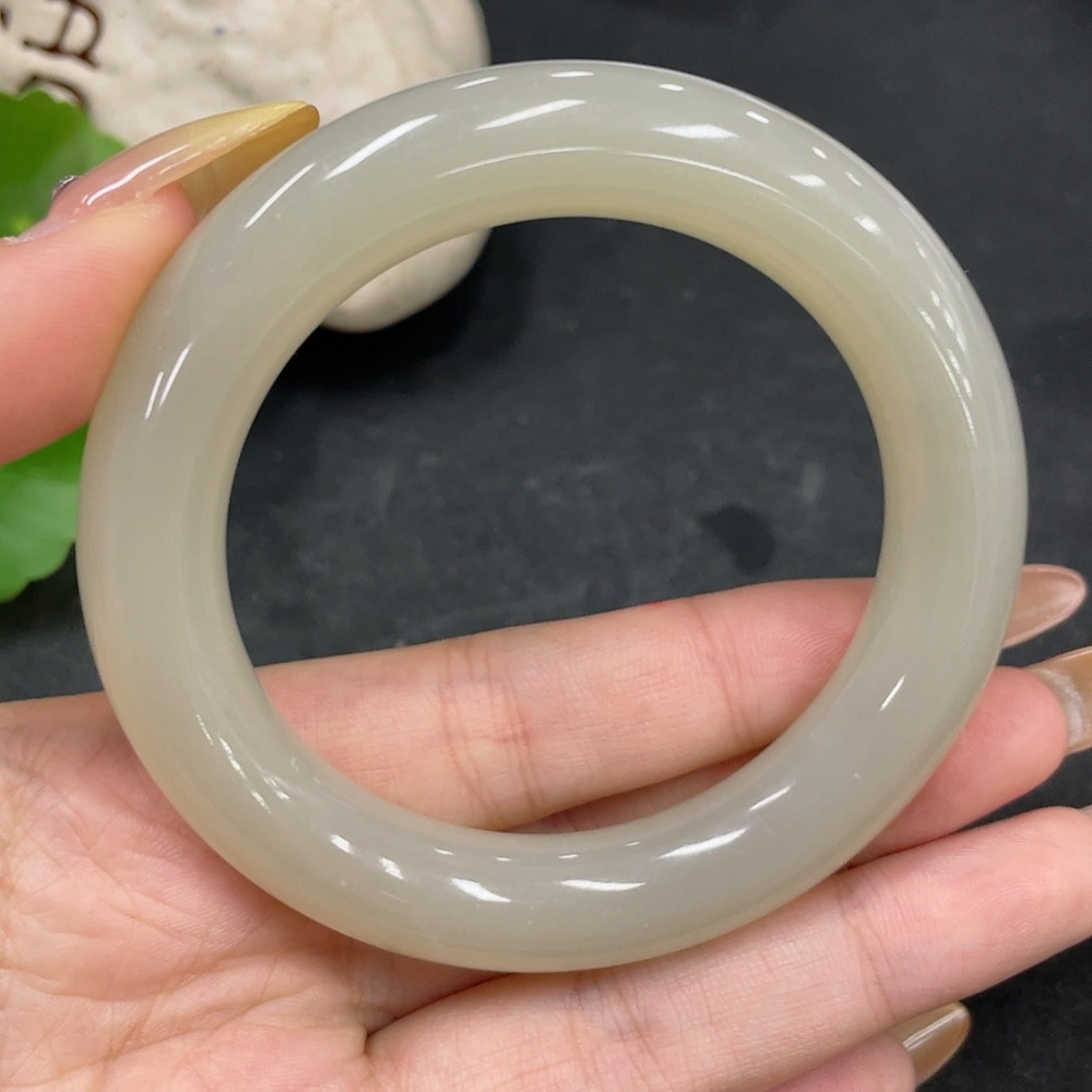 Hetian Jade Round Bangle, Loop Diameter 54.7, Total Weight Approx. 66.8g