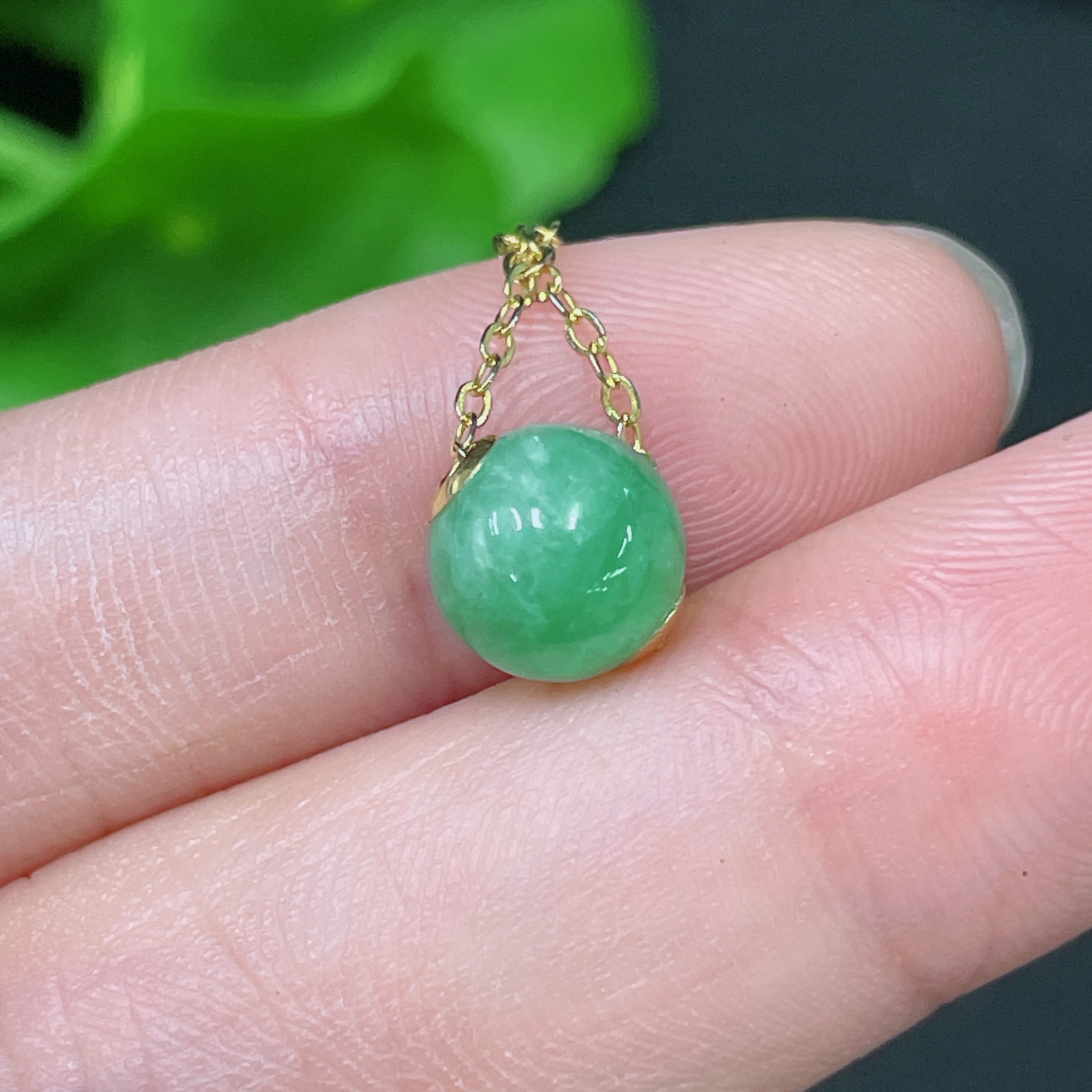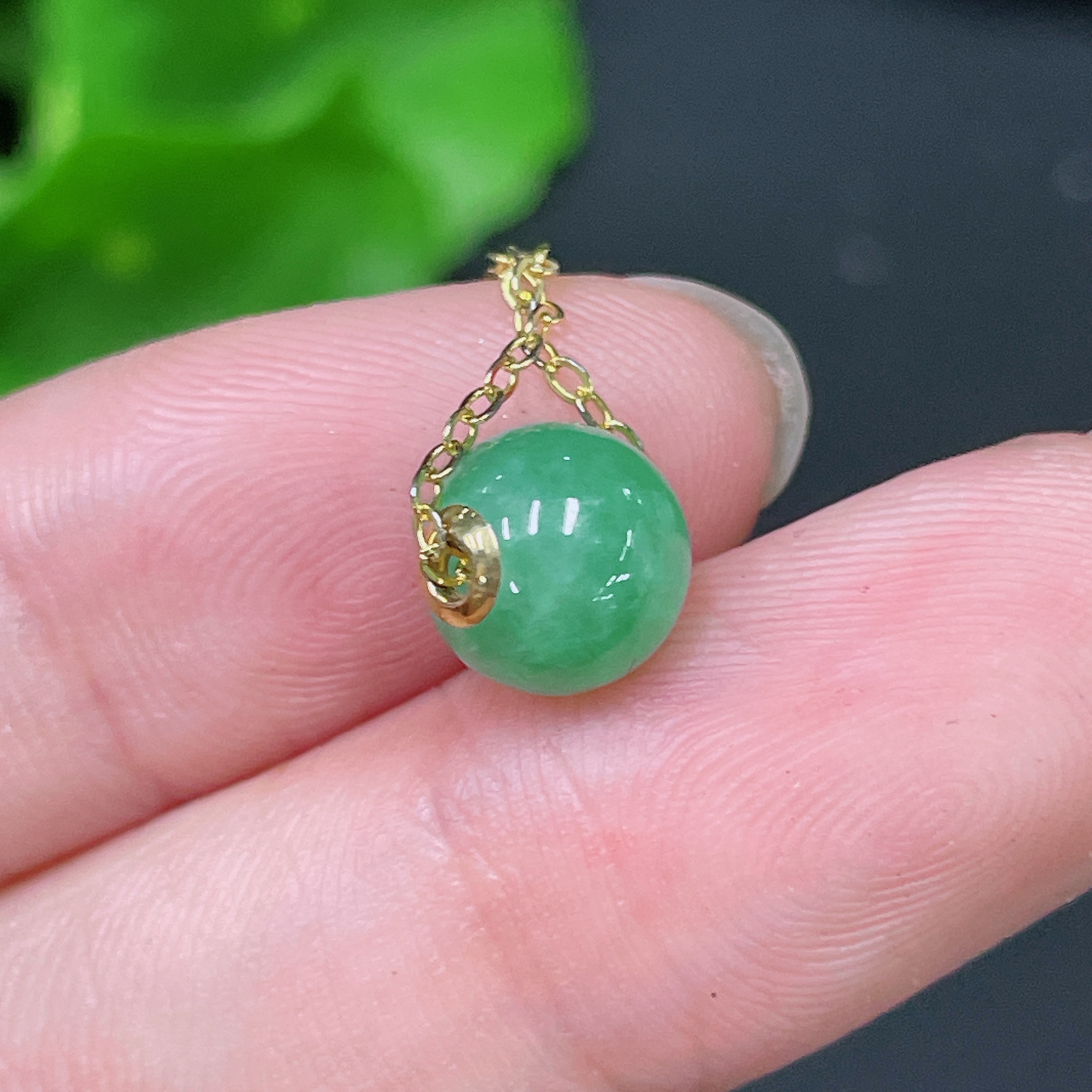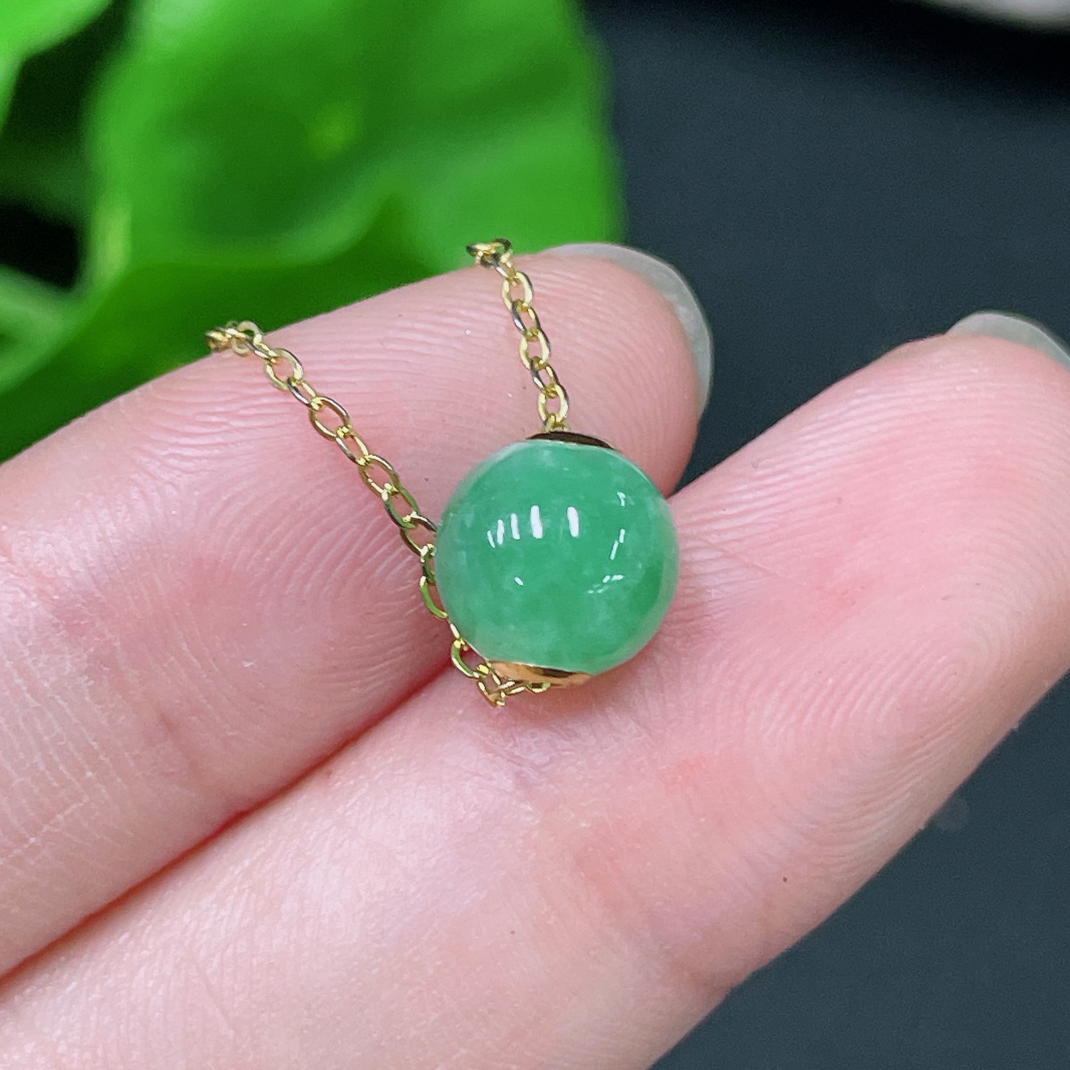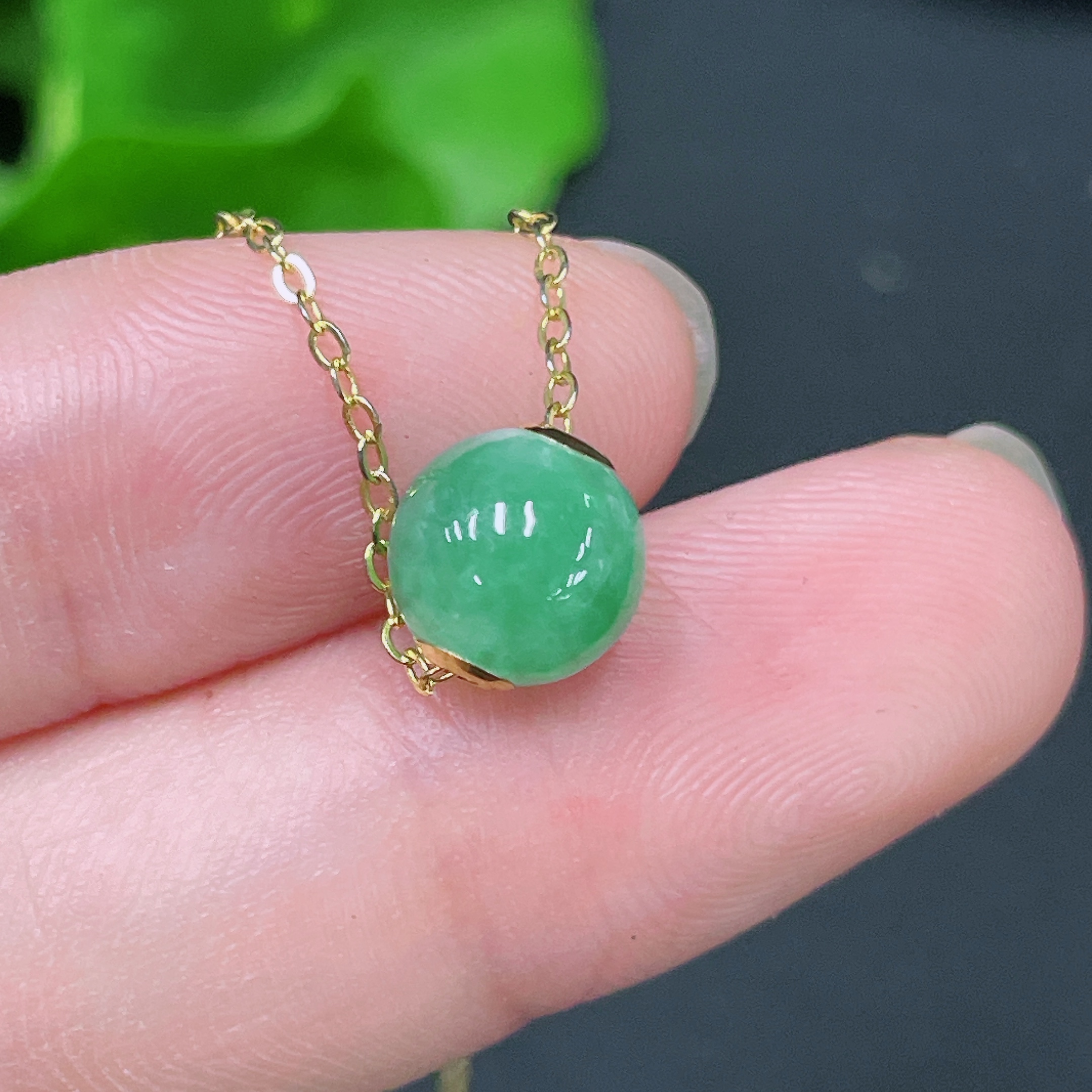 Trezaar - Jadeite Beads Approx. 7.8mm Pendant Set in 67% Au Non-Gold Chain Total Weight Approx. 1.7g