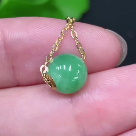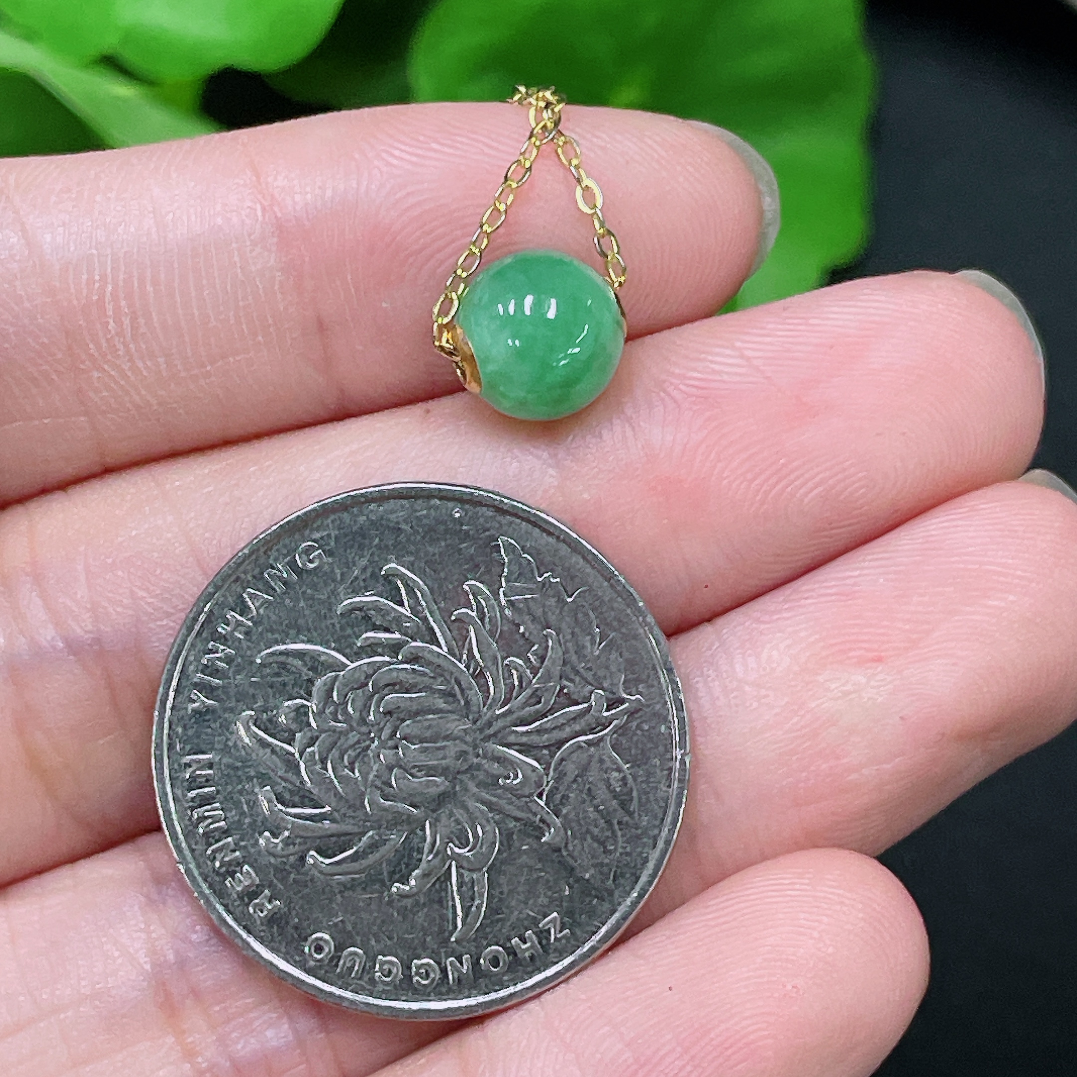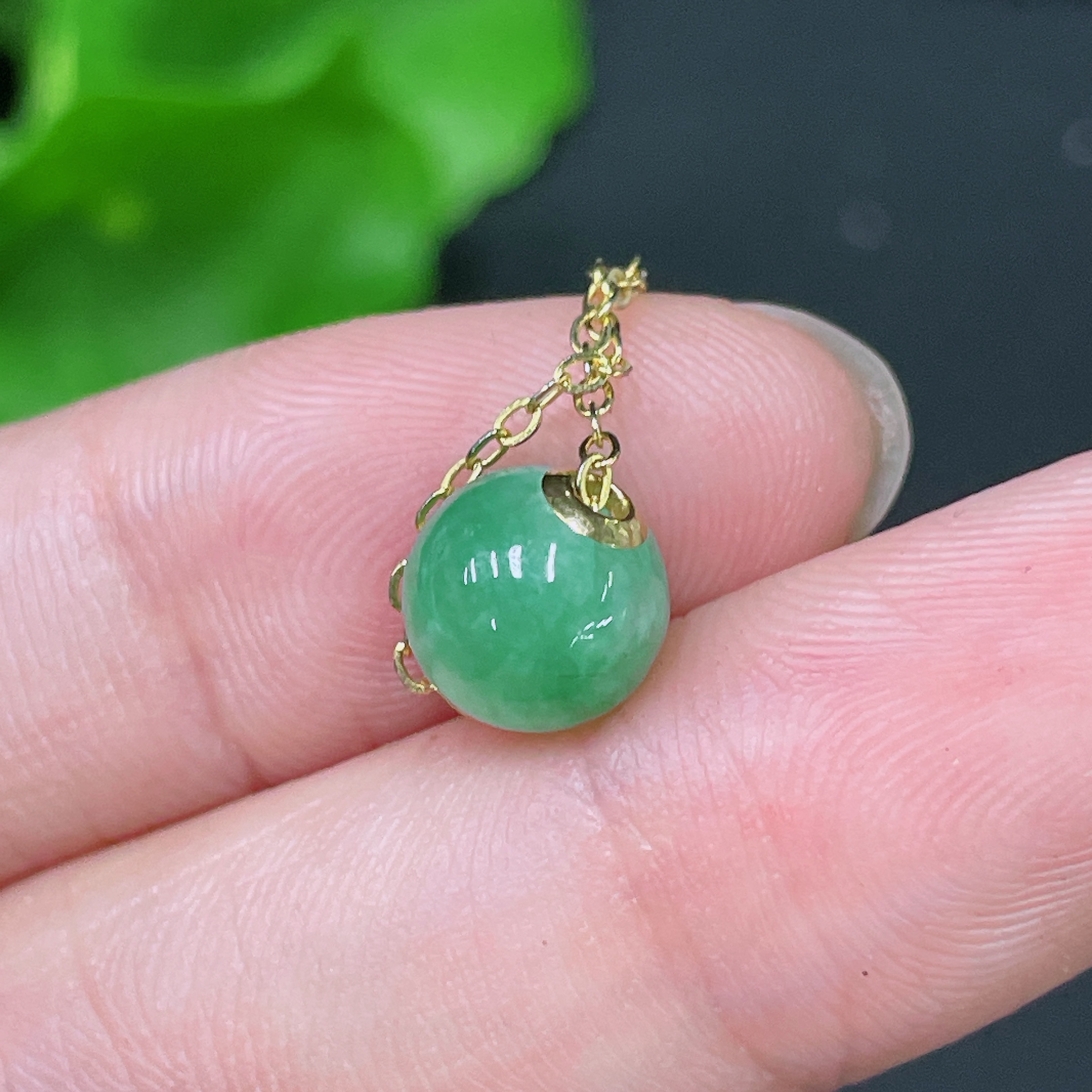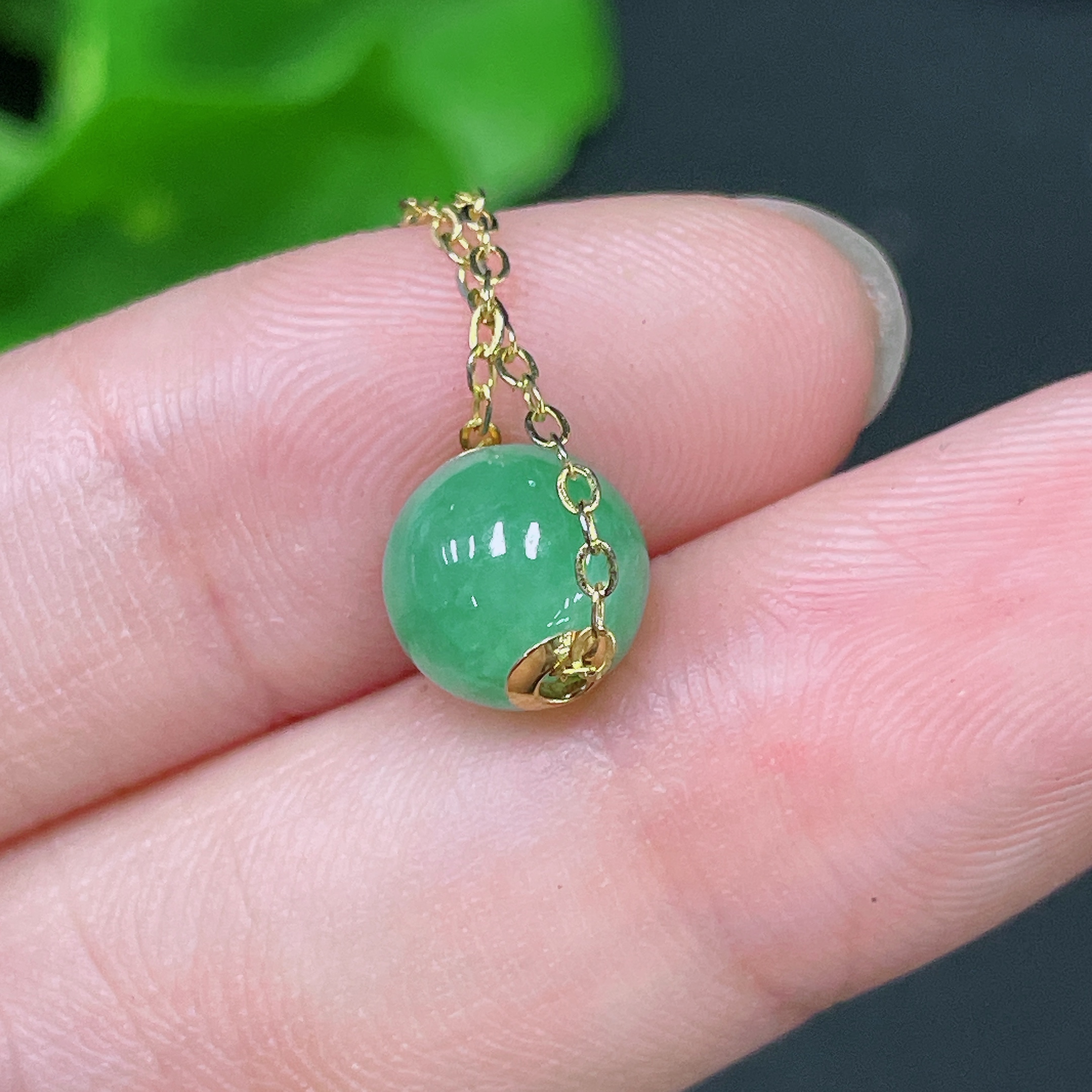 Trezaar - Jadeite Beads Approx. 7.8mm Pendant Set in 67% Au Non-Gold Chain Total Weight Approx. 1.7g
