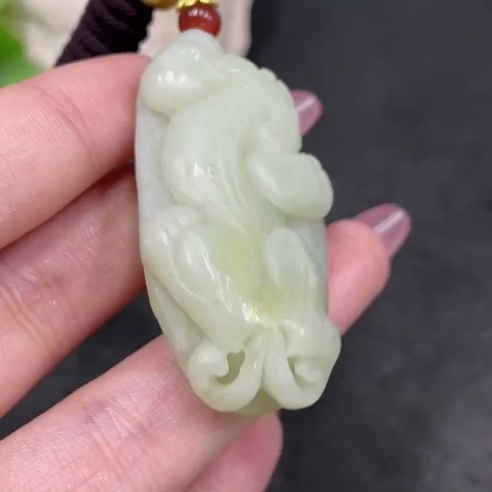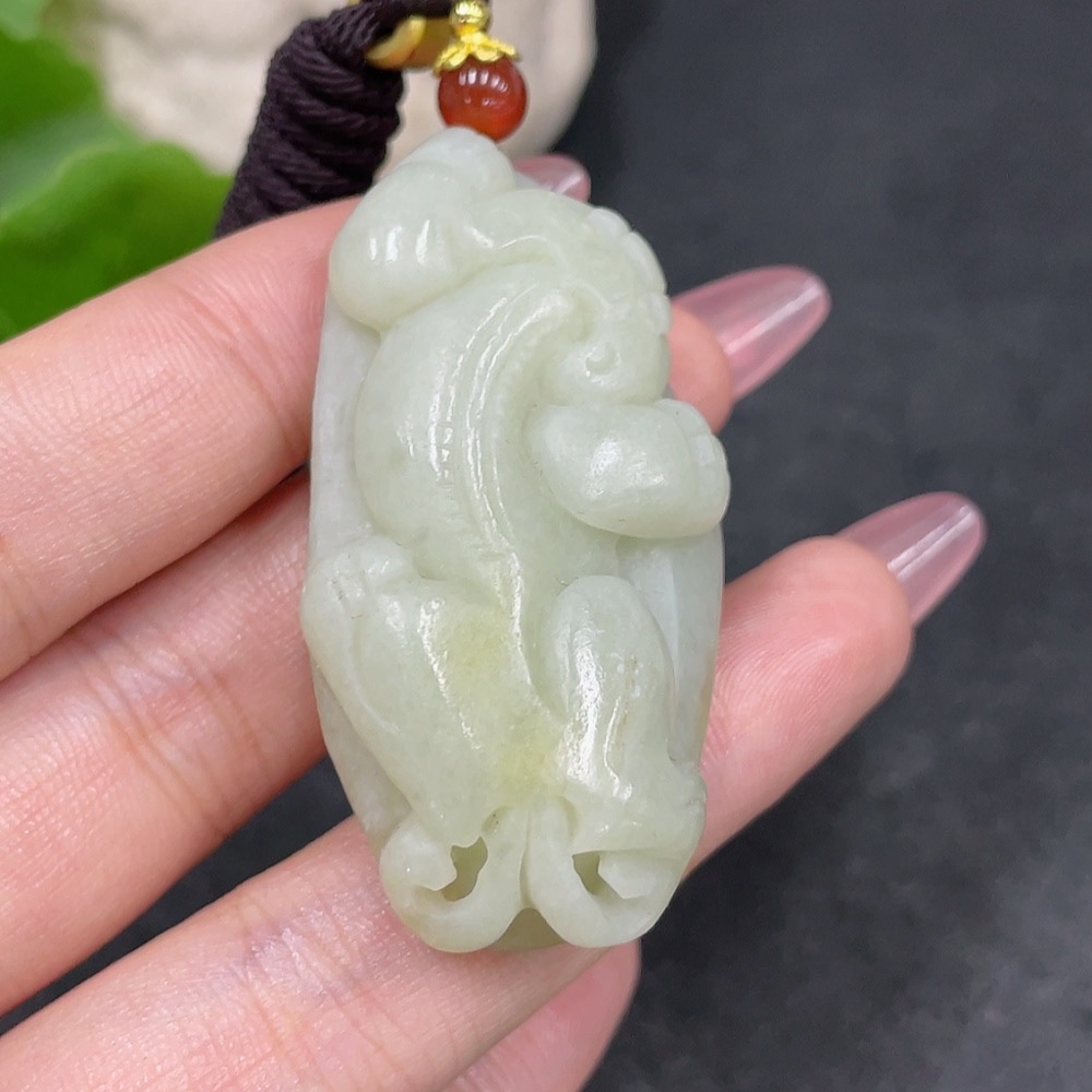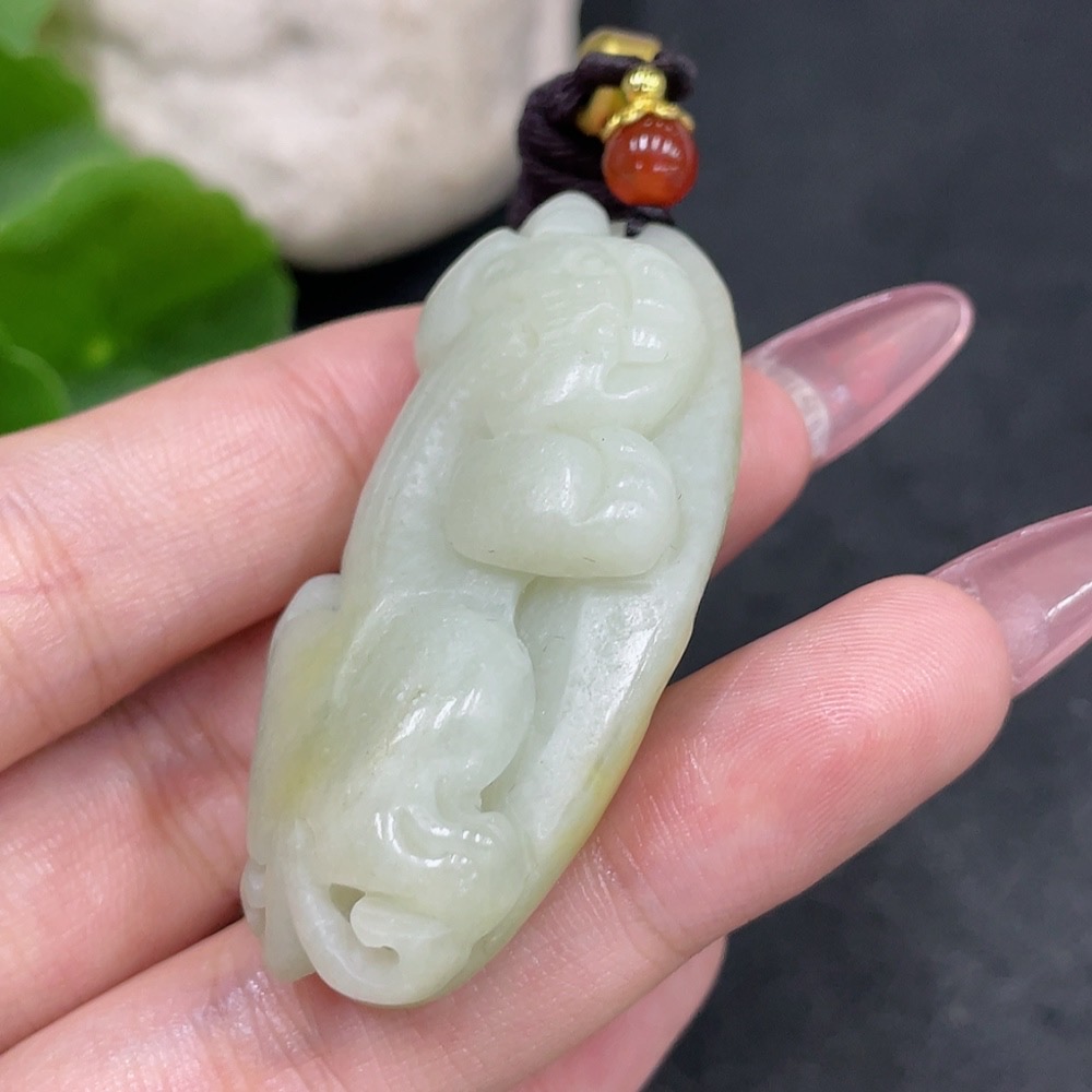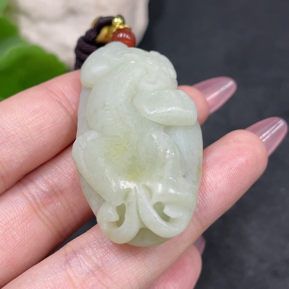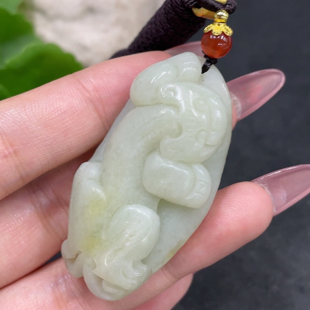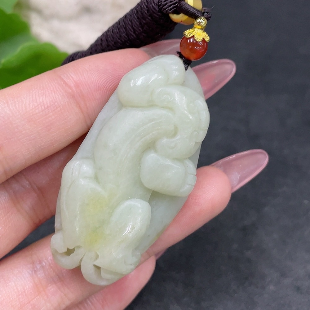 Hetian Jade Pendant, Undetermined Skin Color Formation, Auspicious Beast, Total Weight (including rope) Approx. 35.1g