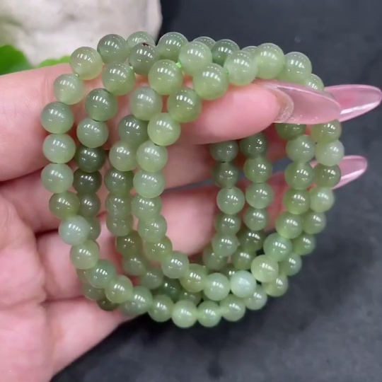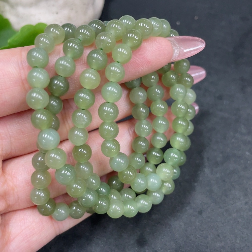 Hetian Jade Bead Necklace Approx. 6mm Total Weight About 34.7g