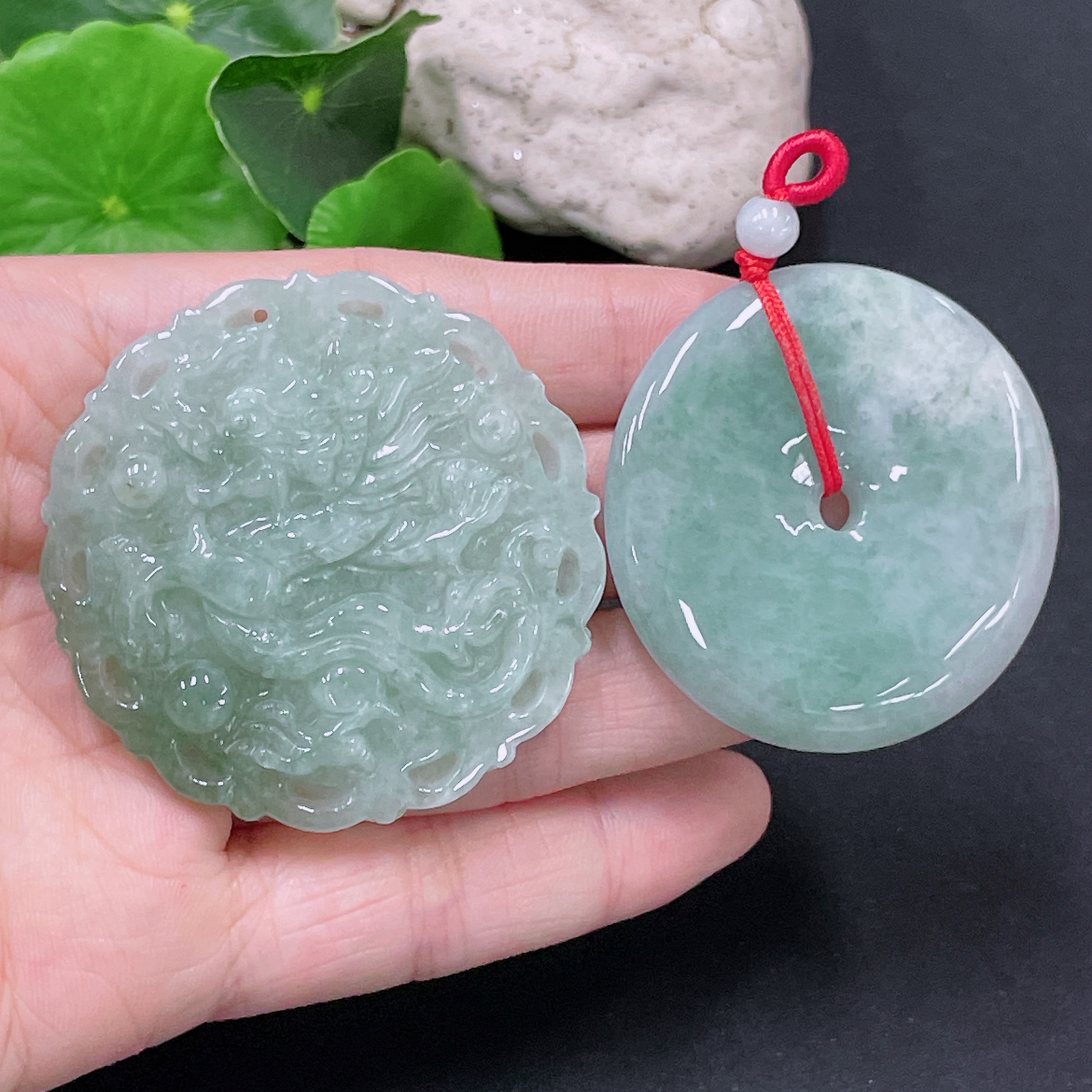 Jadeite Pendant Safety Buckle Dragon Plaque Guanyin