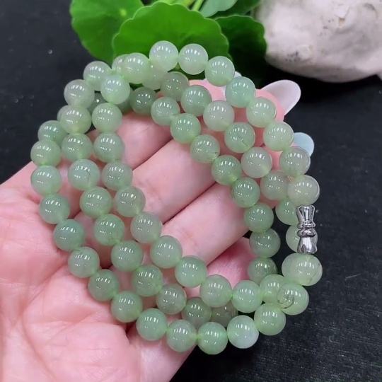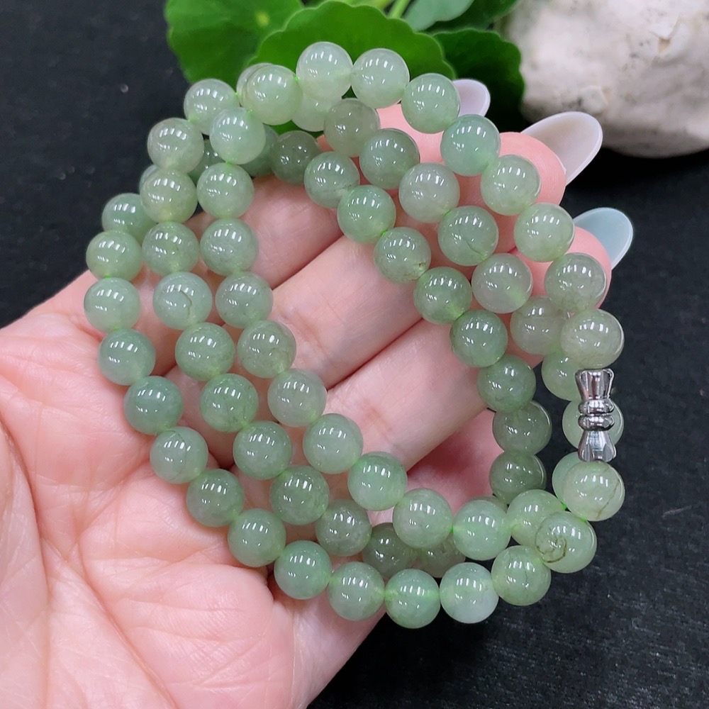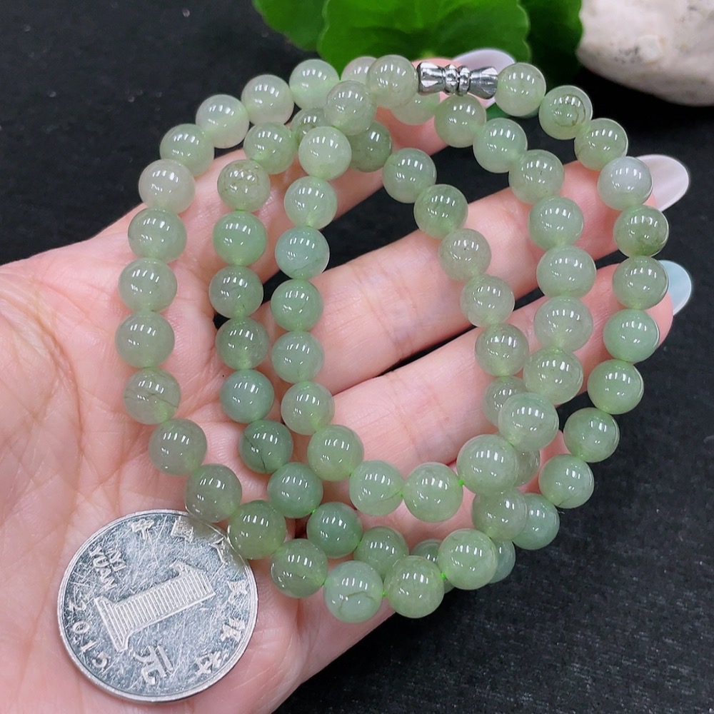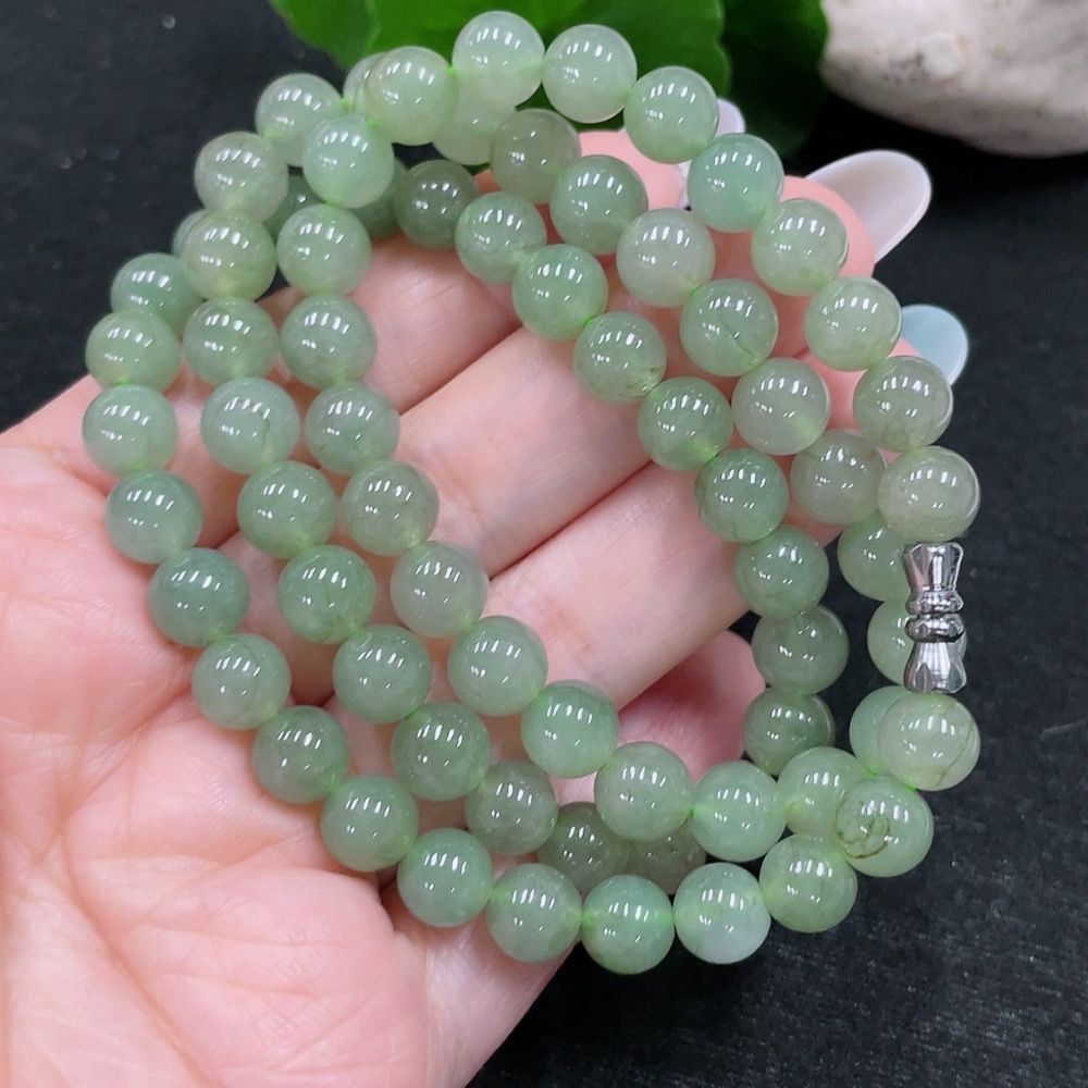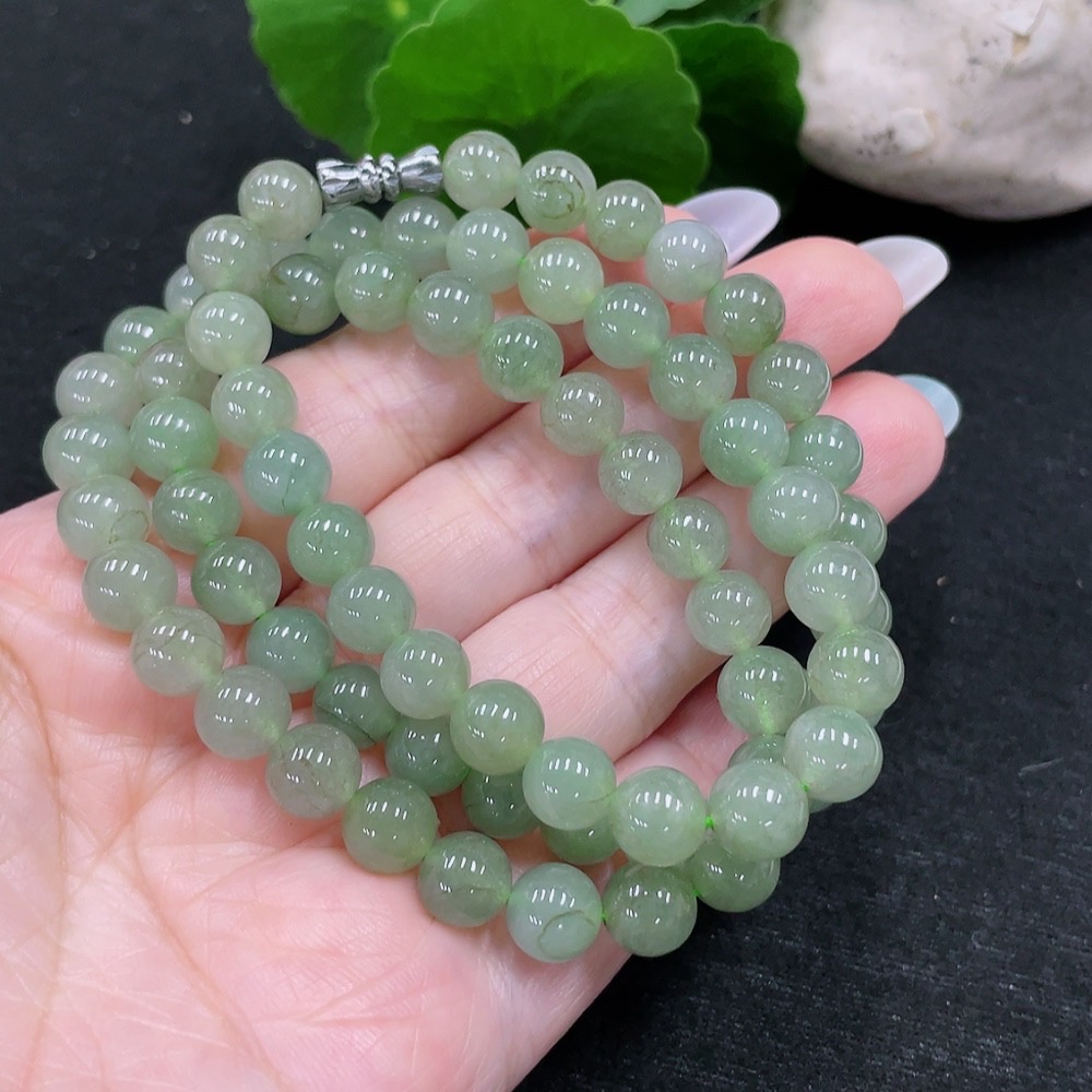 Jadeite Bead Necklace Approx. 7.7mm Total Weight Approx. 55.56g Non-Gold