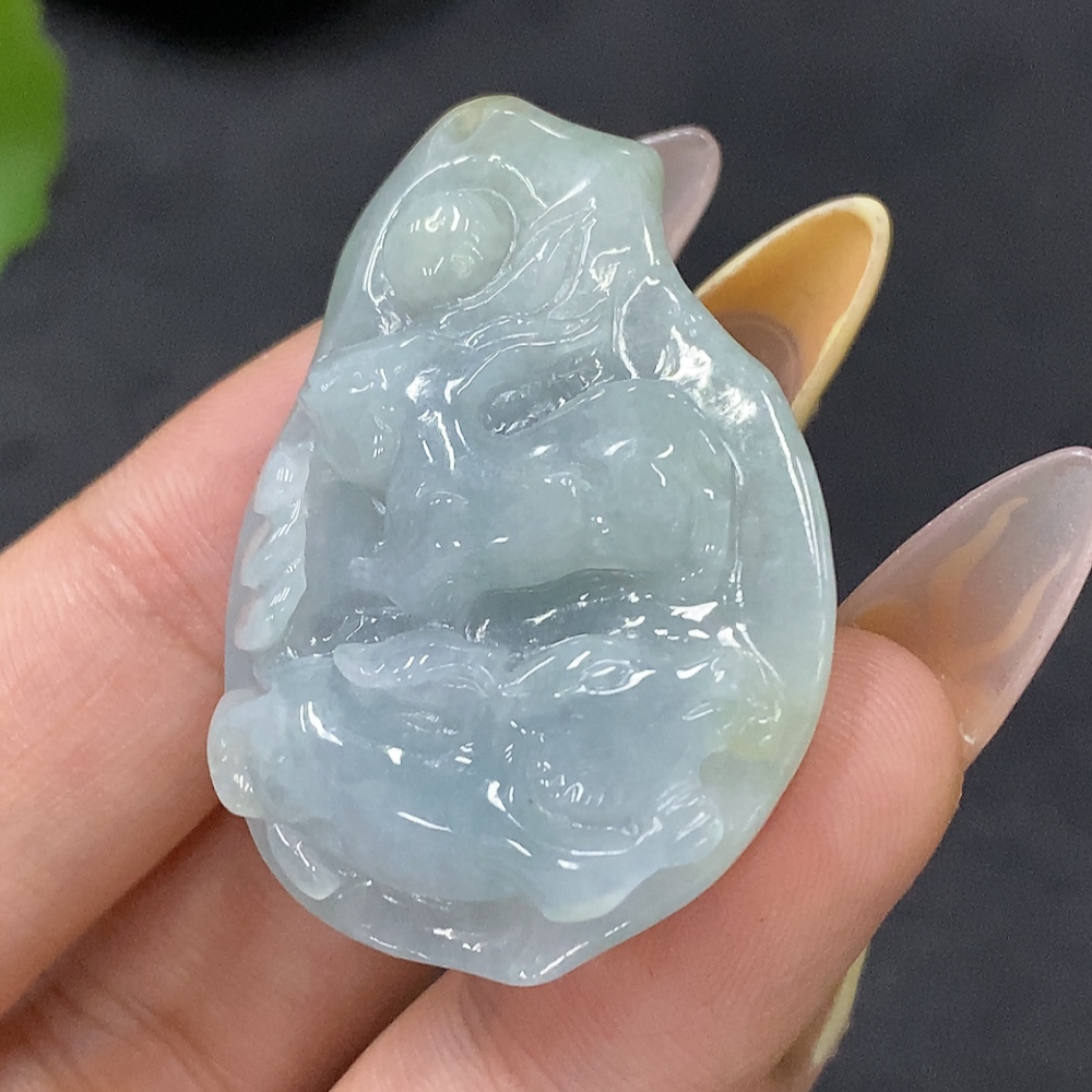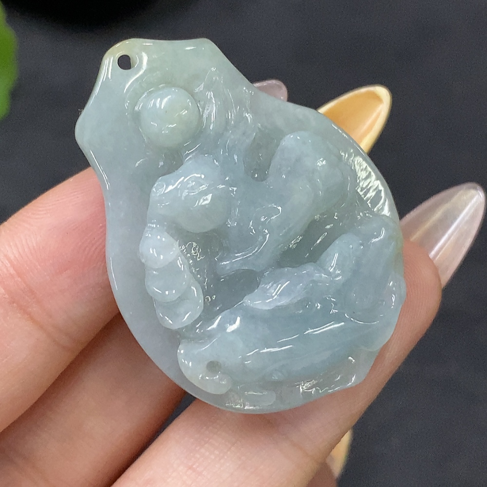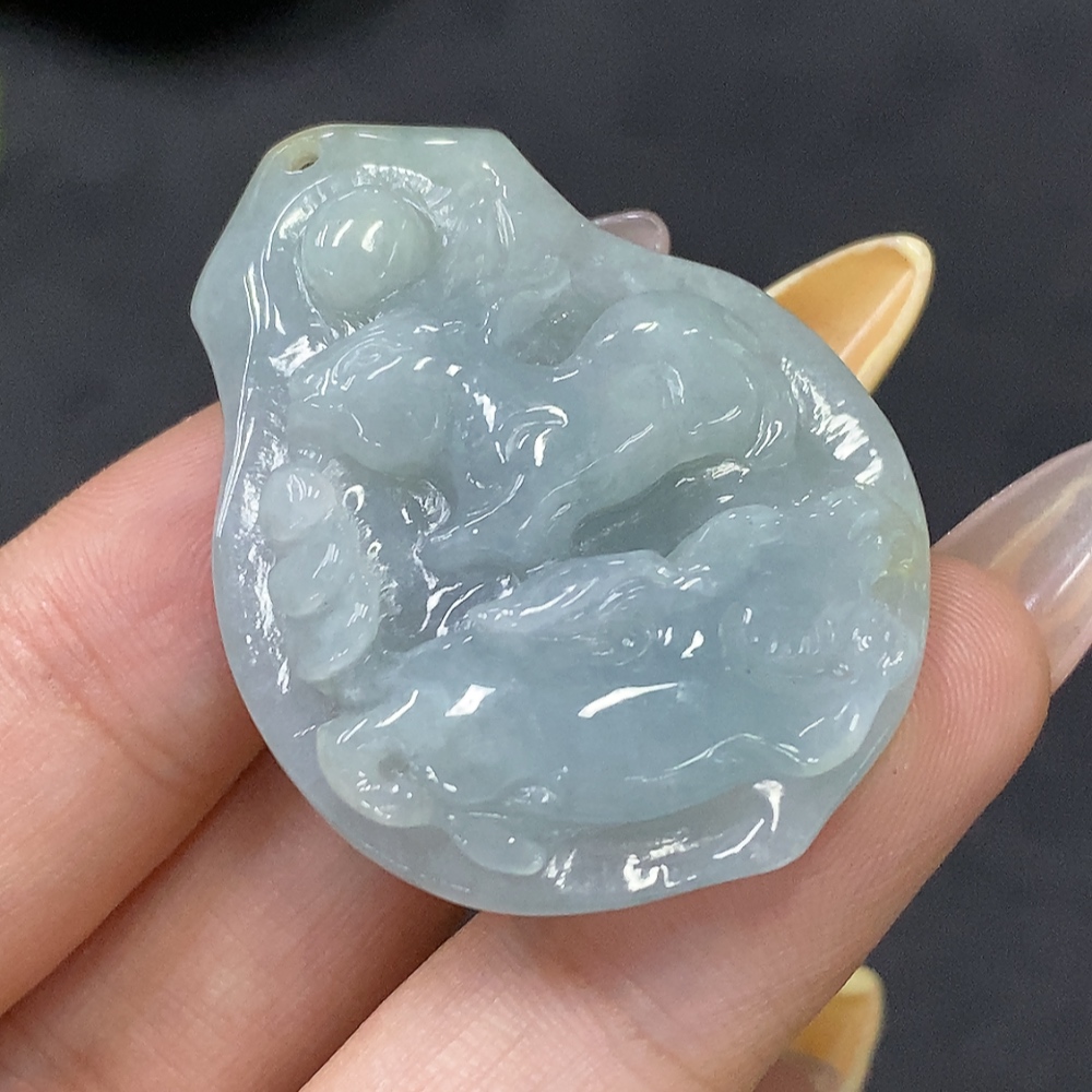 Jadeite Auspicious Beast Pendant Total Weight: Approx. 19.97g