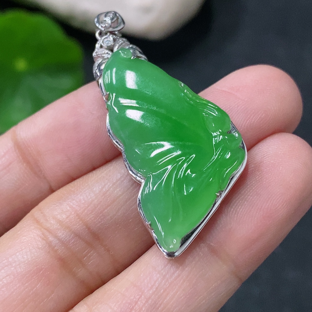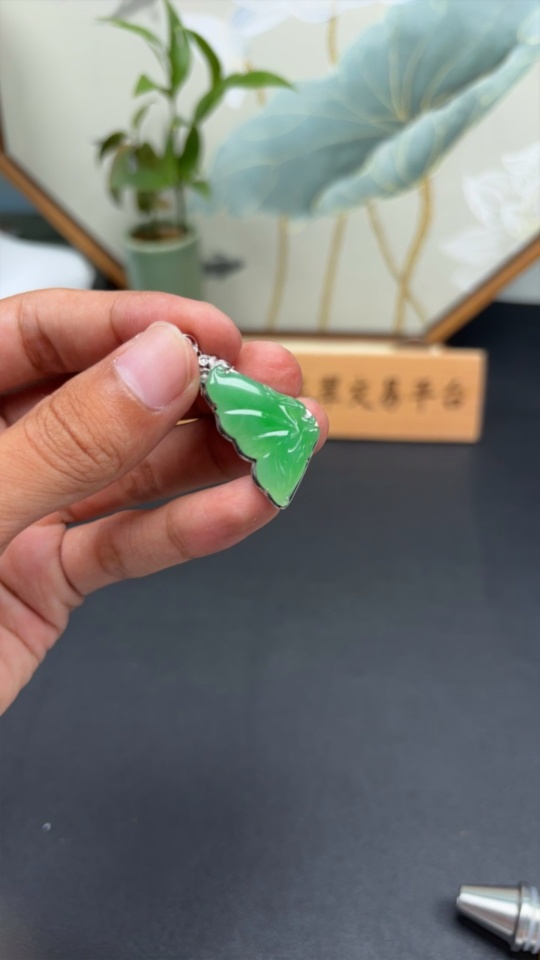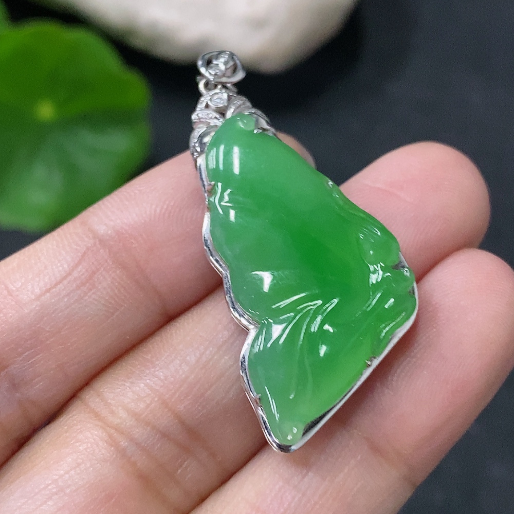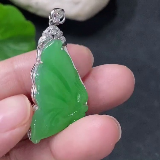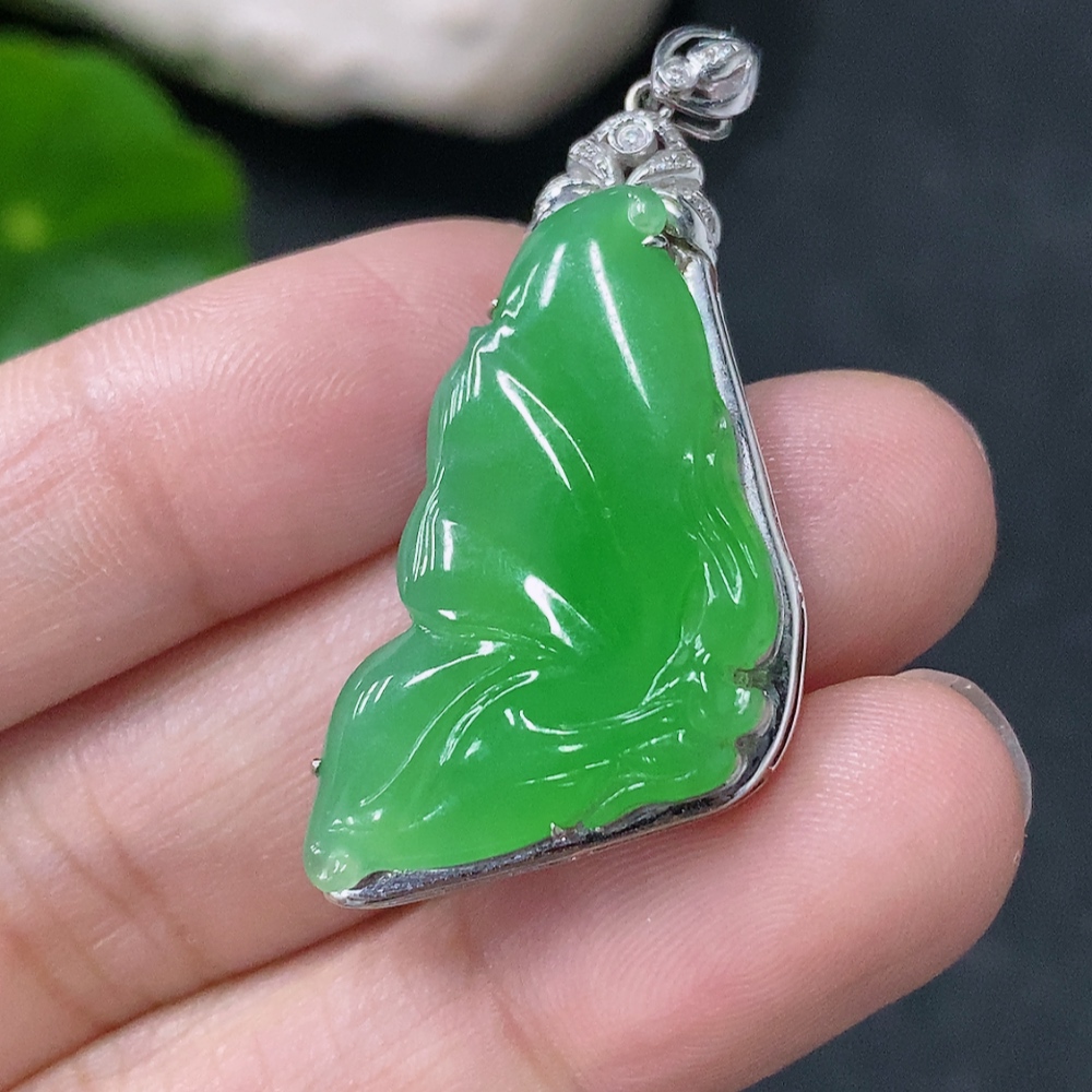 Jadeite Butterfly Fairy Inlaid Pendant 18k Gold Inlaid Total Weight Approx. 4.39g