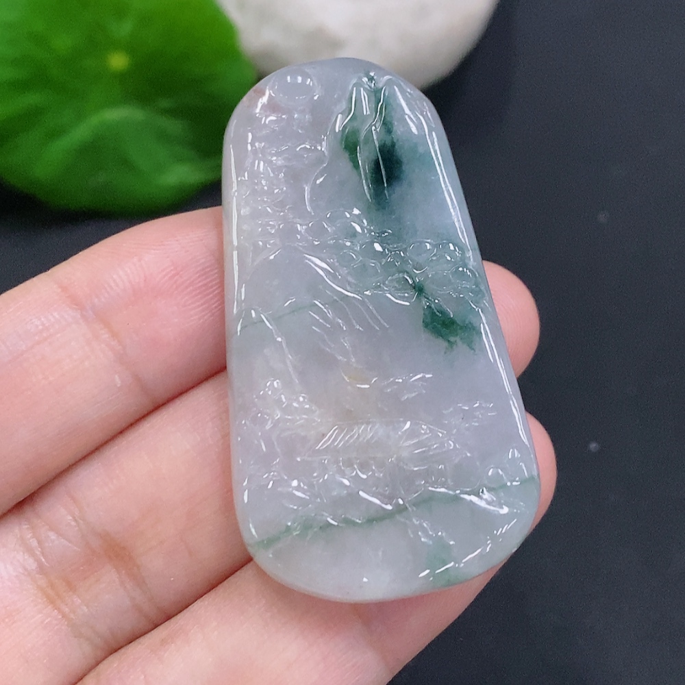 Jadeite Landscape Pendant, Total Weight Approx. 16.2g