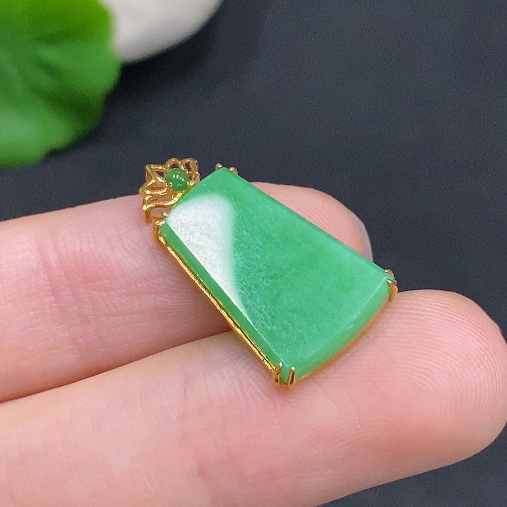 Jadeite Plain Pendant Necklace with 18K Gold, Total Weight Approx. 1.8g