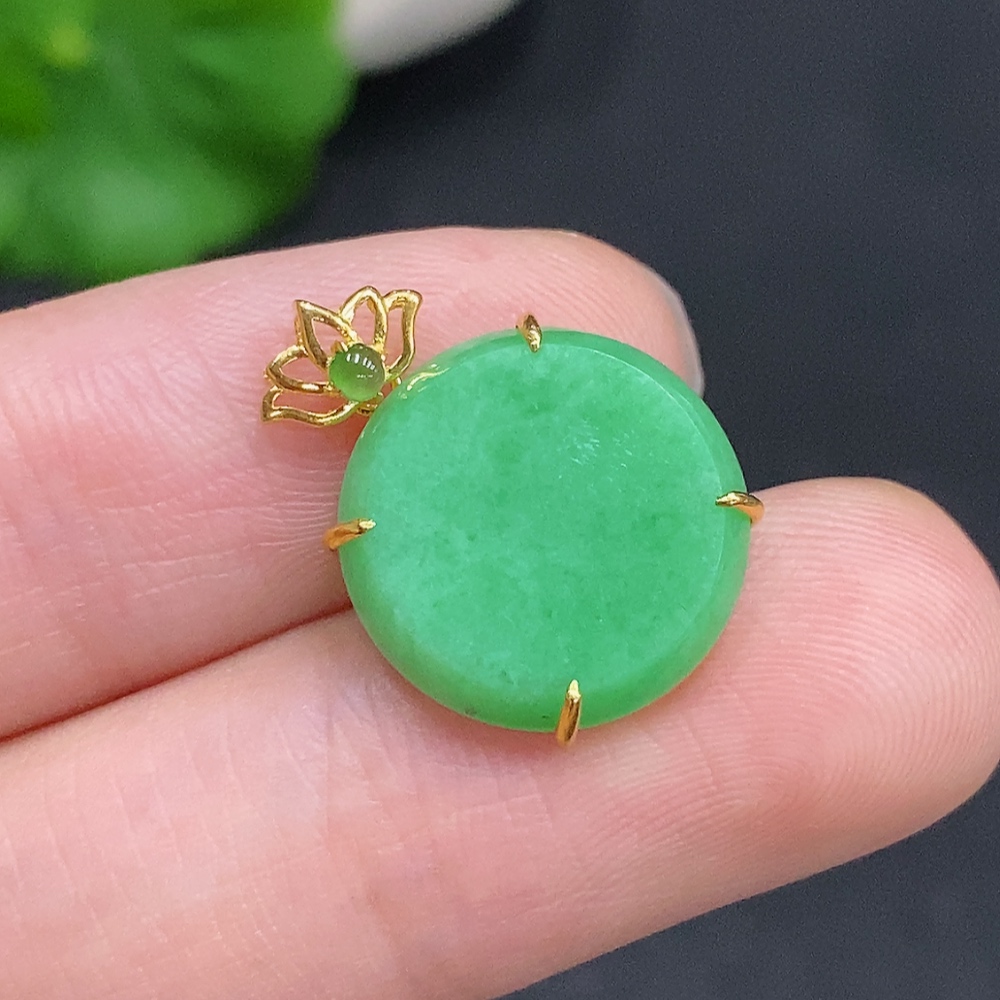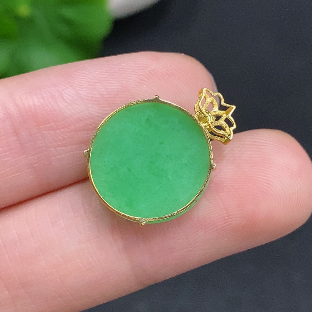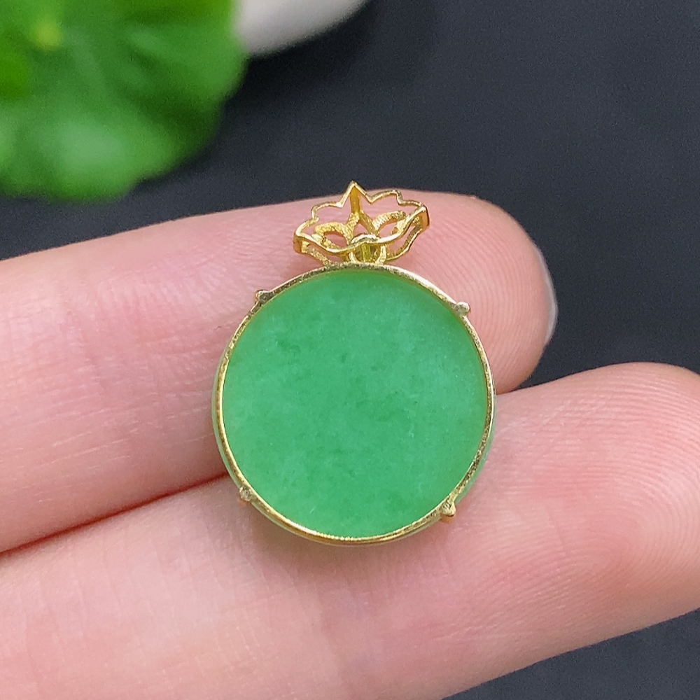Jadeite Plain Pendant with 18K Gold Mount, Total Weight Approx. 1.5g