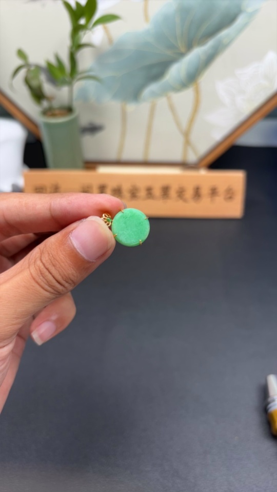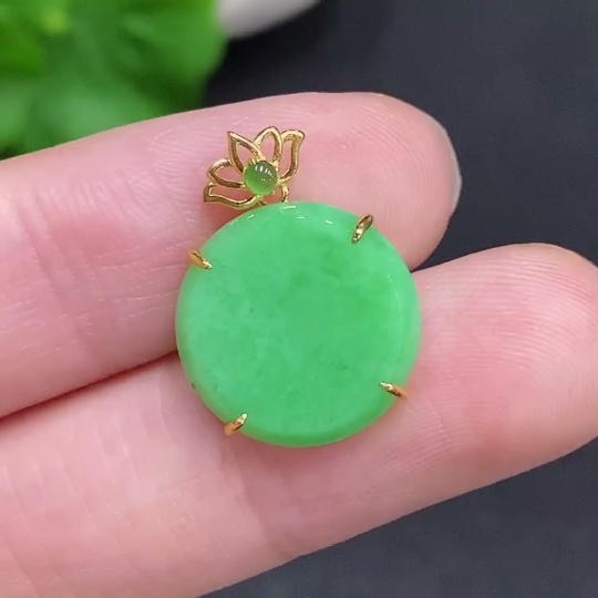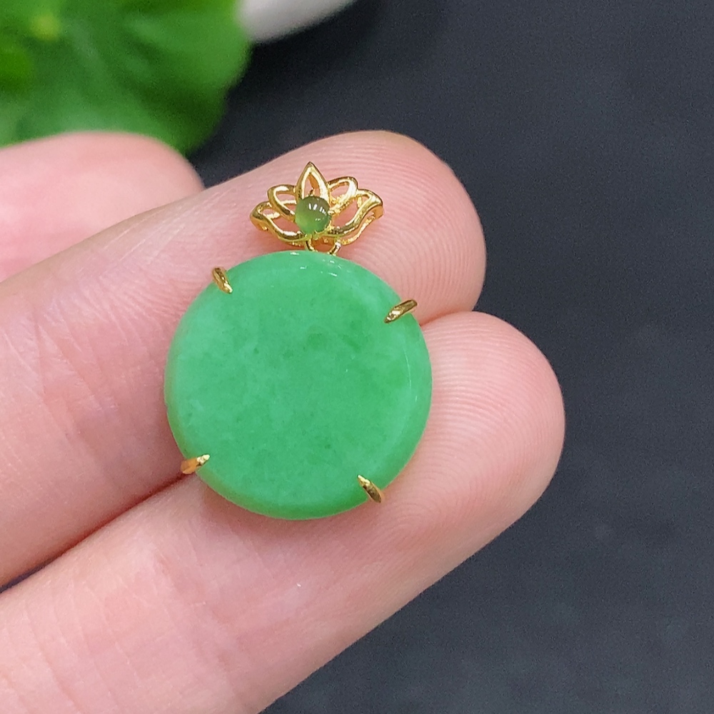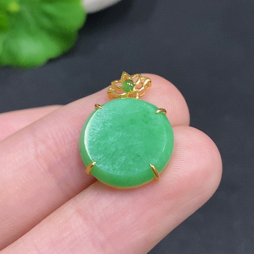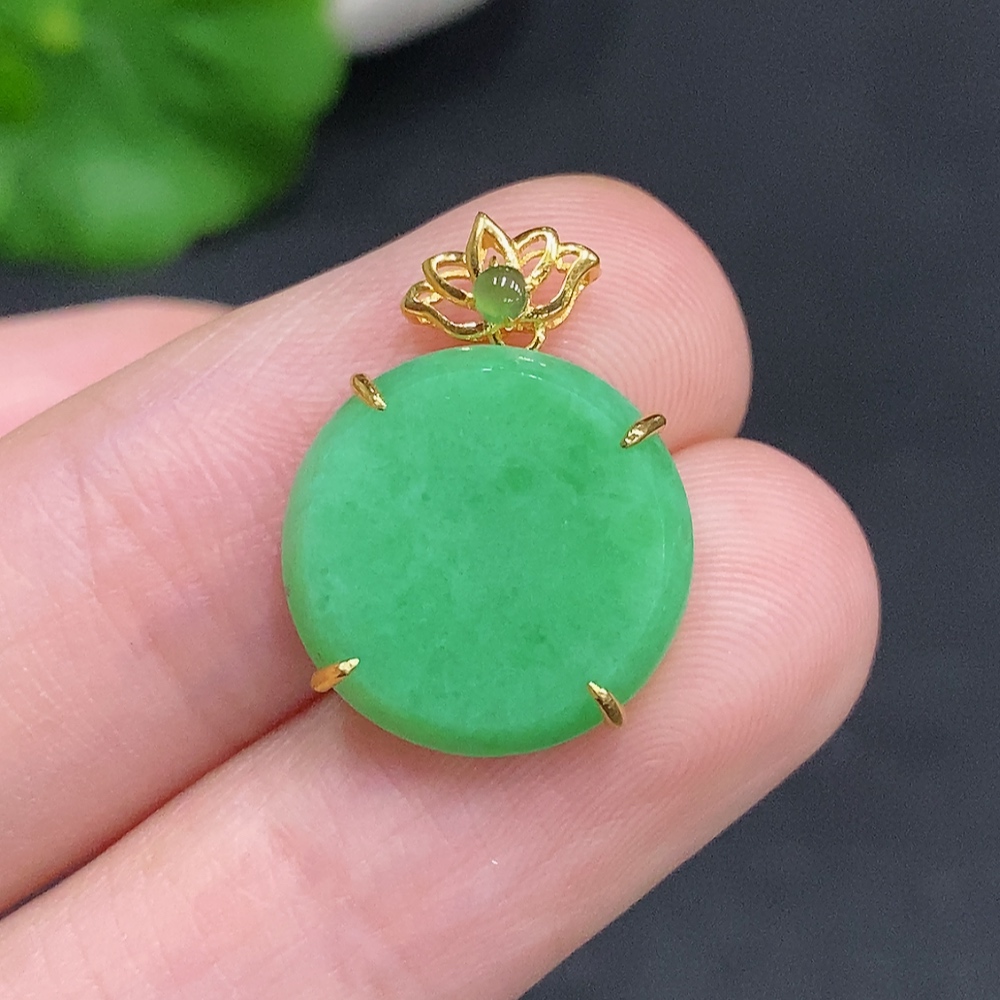 Jadeite Plain Pendant with 18K Gold Mount, Total Weight Approx. 1.5g