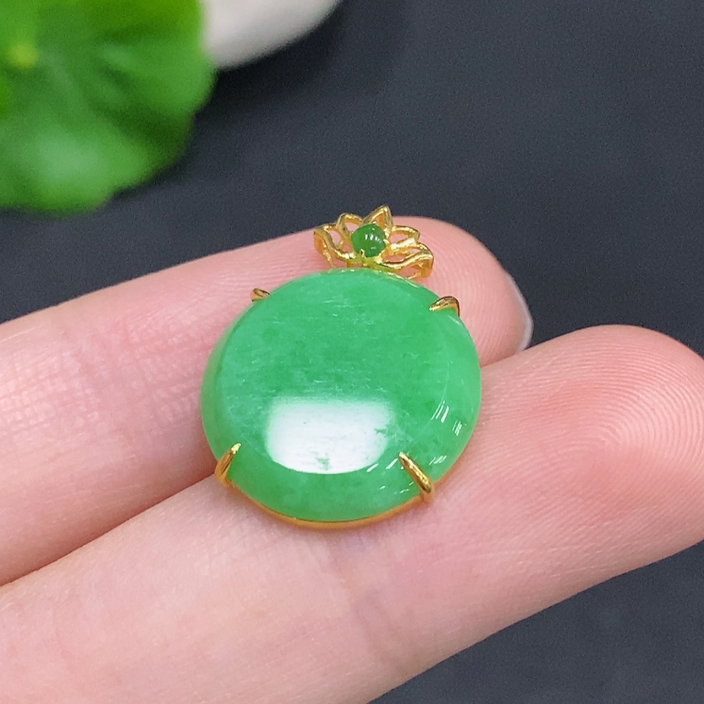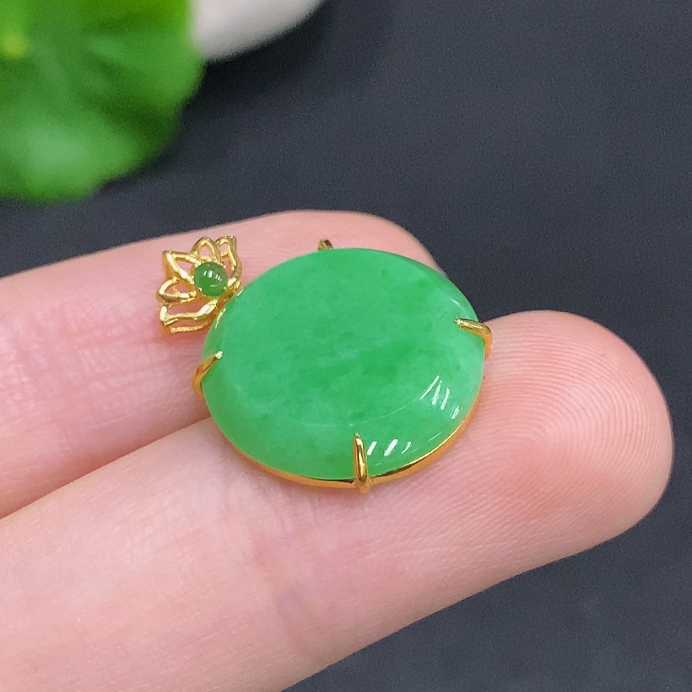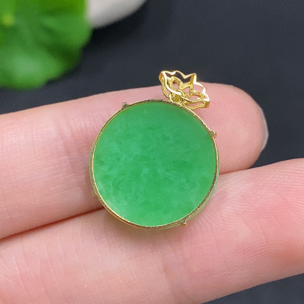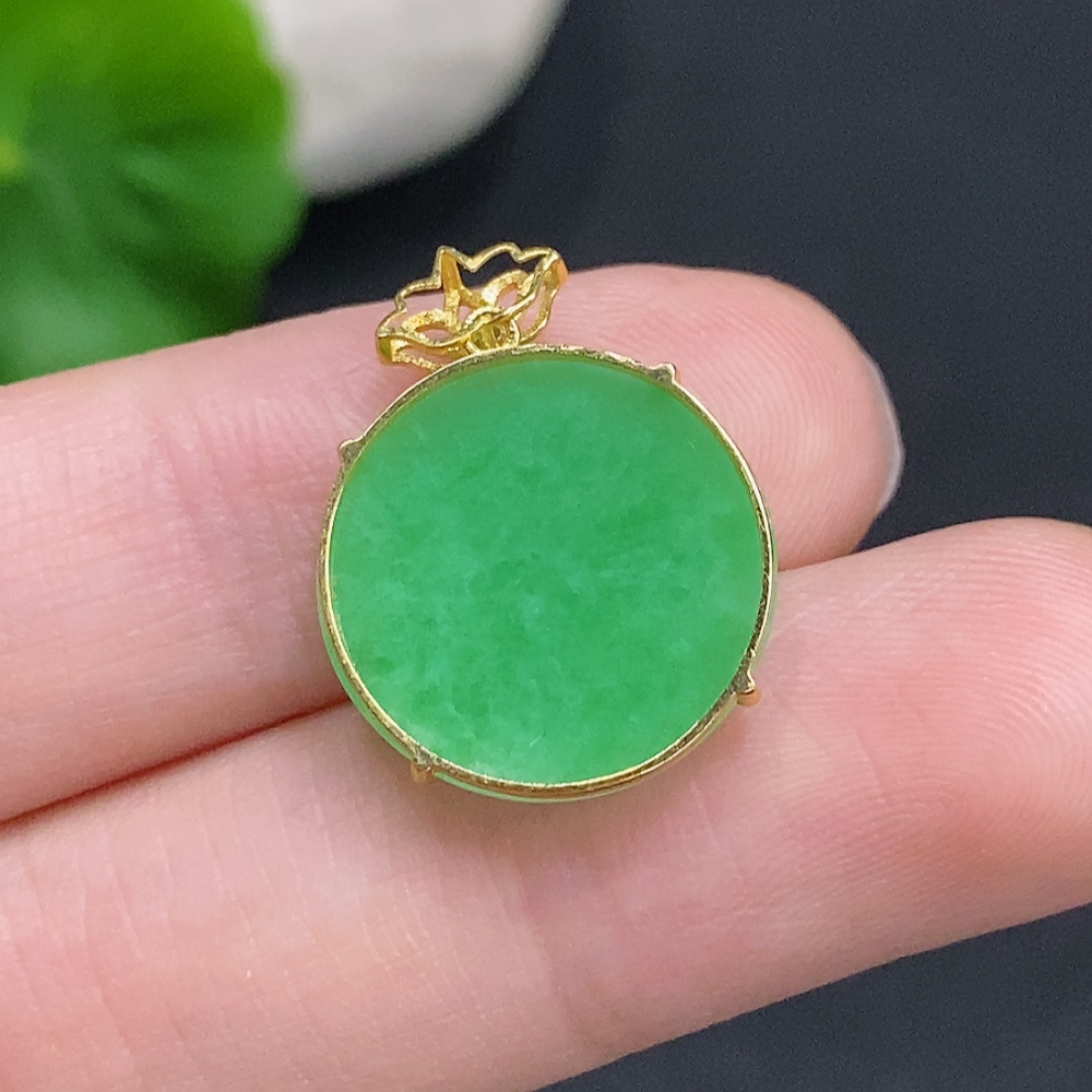 Jadeite Plain Pendant Pendant with 18K Gold, Total Weight Approx. 1.8g