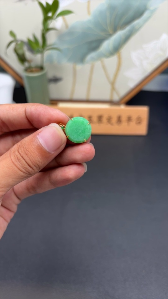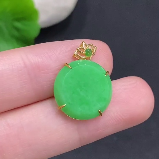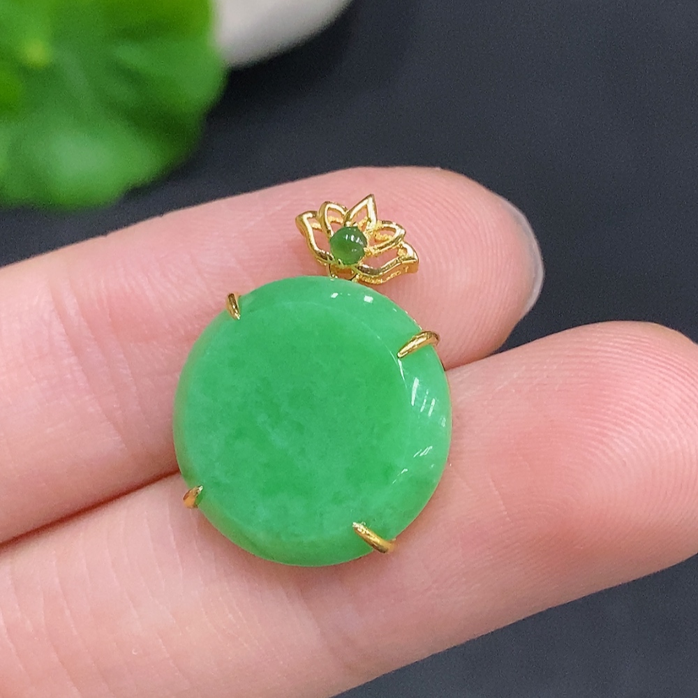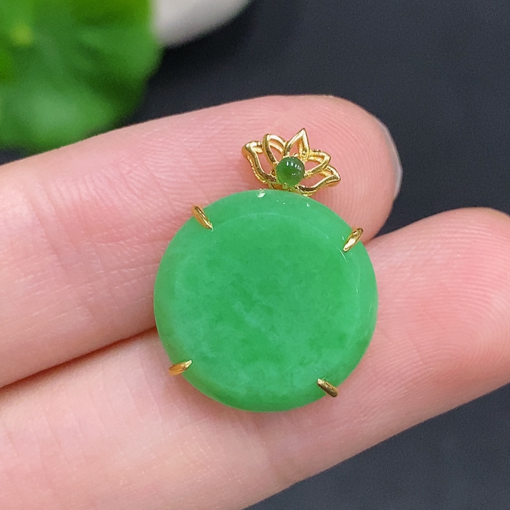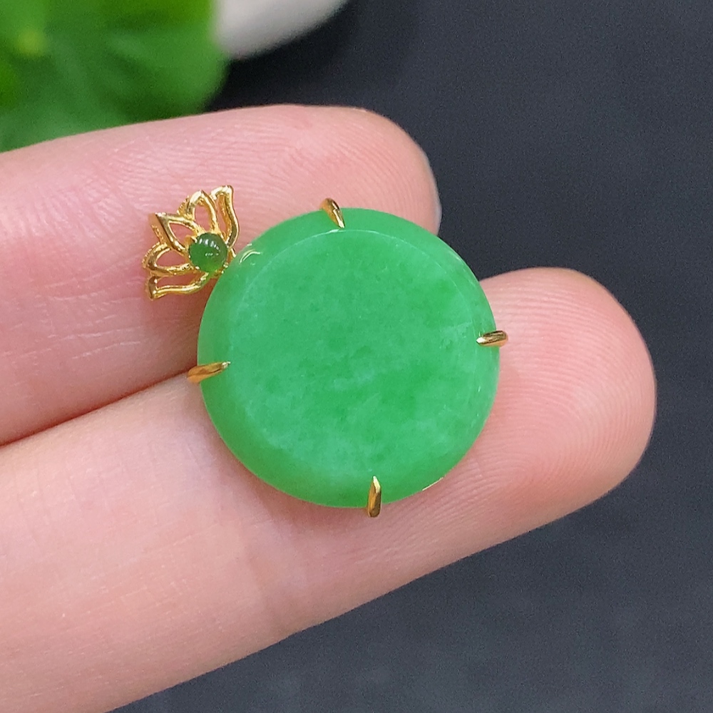 Jadeite Plain Pendant Pendant with 18K Gold, Total Weight Approx. 1.8g