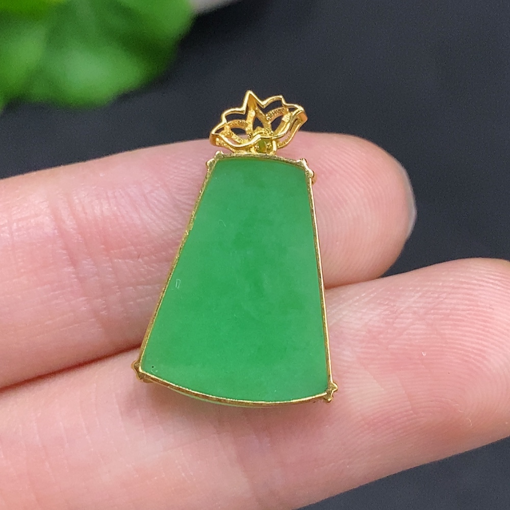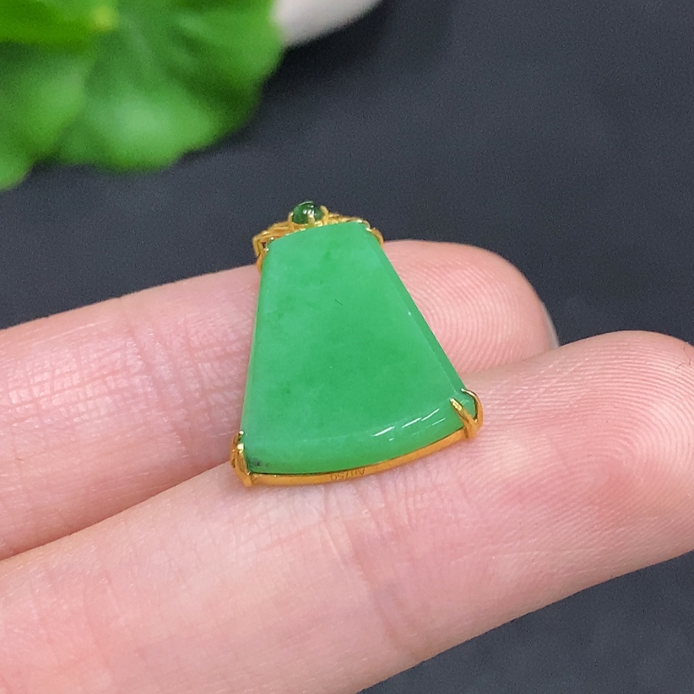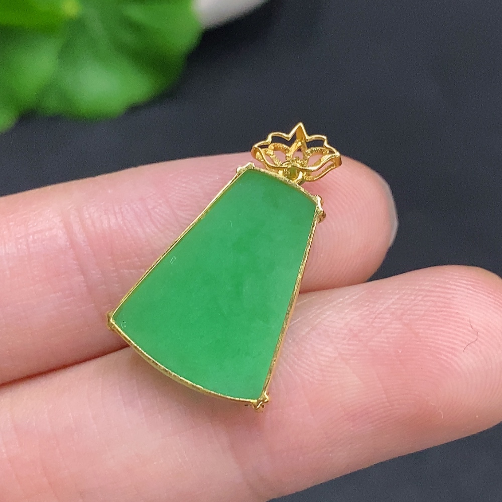 Jadeite Plain Pendant Pendant with 18K Gold, Total Weight Approx. 1.8g