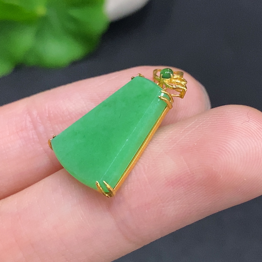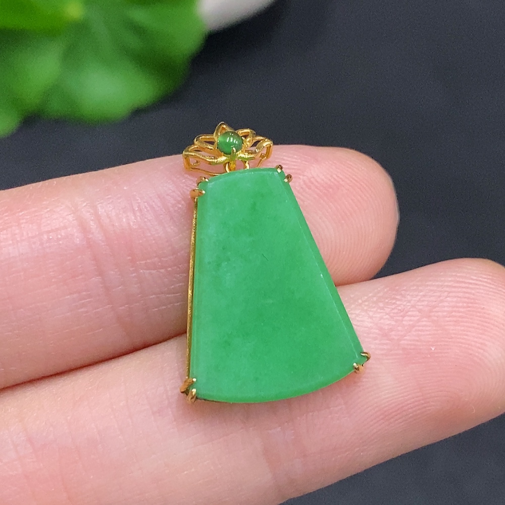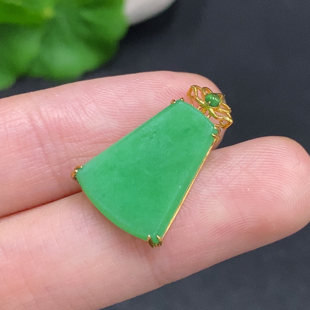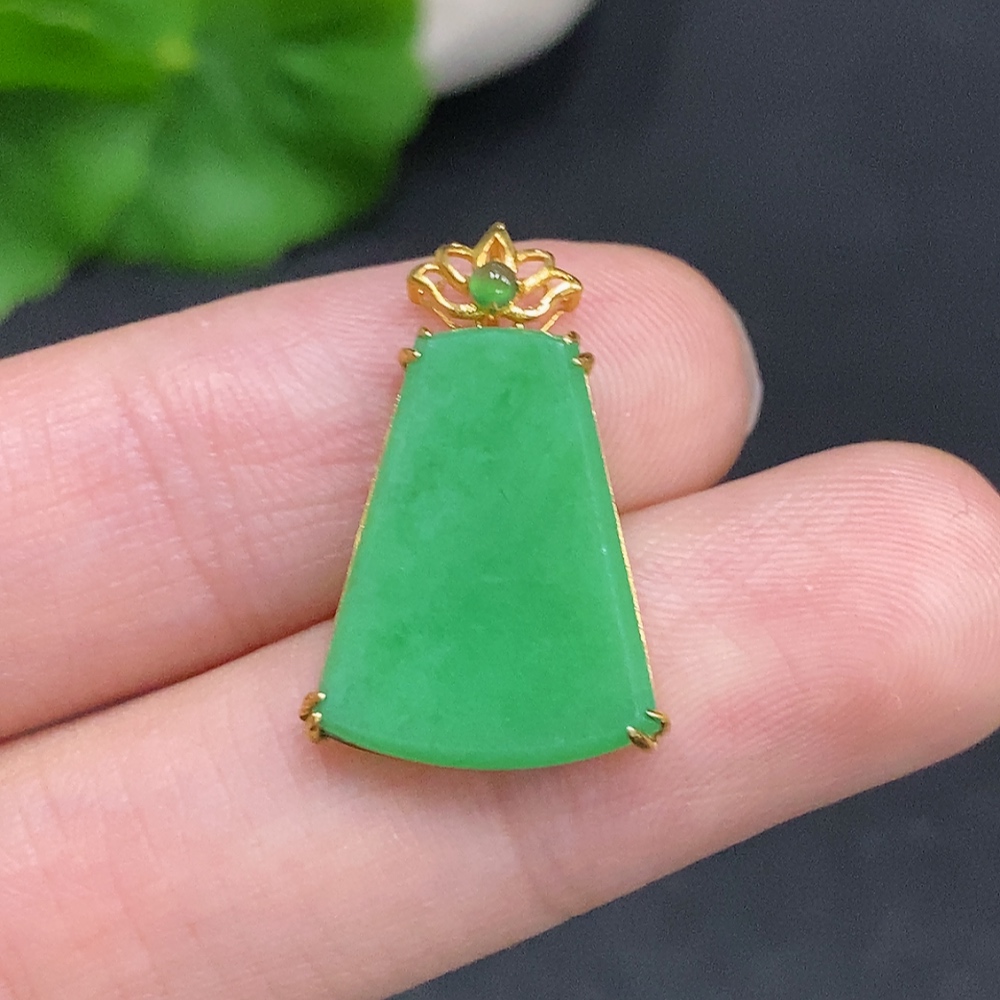 Jadeite Plain Pendant Pendant with 18K Gold, Total Weight Approx. 1.8g