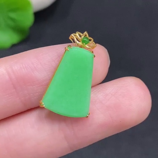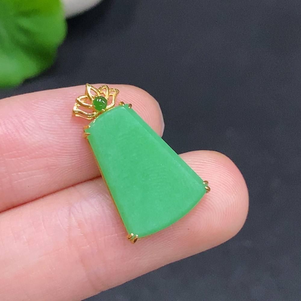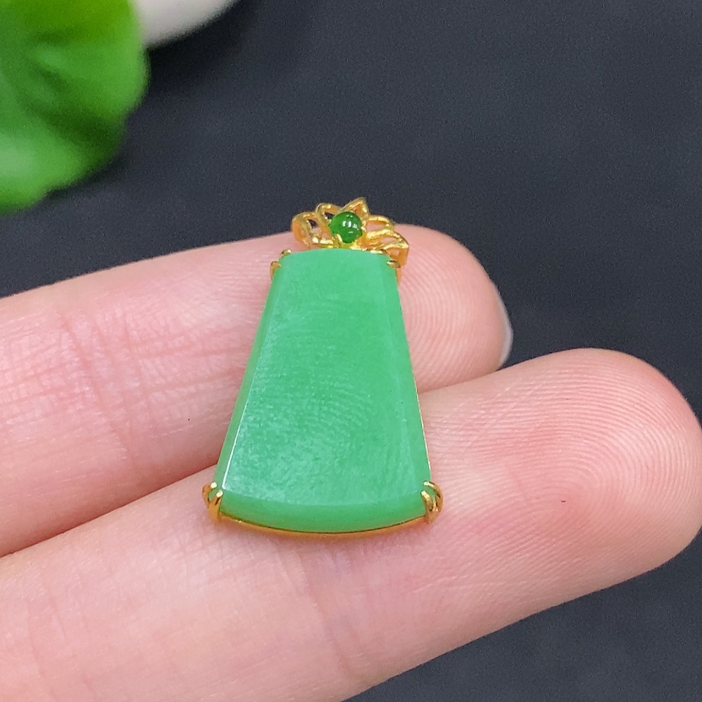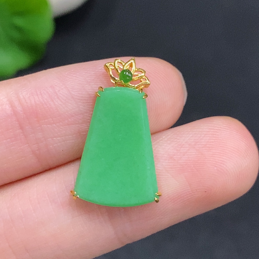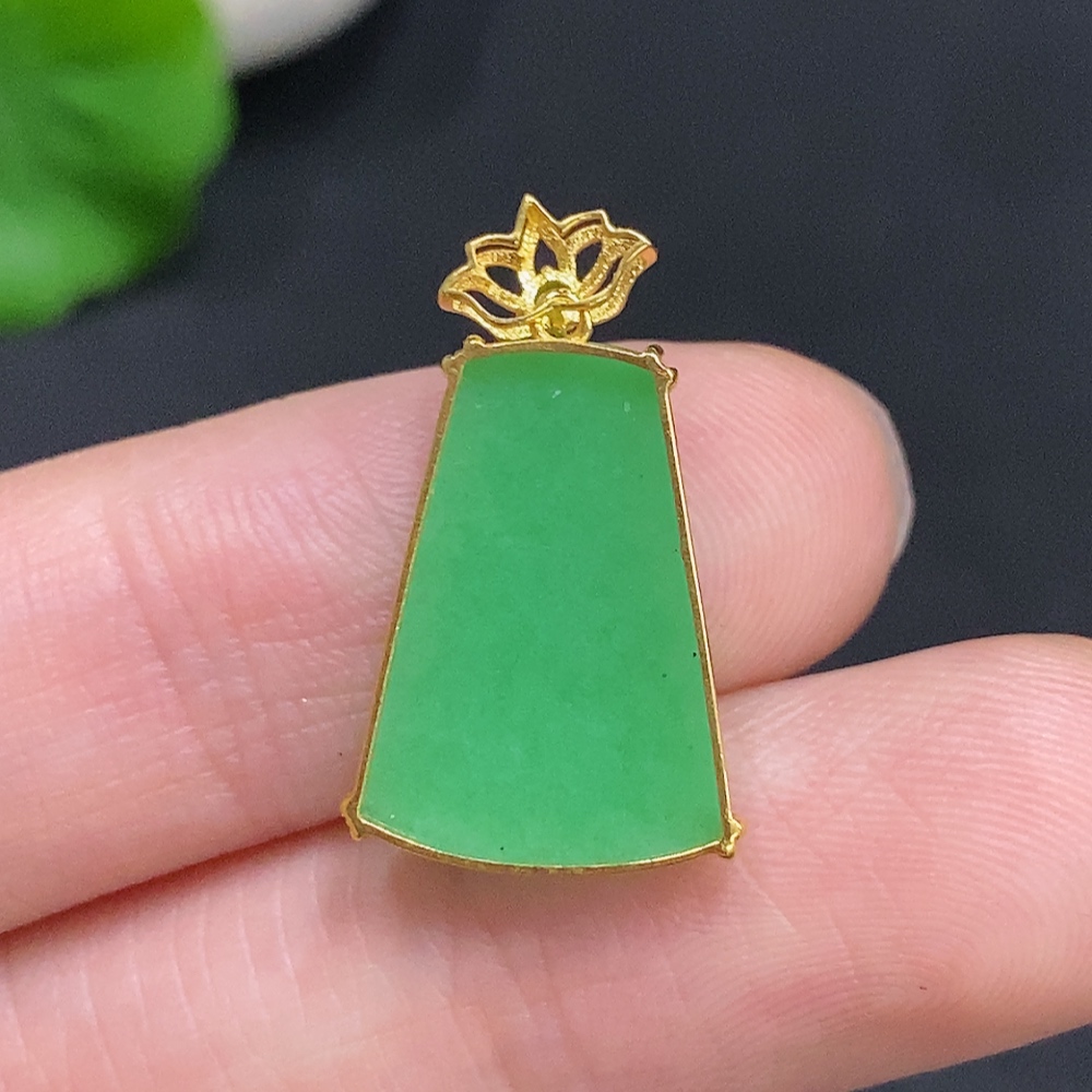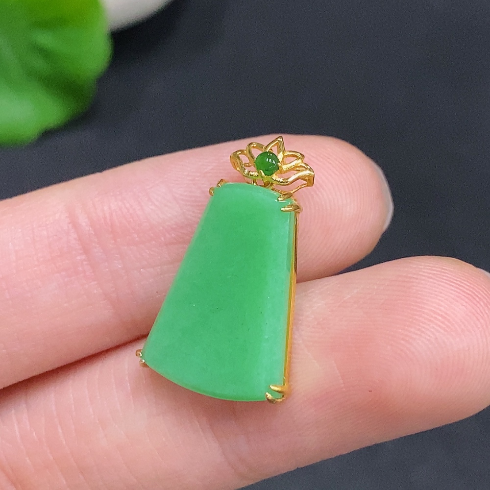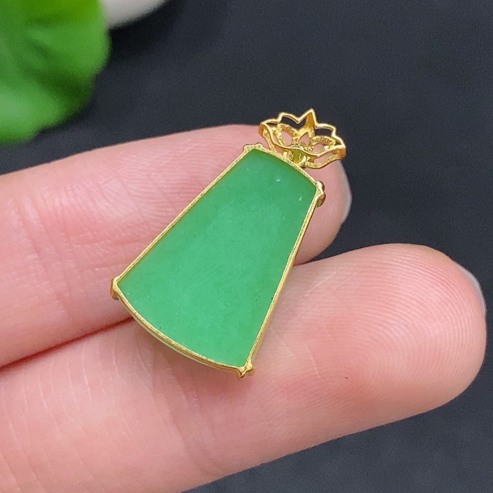 Jadeite Plain Pendant Pendant with 18K Gold, Total Weight Approx. 1.7g