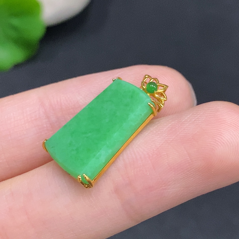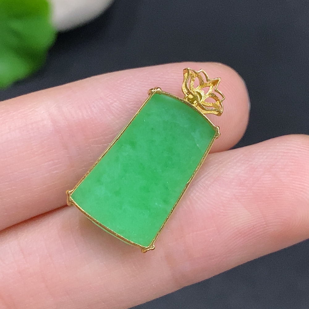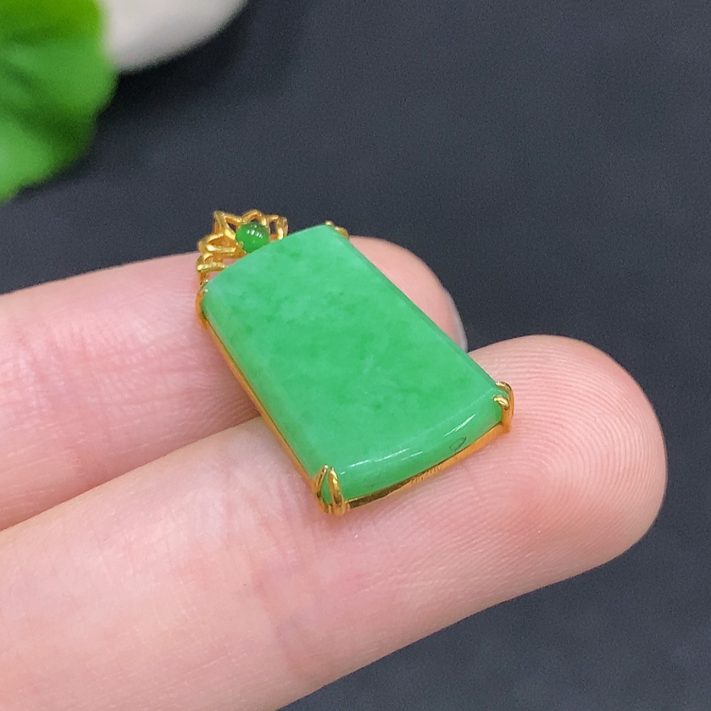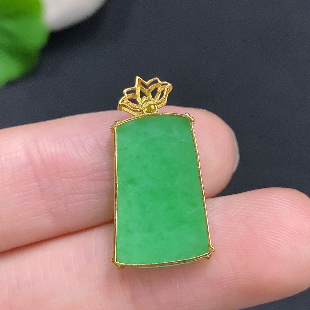 Jadeite Plain Pendant Pendant with 18K Gold, Total Weight Approx. 1.9g