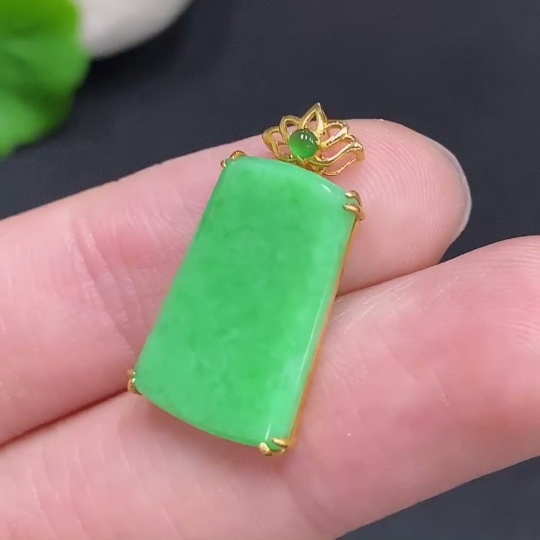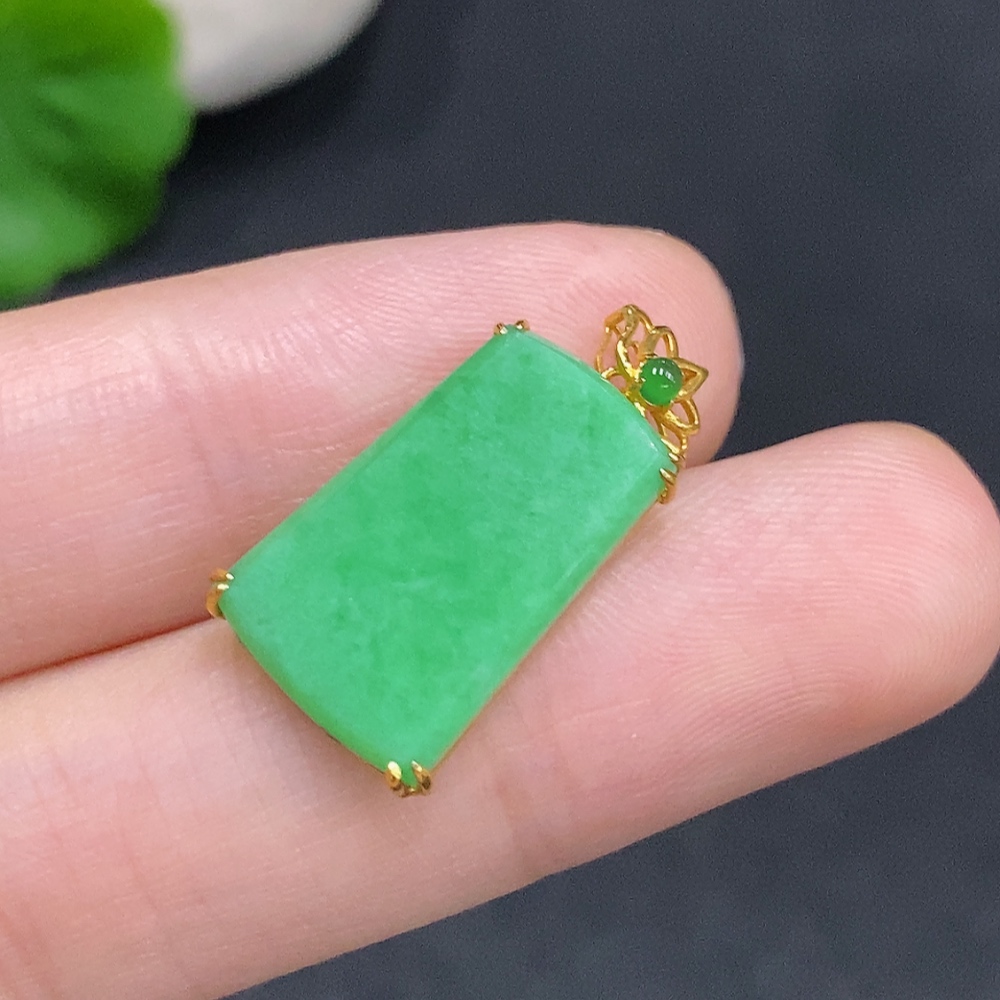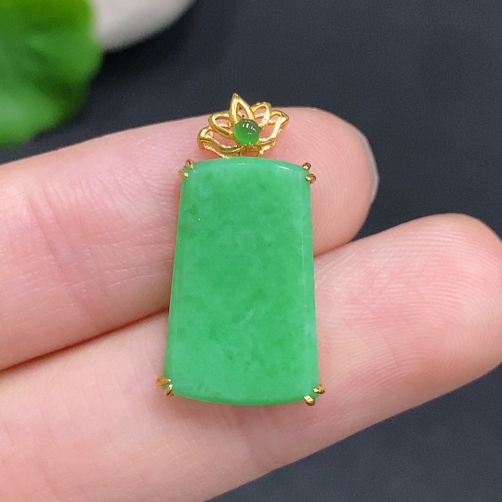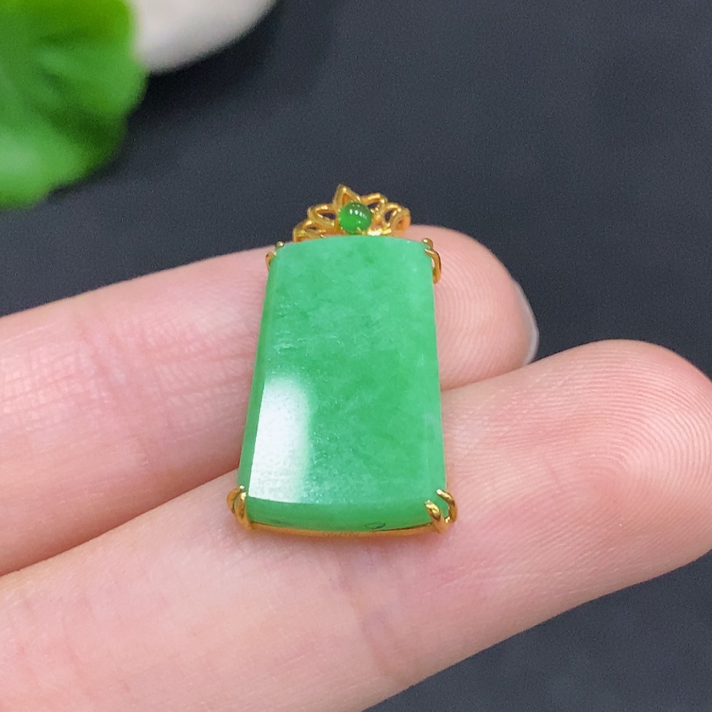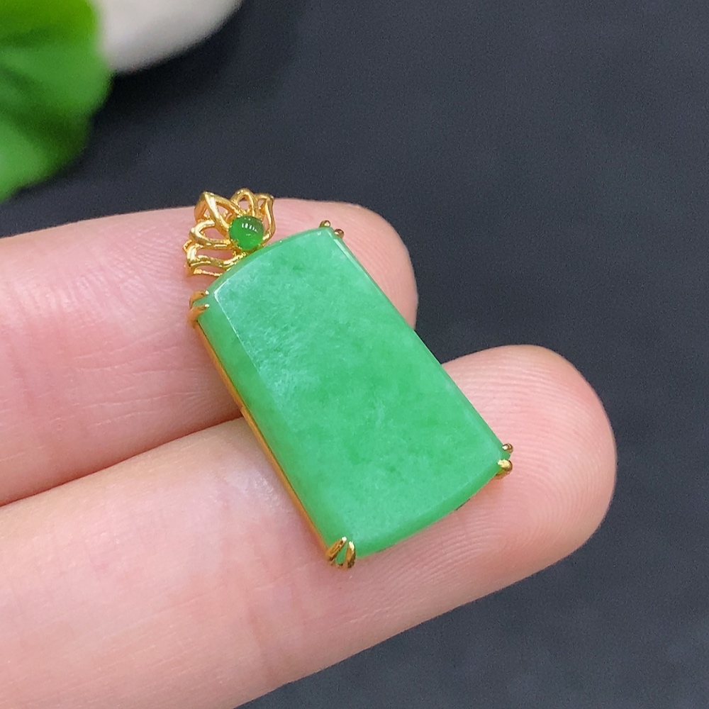 Jadeite Plain Pendant Pendant with 18K Gold, Total Weight Approx. 1.9g
