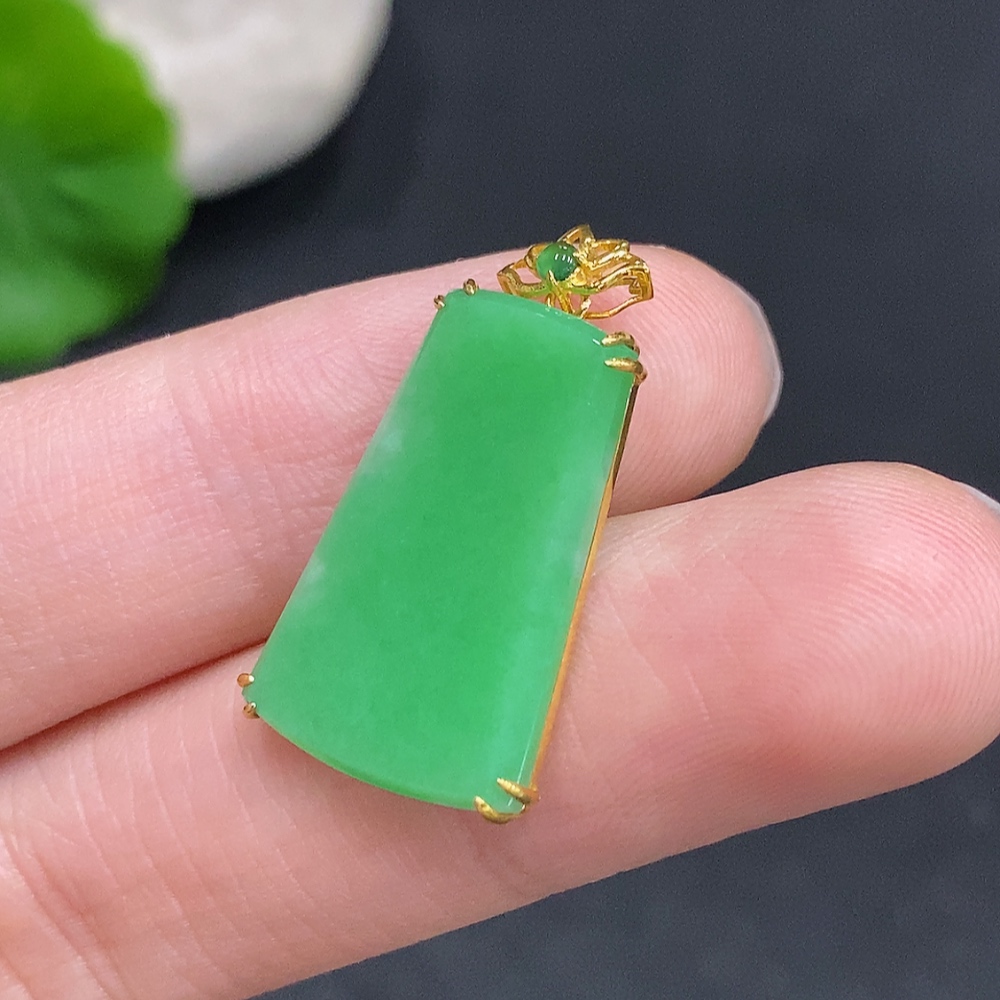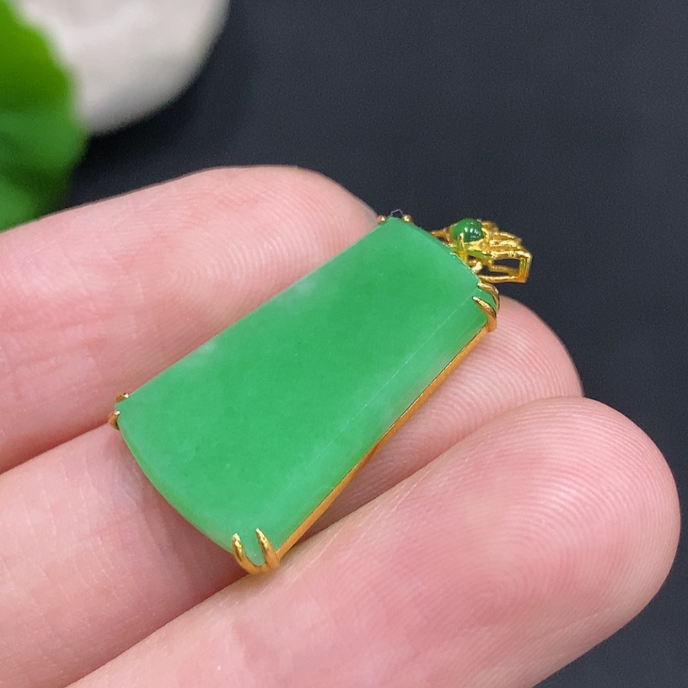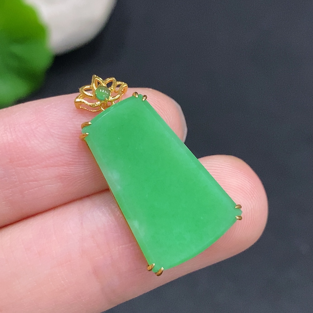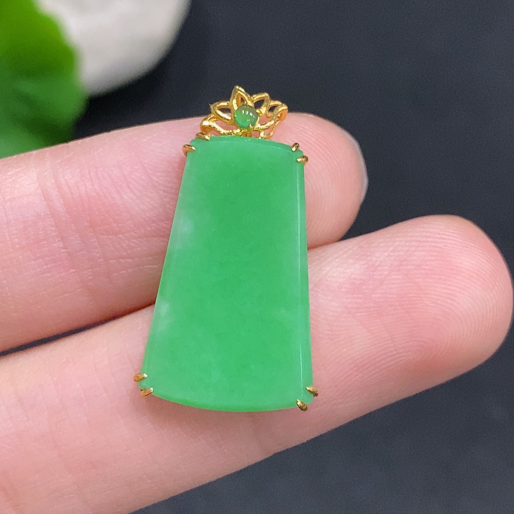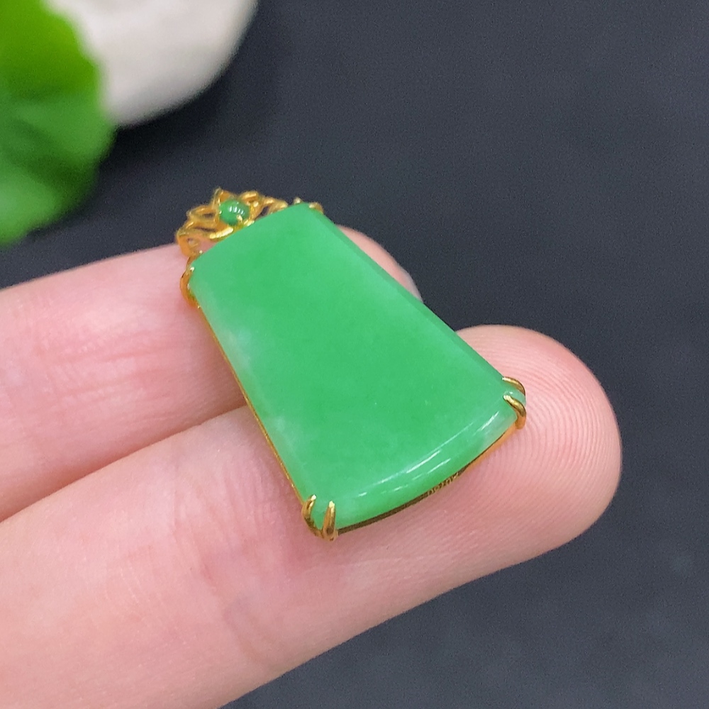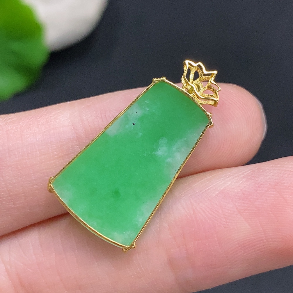 Jadeite Plain Pendant Pendant in 18K Gold Total Weight Approx. 2.2g