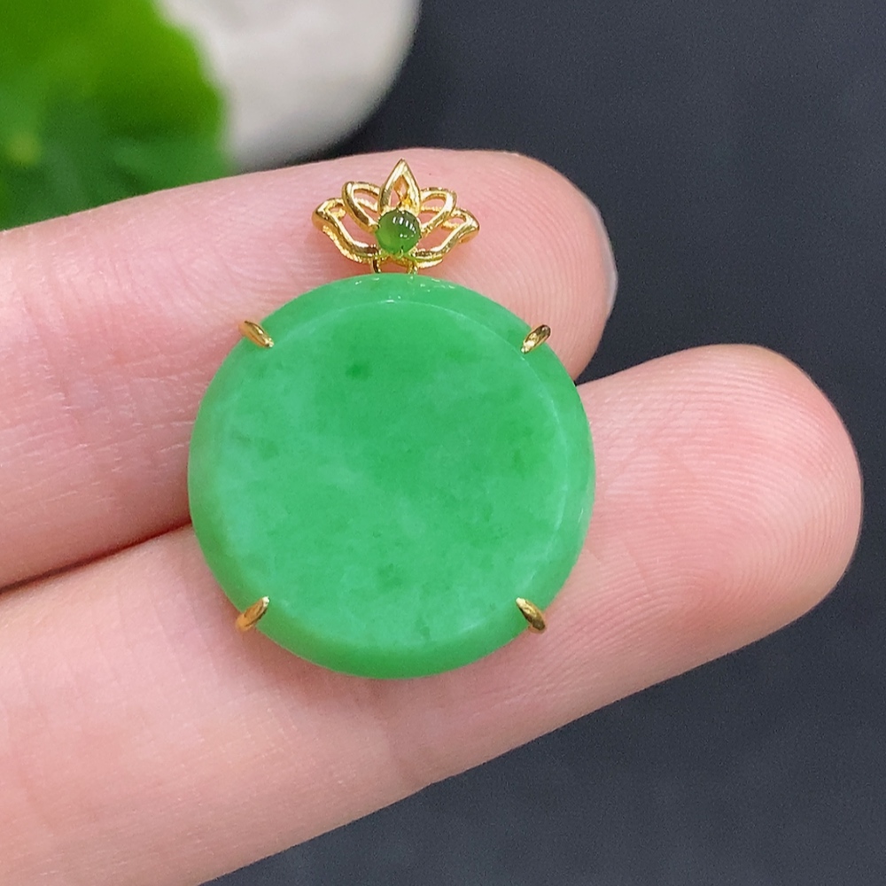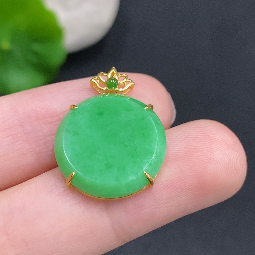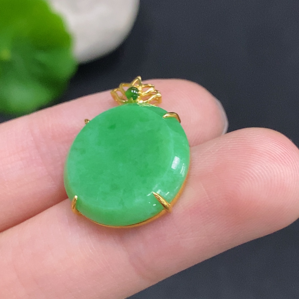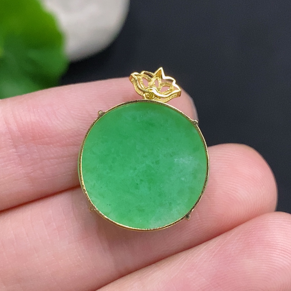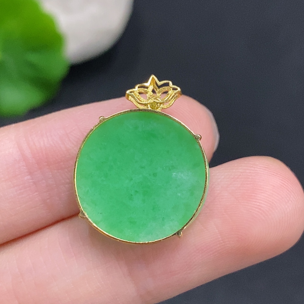 Jadeite Plain Pendant Pendant with 18K Gold Setting Total Weight Approx. 2.4g