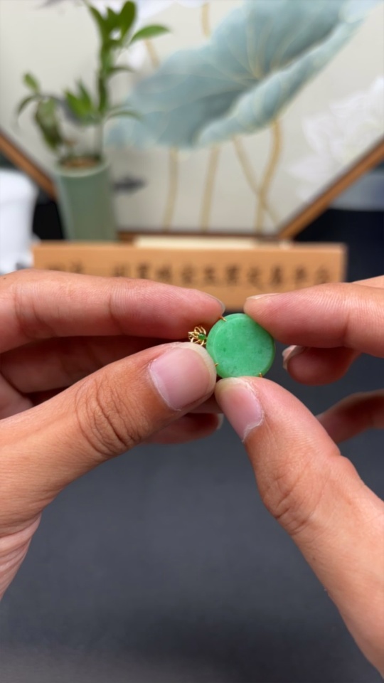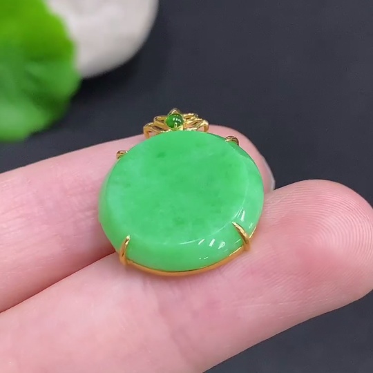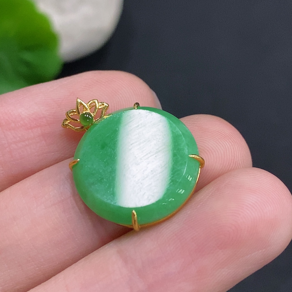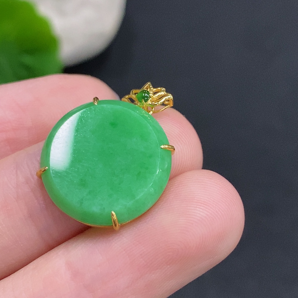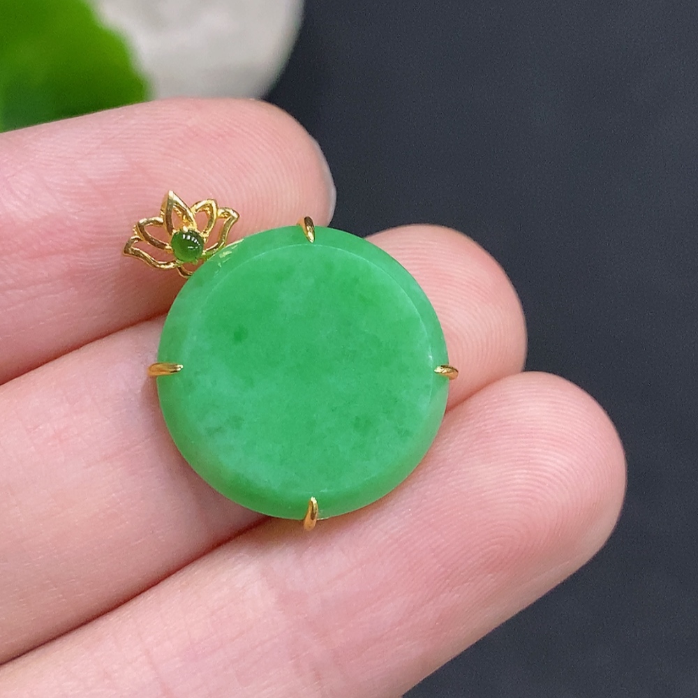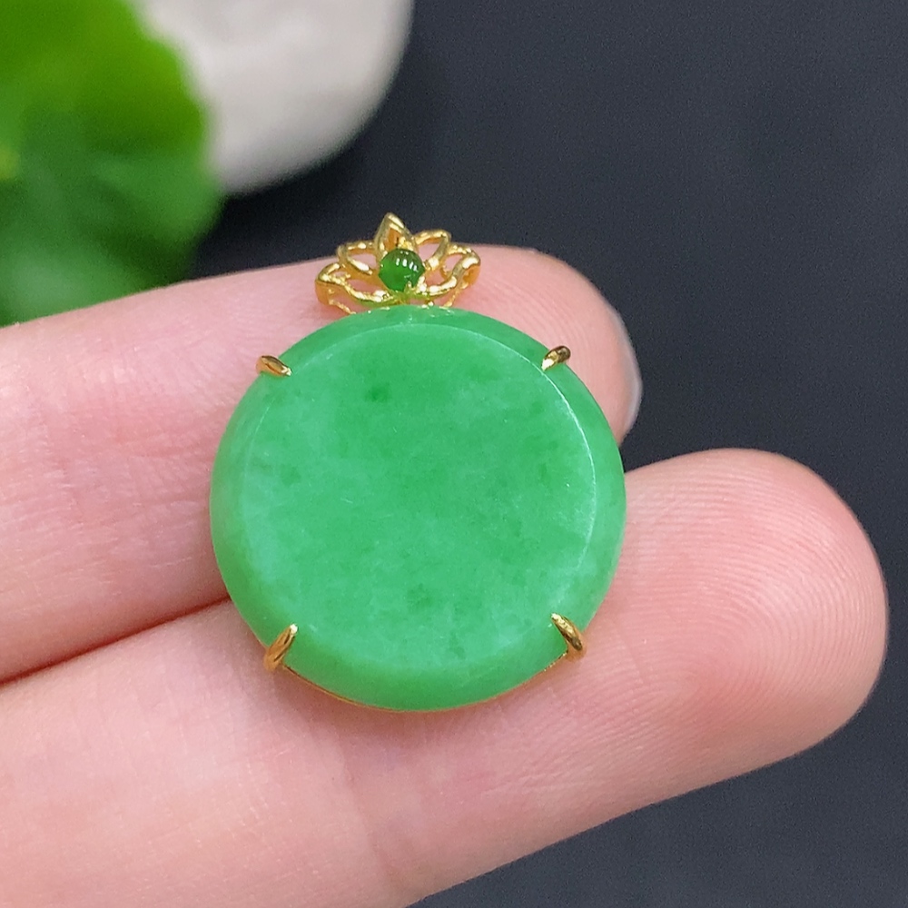 Jadeite Plain Pendant Pendant with 18K Gold Setting Total Weight Approx. 2.4g