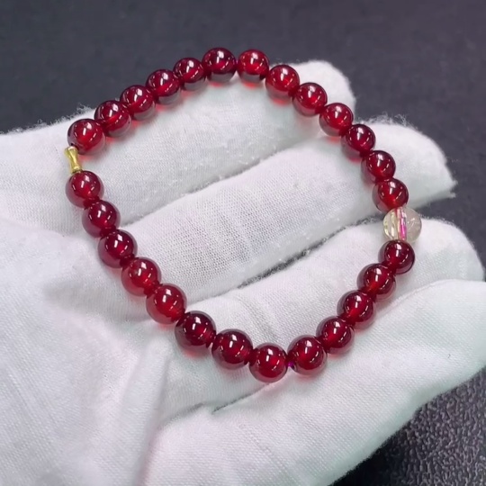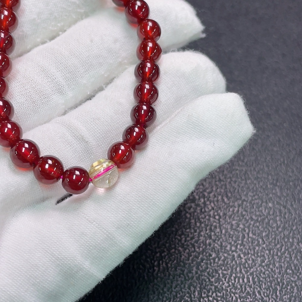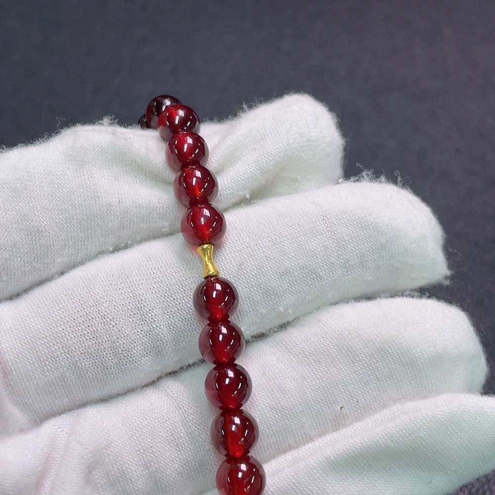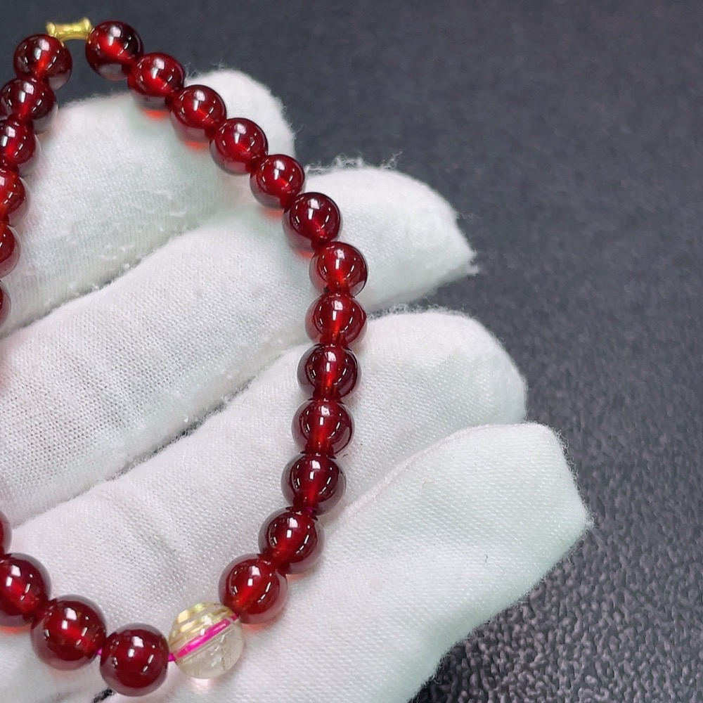 Garnet Bracelet with Crystal, No Stamp, Only Surface Au75%, Total Weight Approx.13.9g, Size Approx.6.5mm