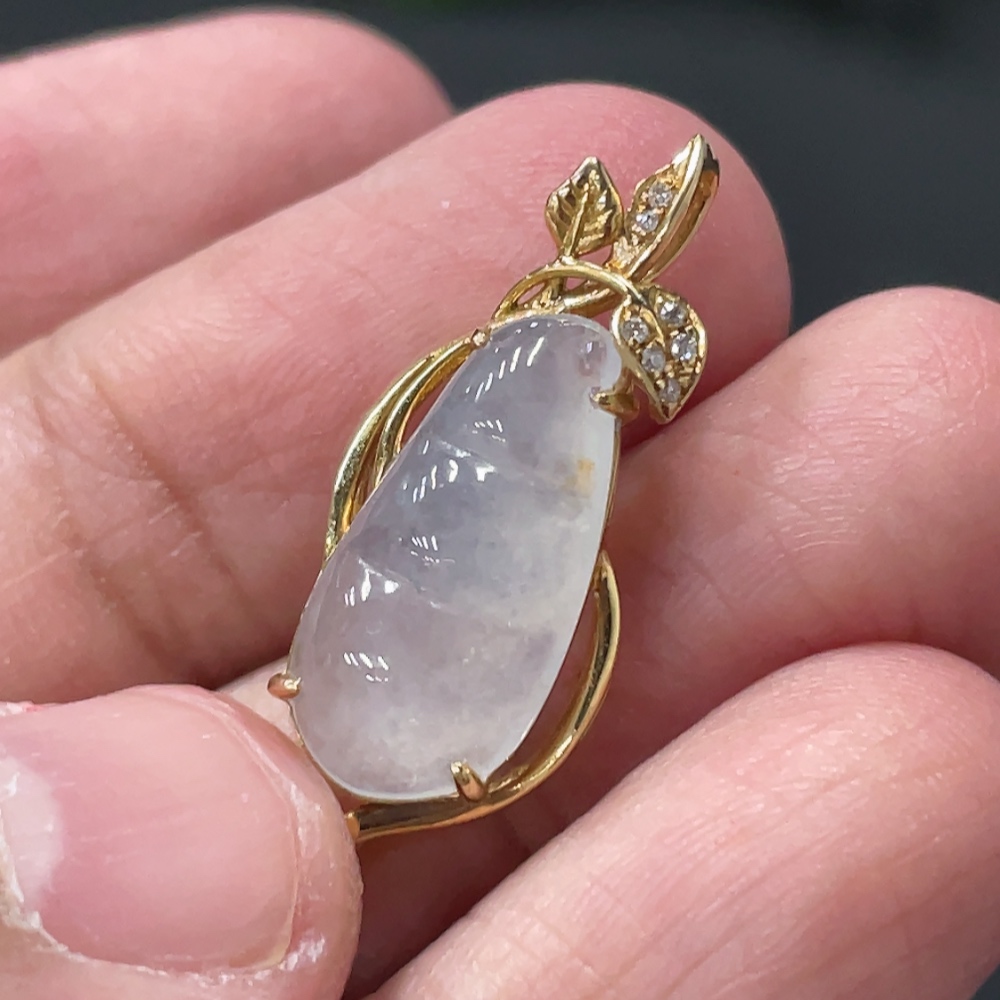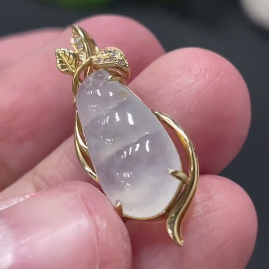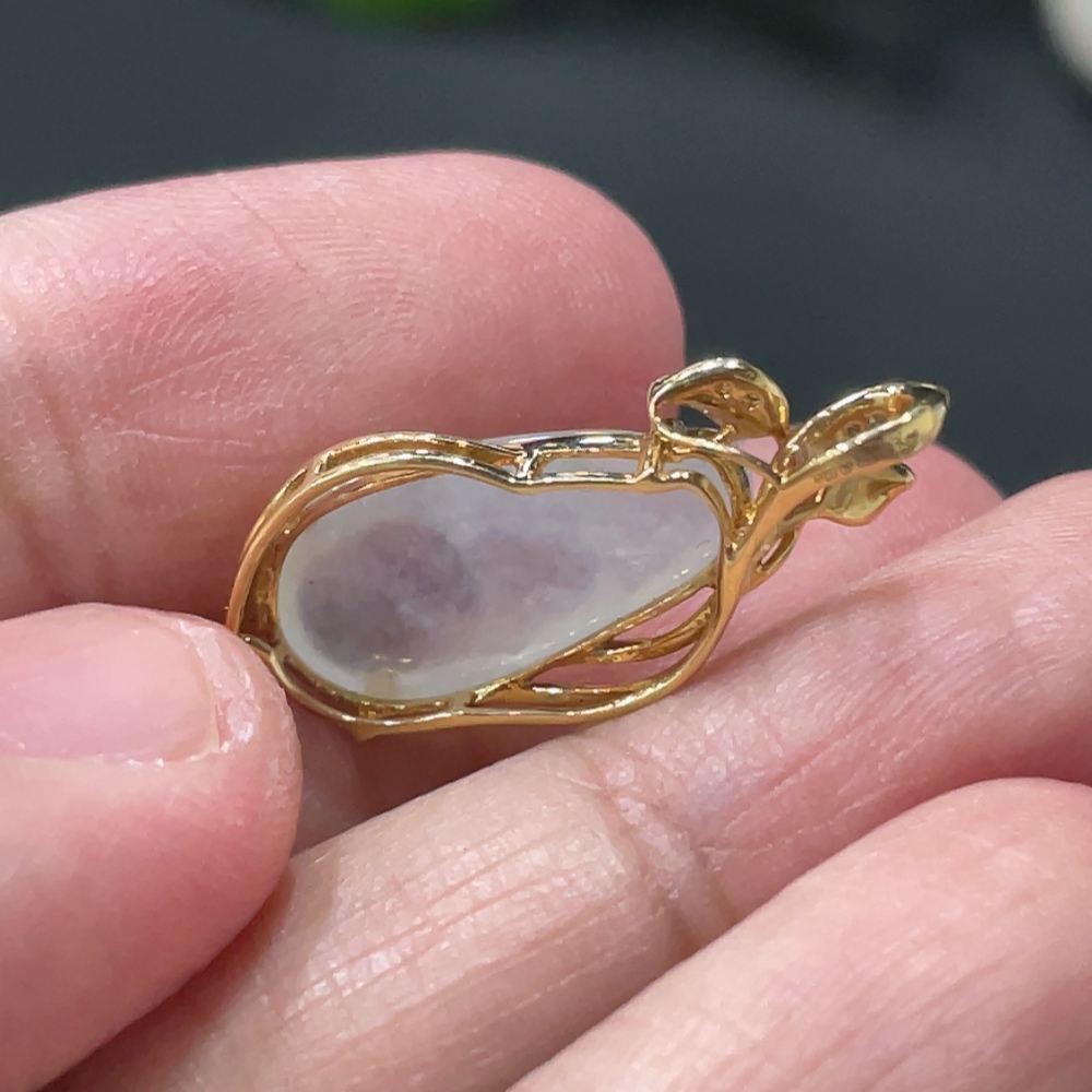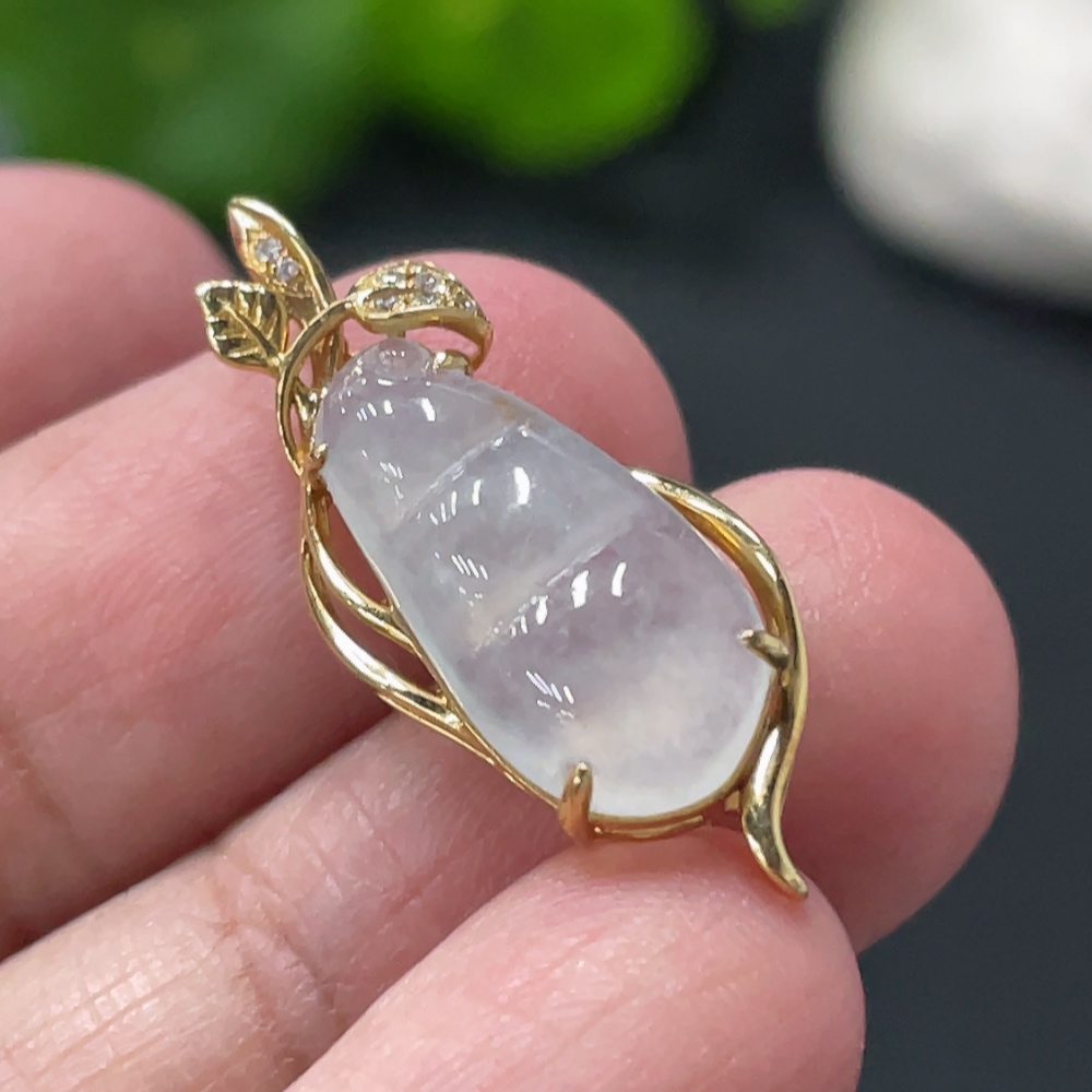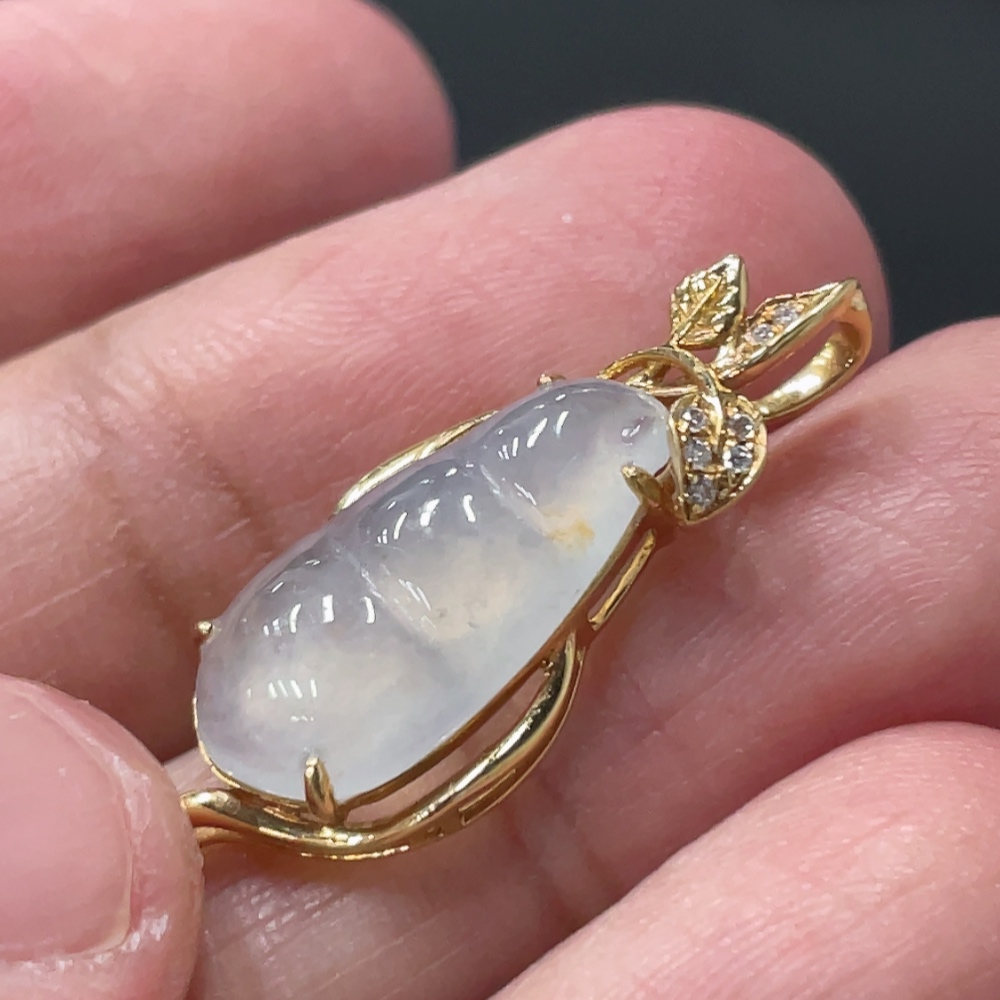 Jadeite Lucky Bean Pendant with 18K Gold Setting, Total Weight Approx. 1.8g