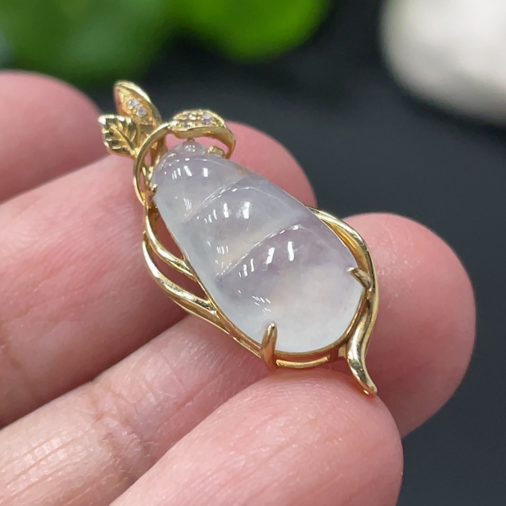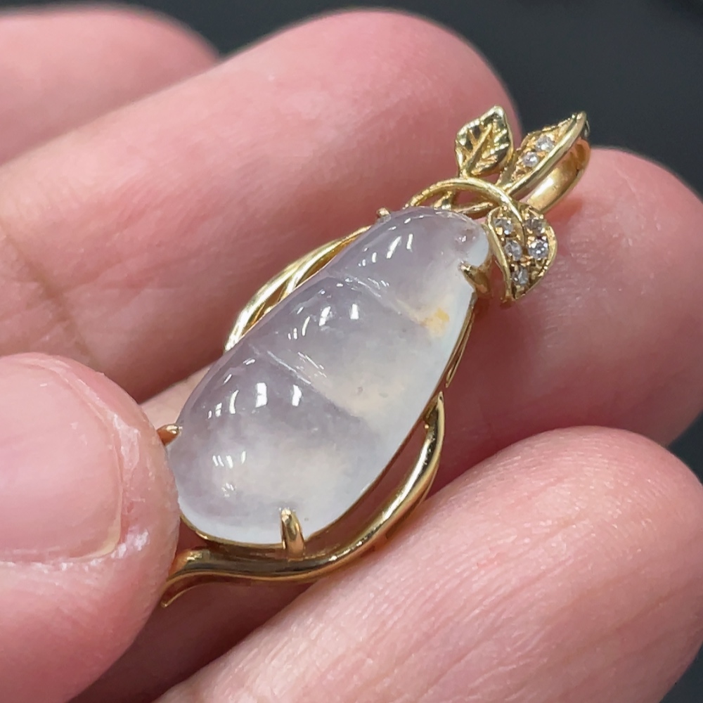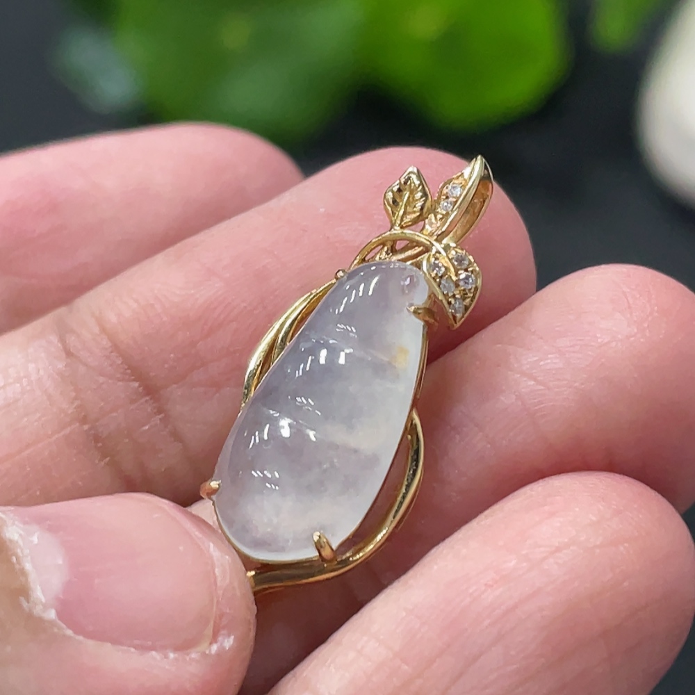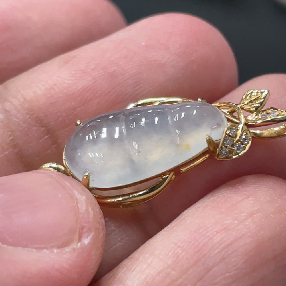 Jadeite Lucky Bean Pendant with 18K Gold Setting, Total Weight Approx. 1.8g