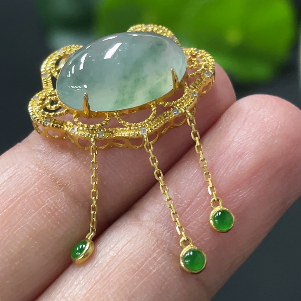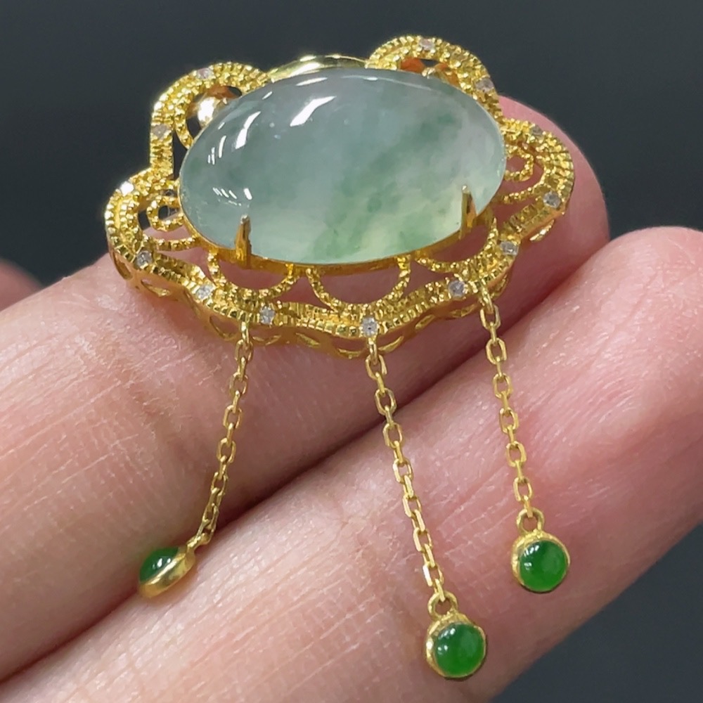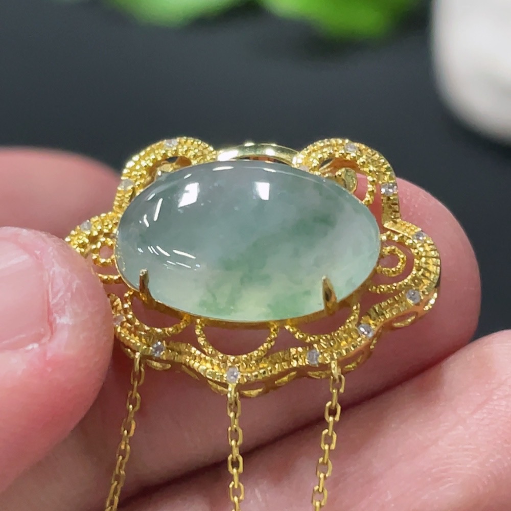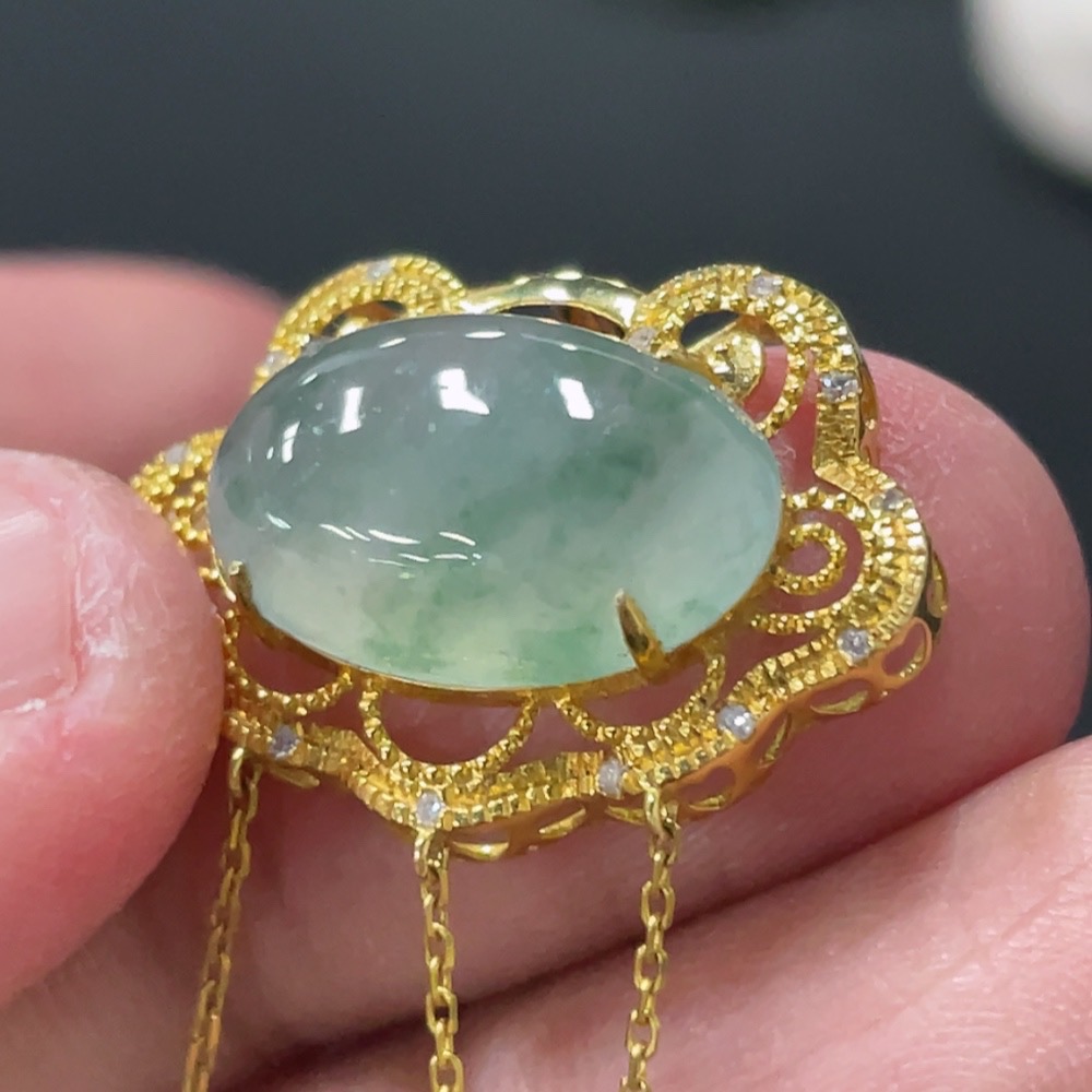 Jadeite Cabochon Pendant with 18K Gold Setting, Total Weight Approx. 2.64g