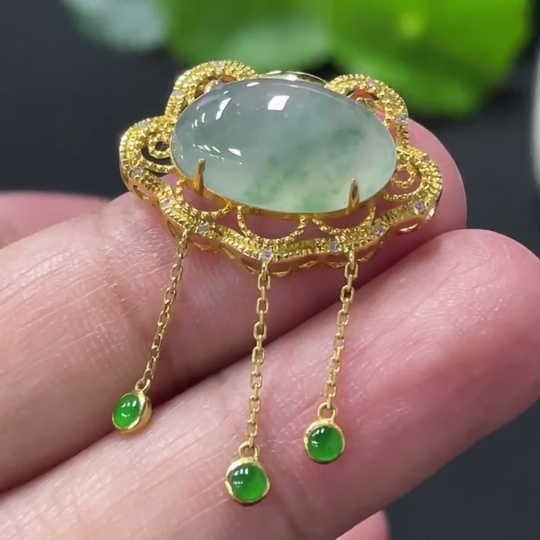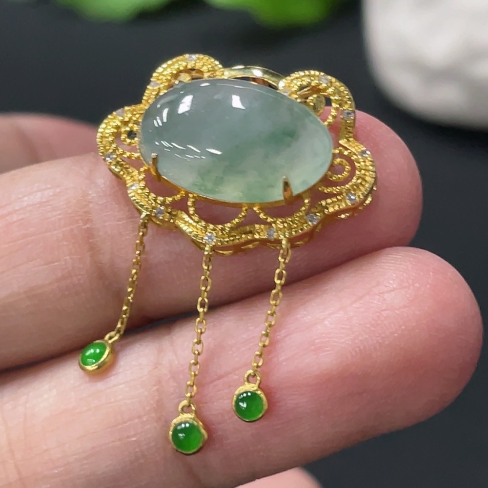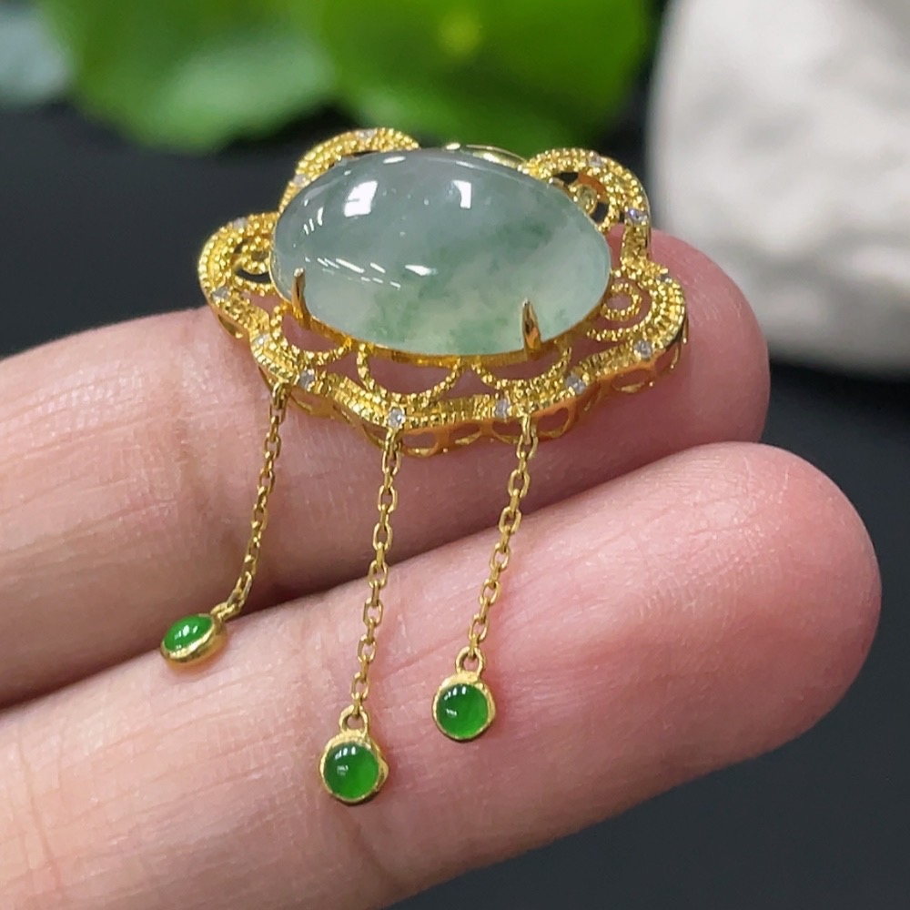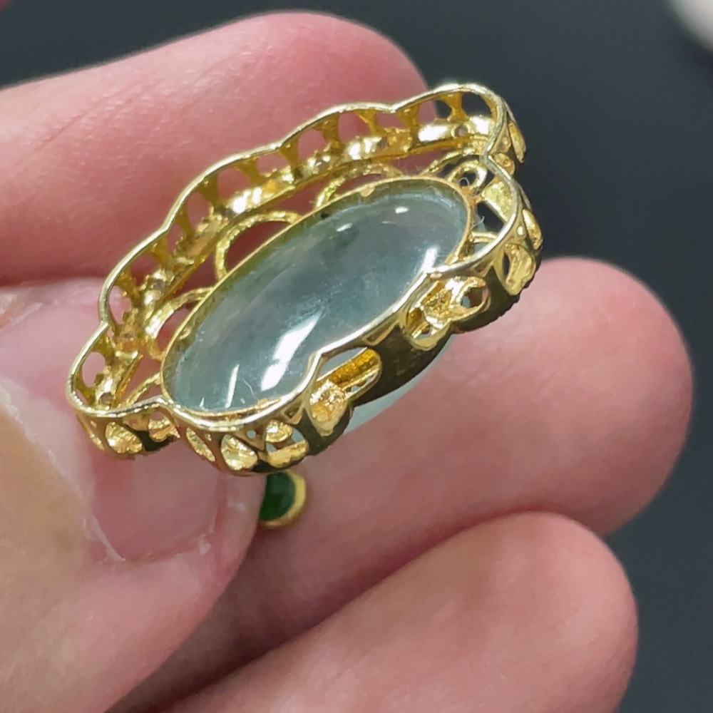 Jadeite Cabochon Pendant with 18K Gold Setting, Total Weight Approx. 2.64g