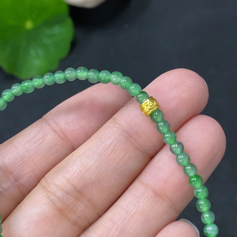 Jadeite Bracelet Approx. 3mm Beads Non-Gold Total Weight Approx. 3.5g