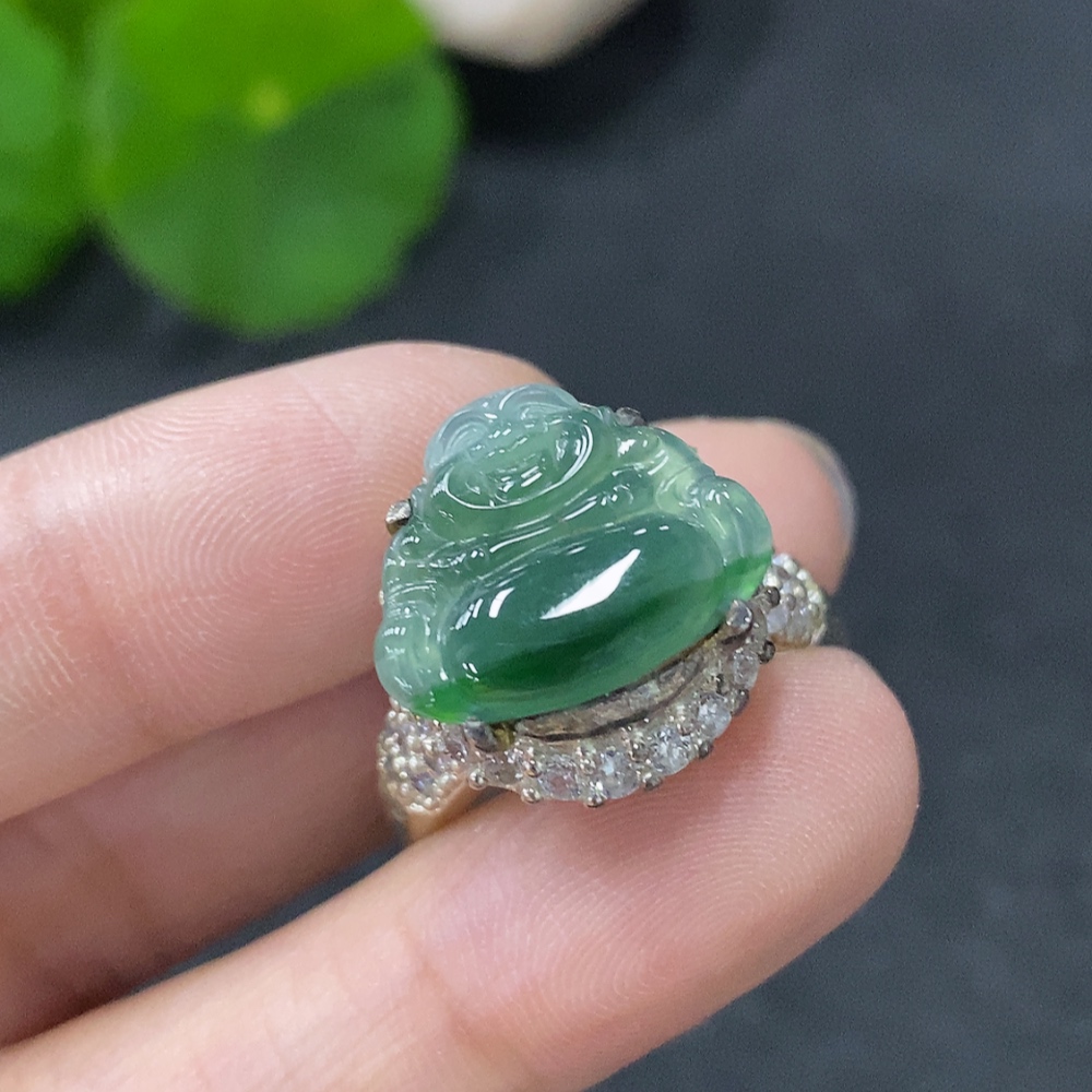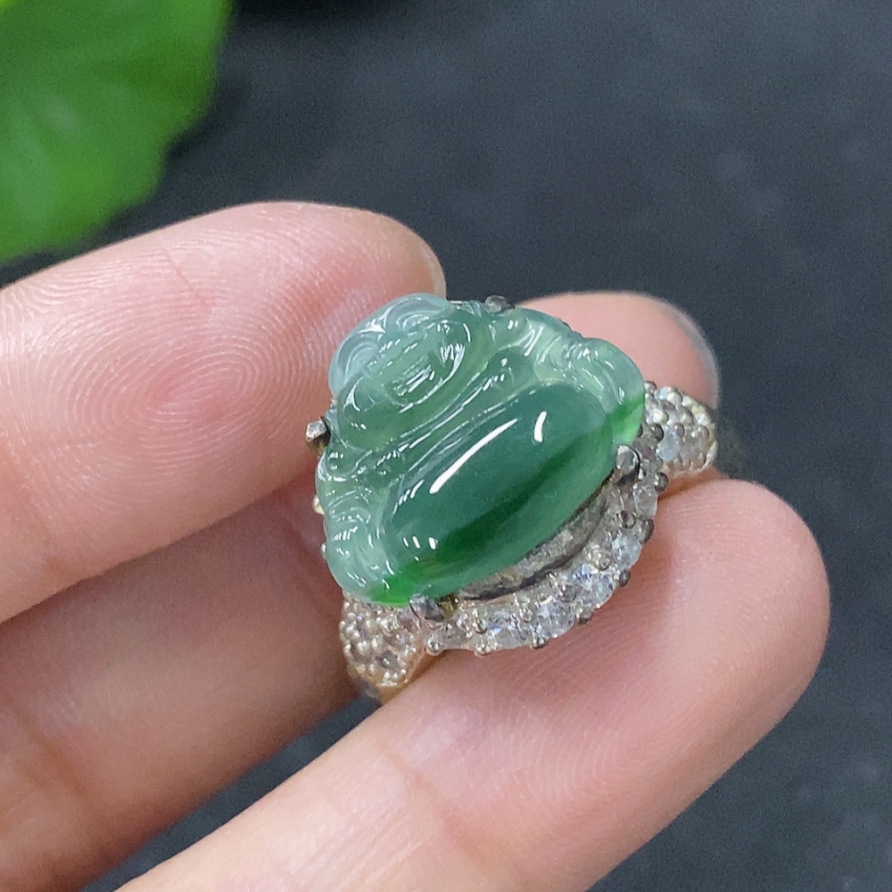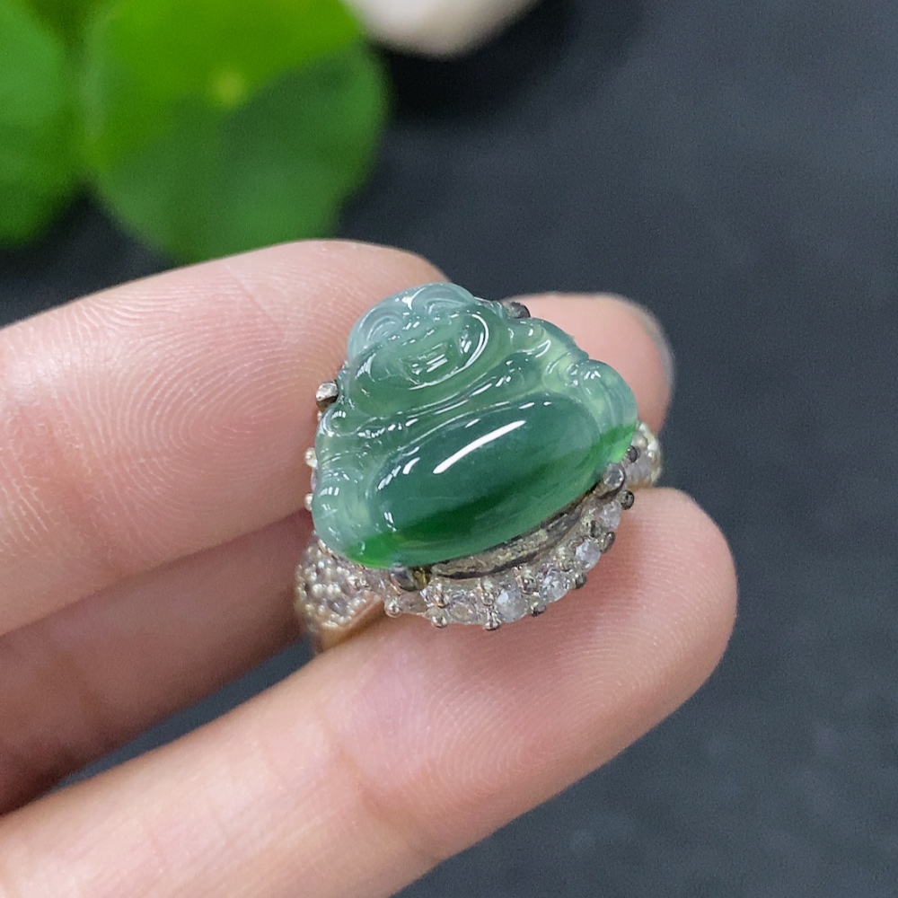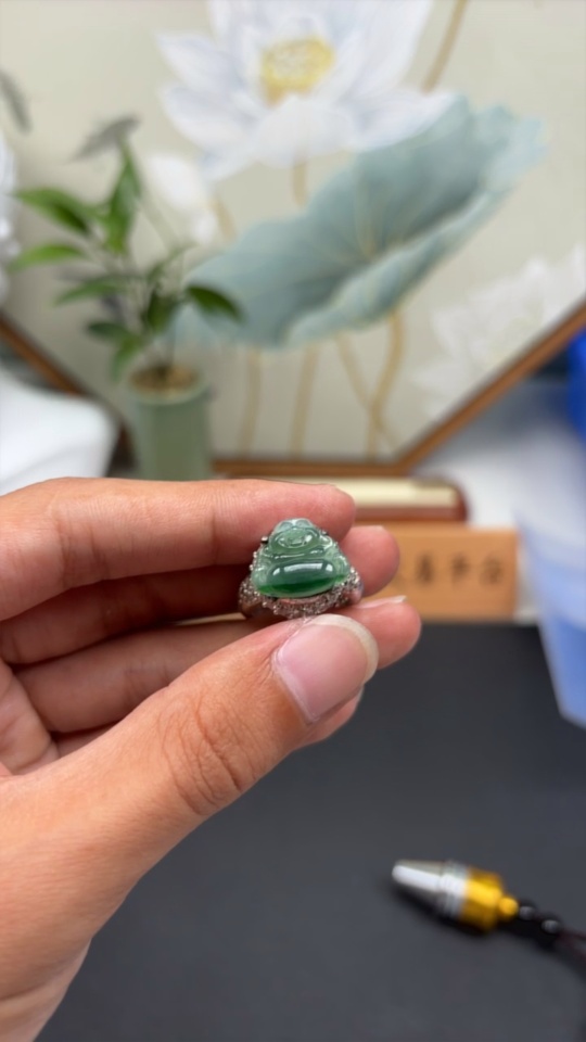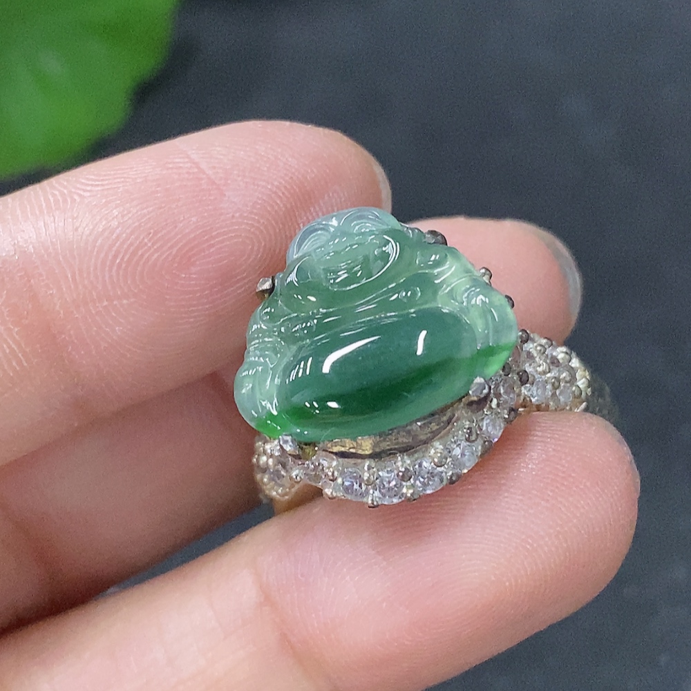 Jadeite Inlaid Buddha with Copper Mount, Total Weight Approx. 8g