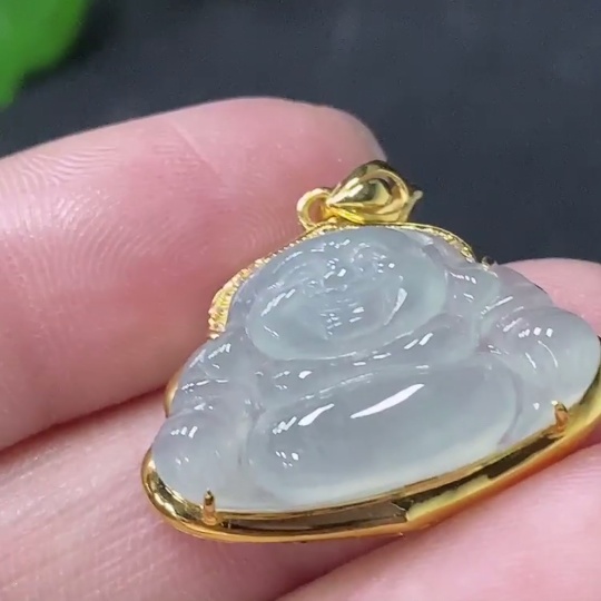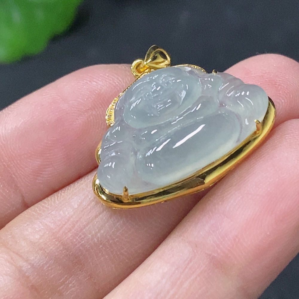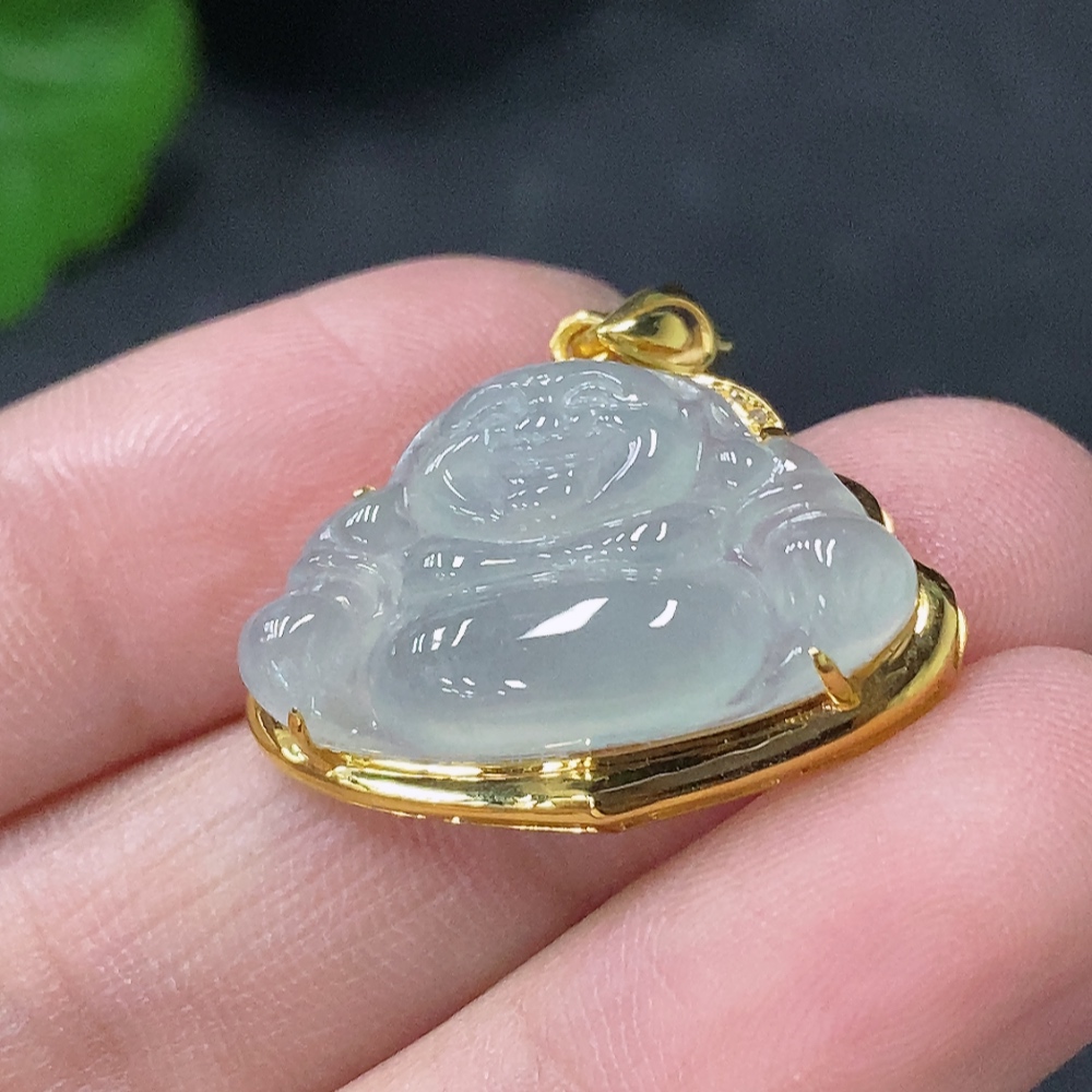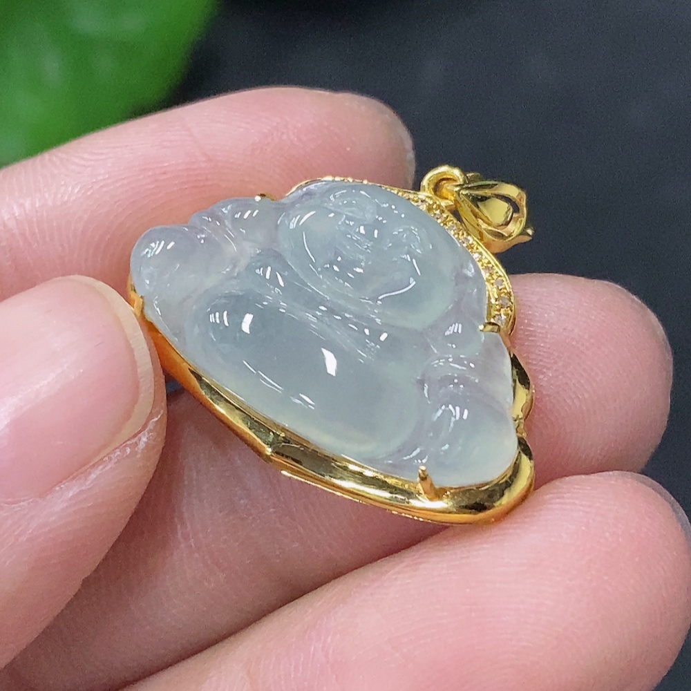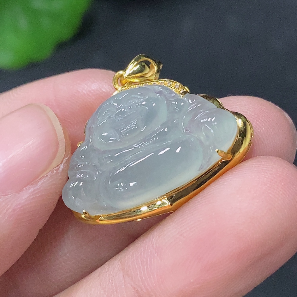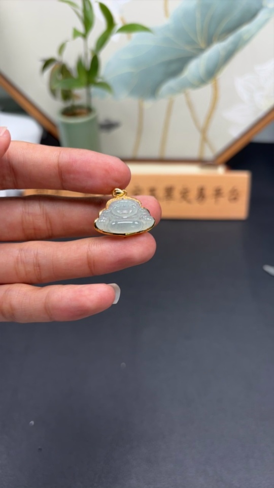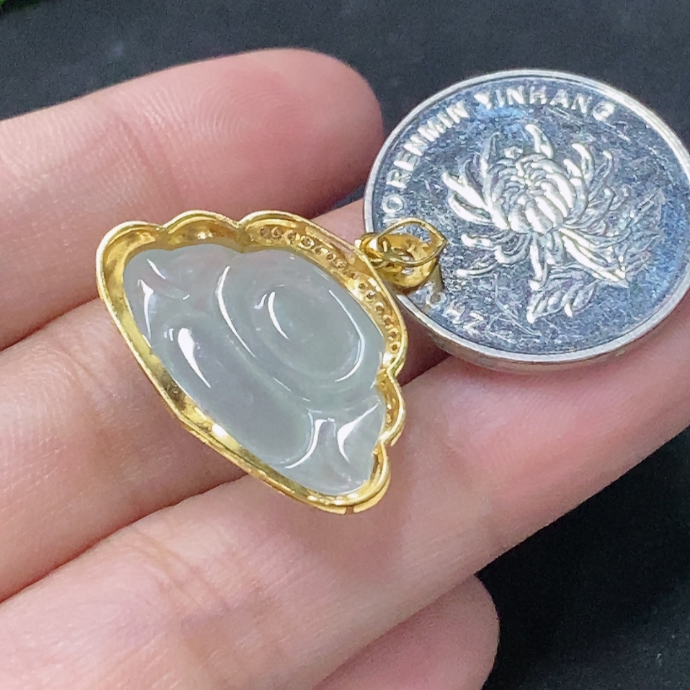 Jadeite Buddha Pendant with 18K Gold and Diamond Accents, Total Weight Approx. 2.8g