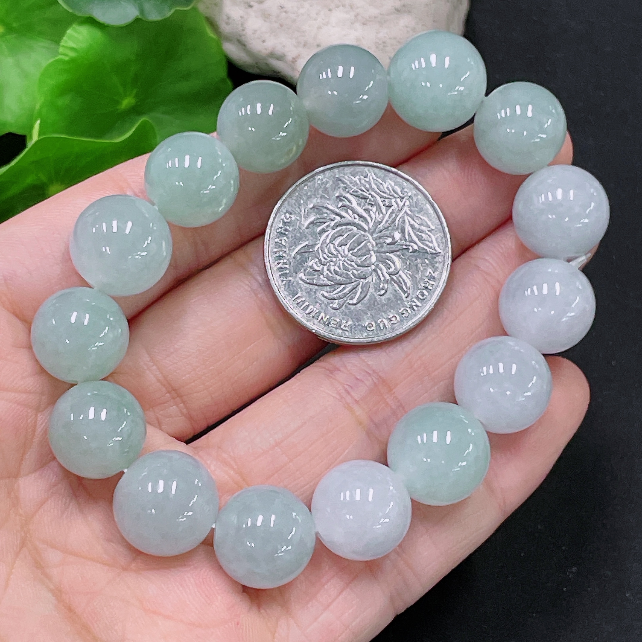 Jadeite Bracelet Approx. 12.6mm Beads Total Weight About 51.3g