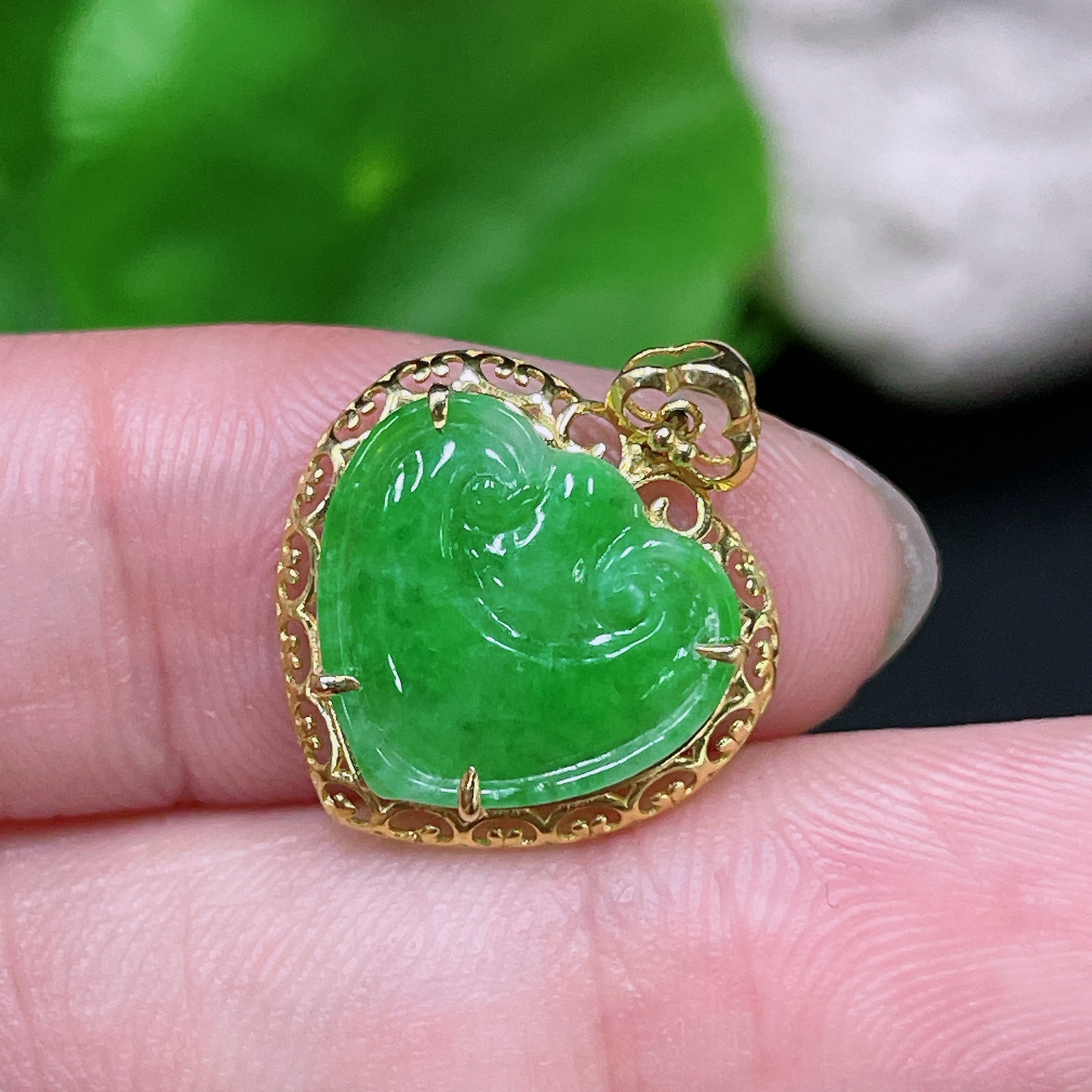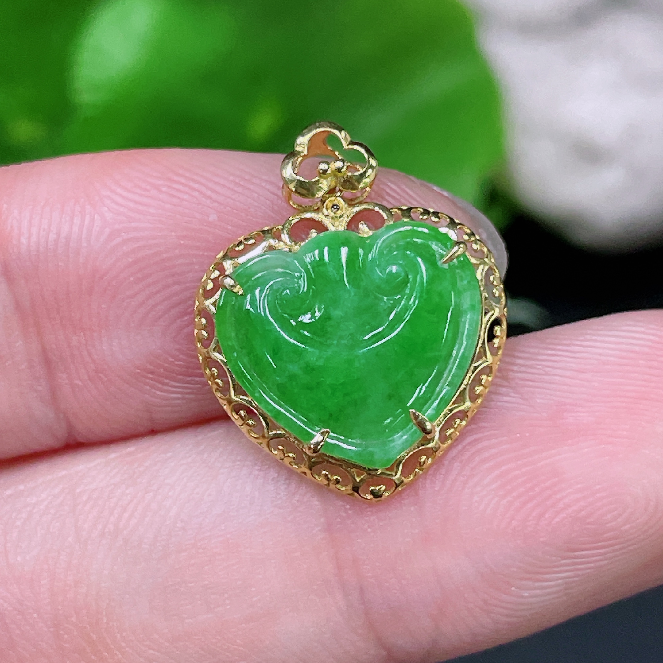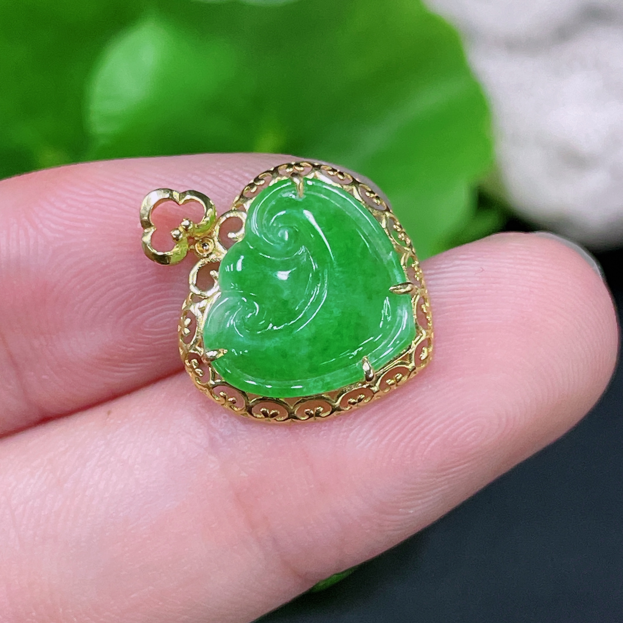 Jadeite Inlaid Ruyi Pendant 18k Total Weight Approx. 0.8g