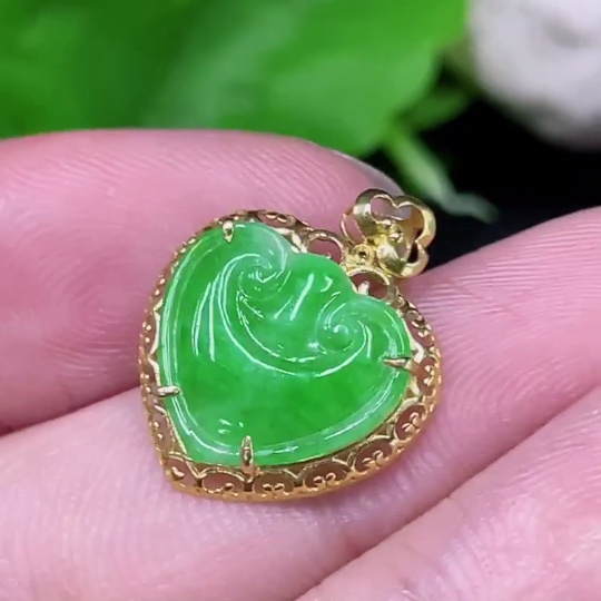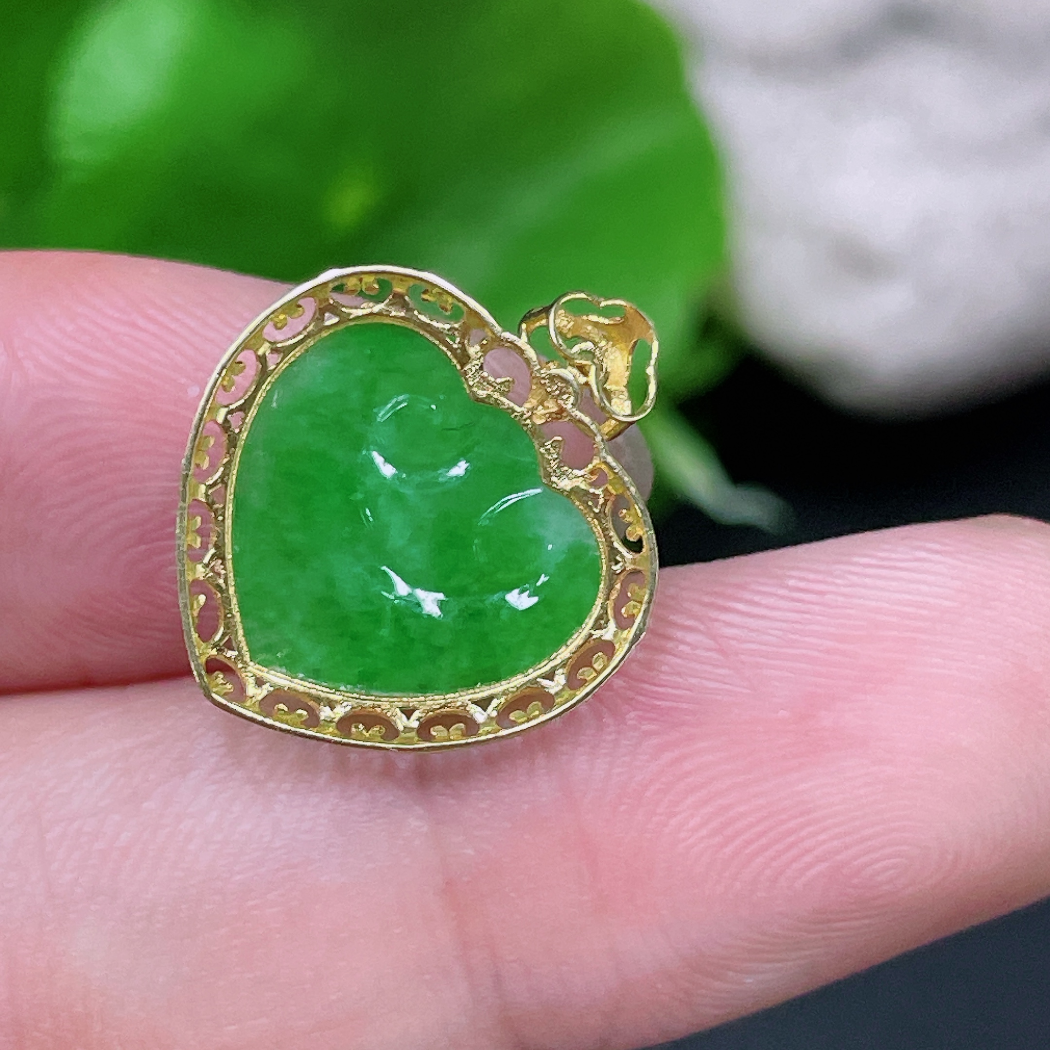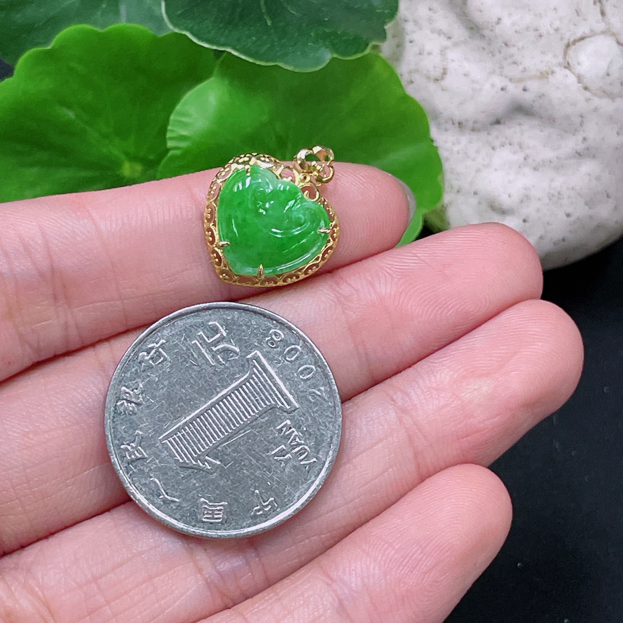 Jadeite Inlaid Ruyi Pendant 18k Total Weight Approx. 0.8g