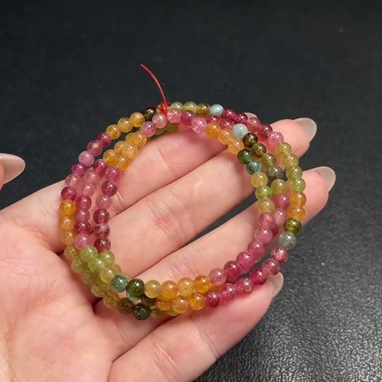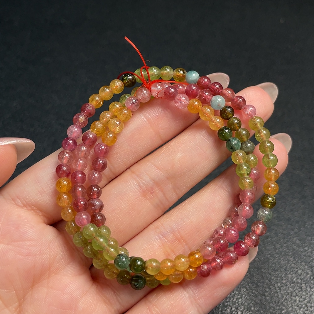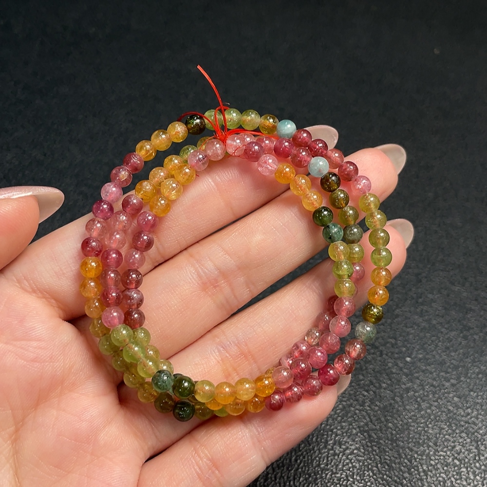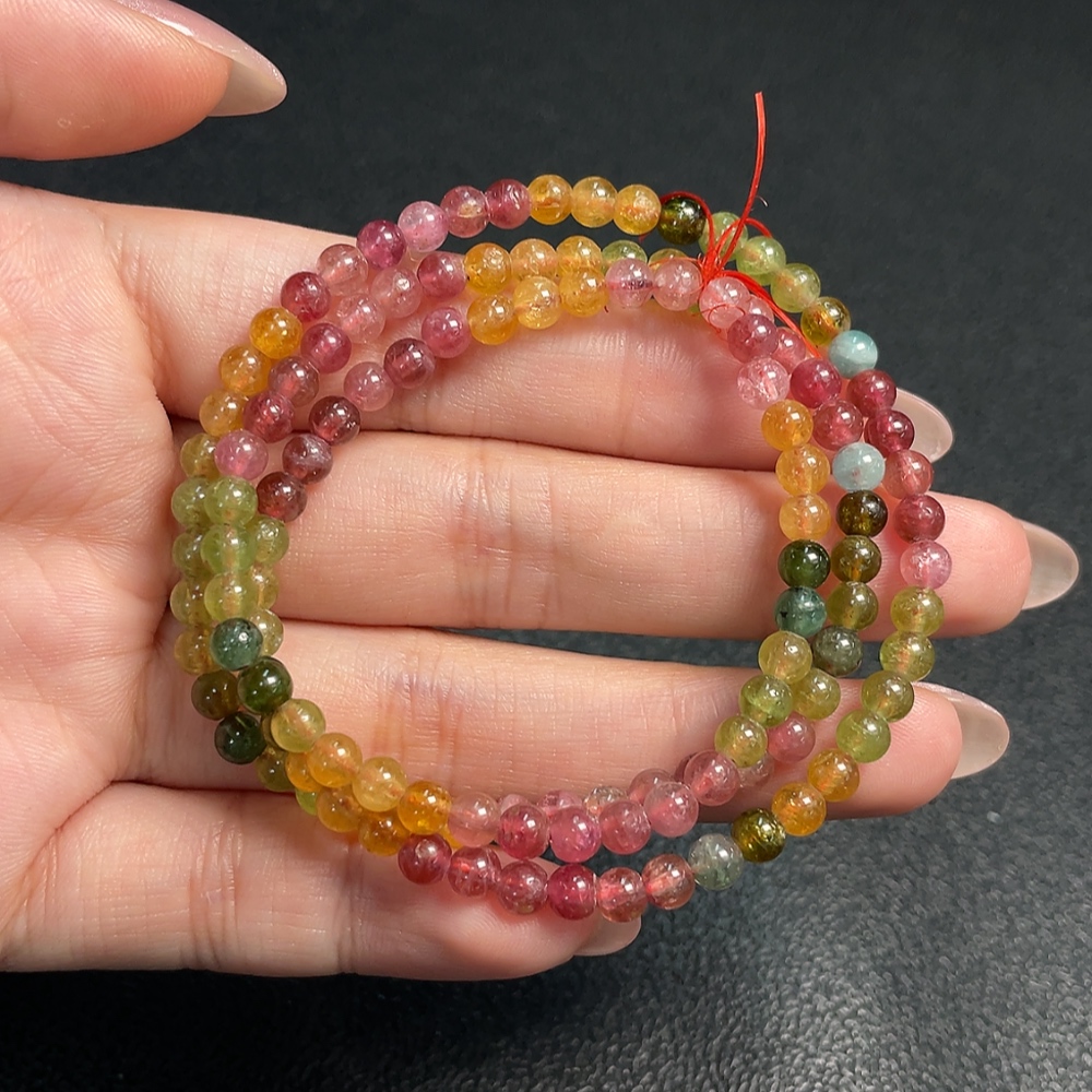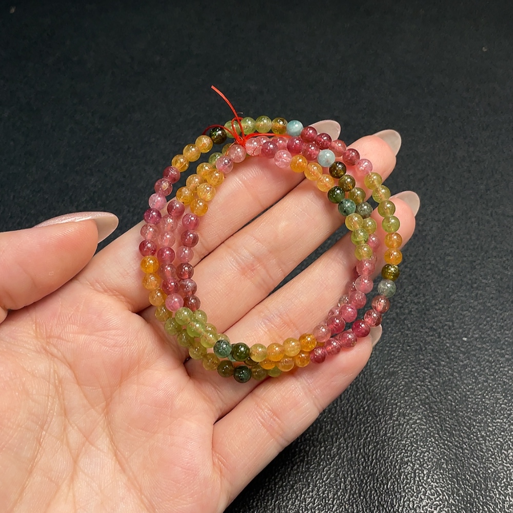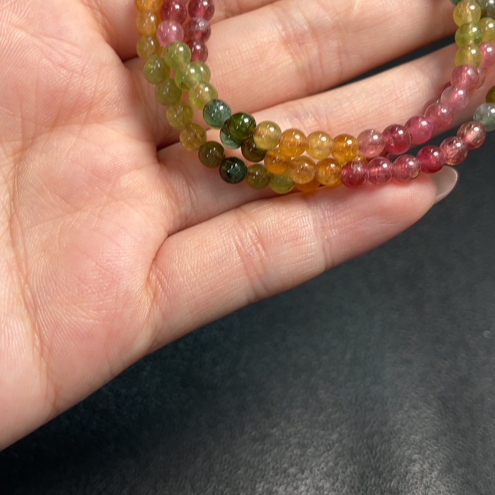 Tourmaline Bead Necklace with Other Mineral Components, Visible Organic Matter, Total Weight Approximately 14.81g, Bead Size Approximately 4.2mm