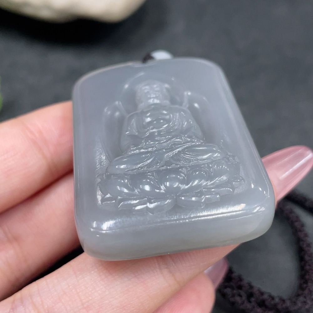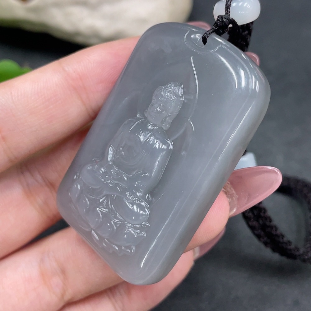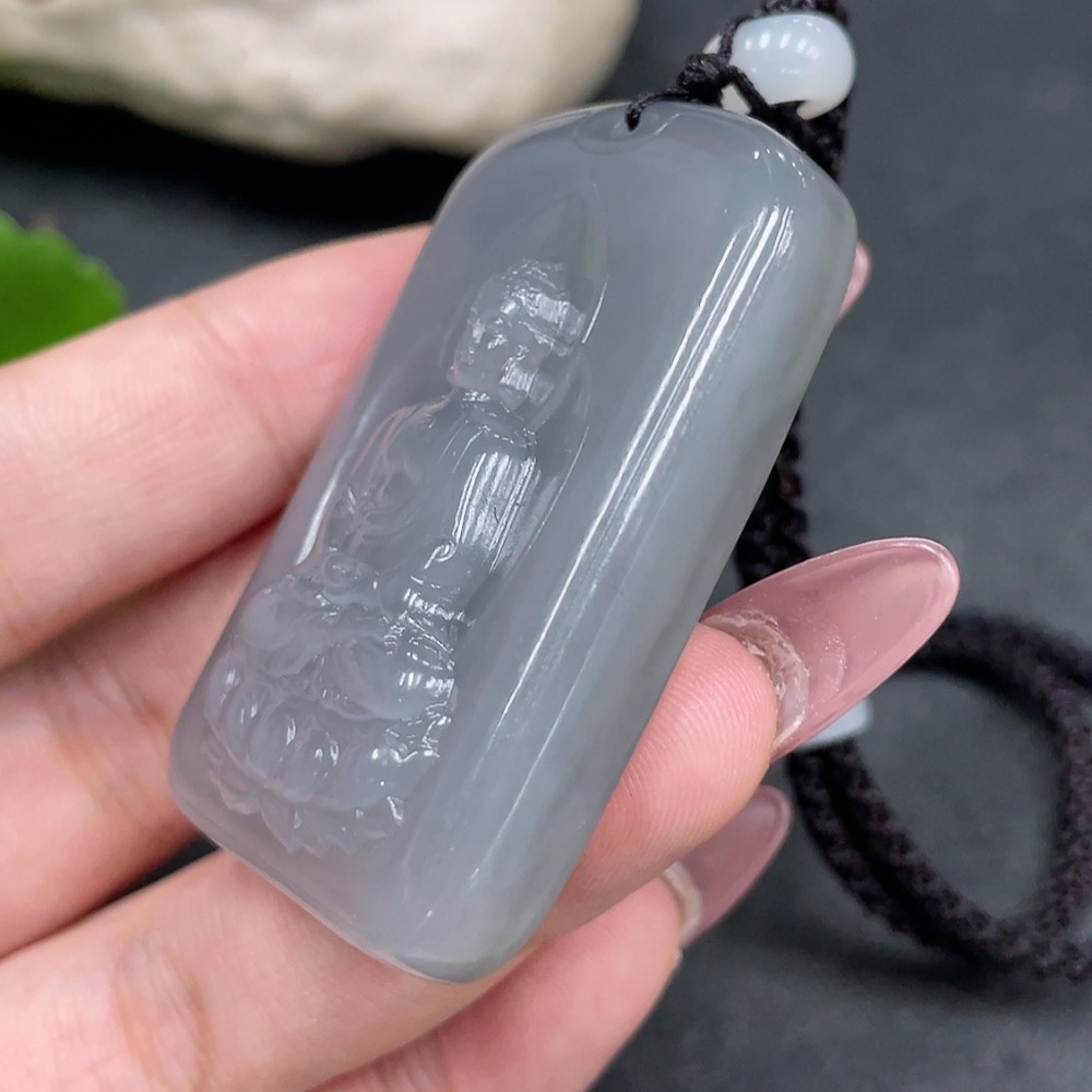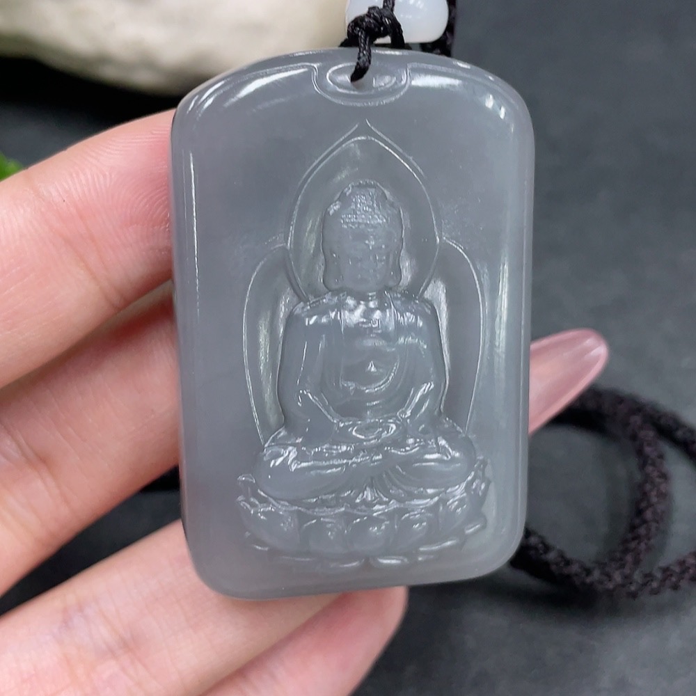 Hetian Jade Pendant - Mahavairocana with Non-Hetian Jade Beads, Total Weight Approx. 41.1g (including rope)