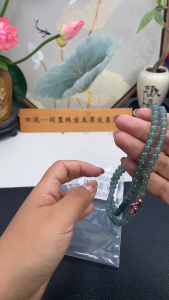 Jadeite Beaded Necklace Approx. 6mm Non-Gold Total Weight Approx. 39.9g